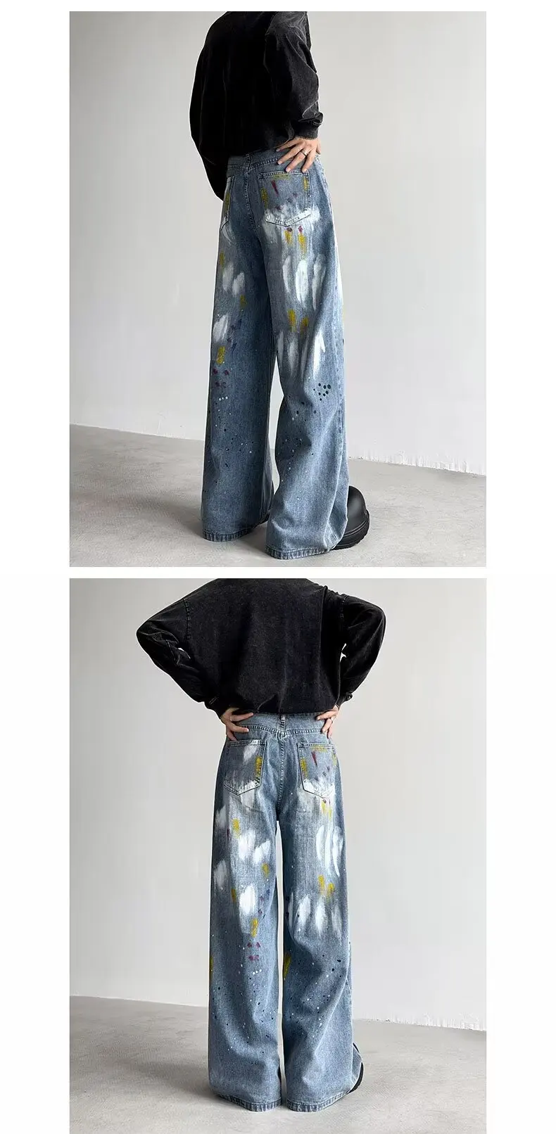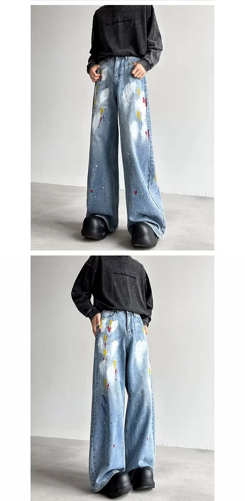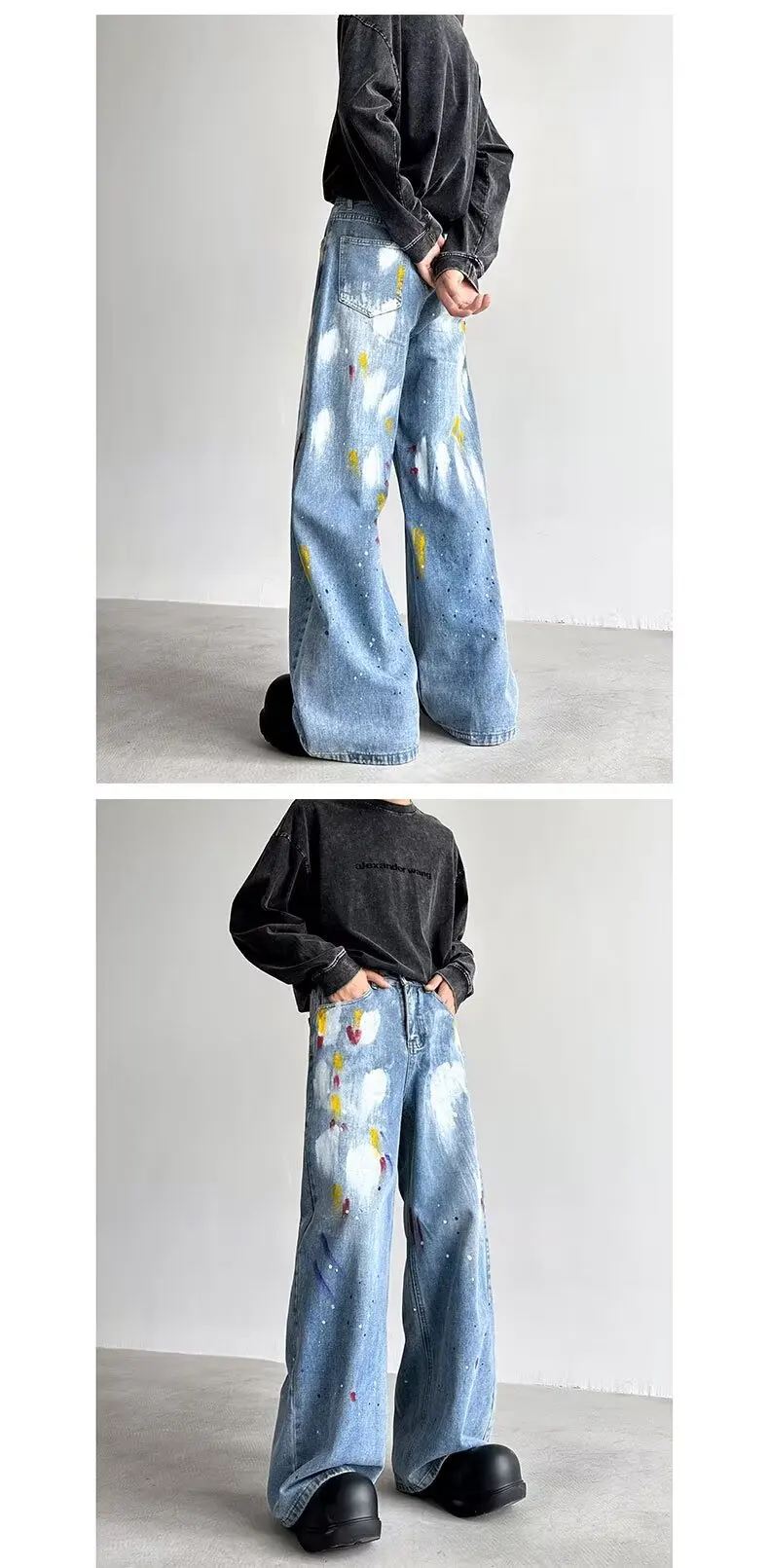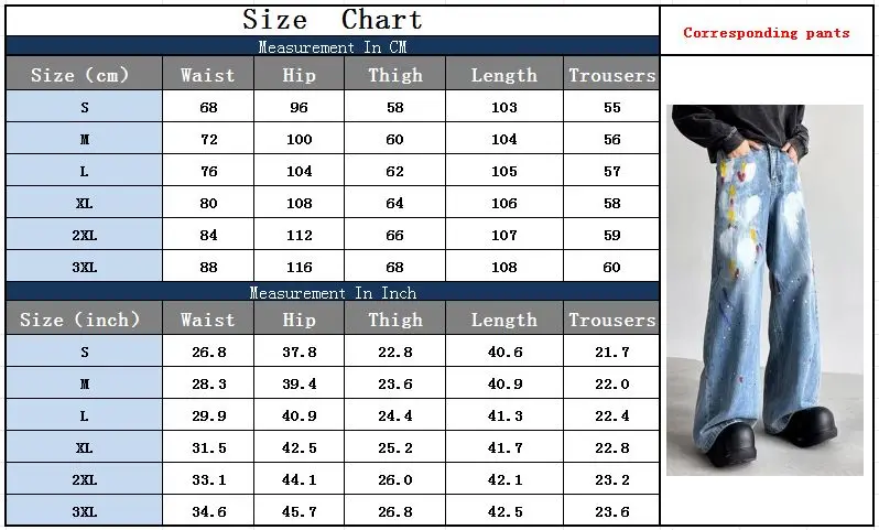2024 Cyber Y2K Fashion Painting Graffiti Vintage Blue Baggy New Jeans Pants For Men Clothes Streetwear Hip Hop Denim Trousers