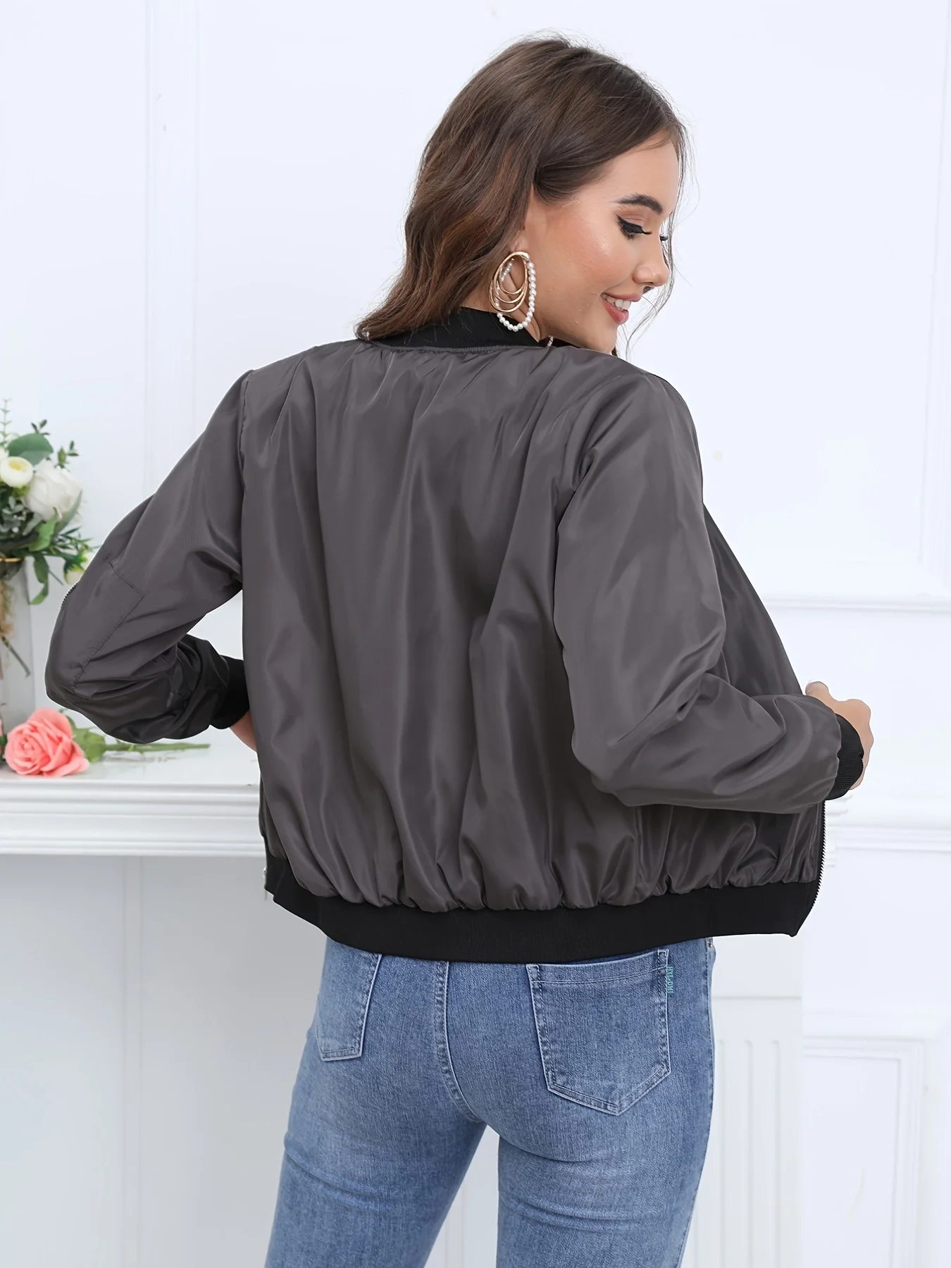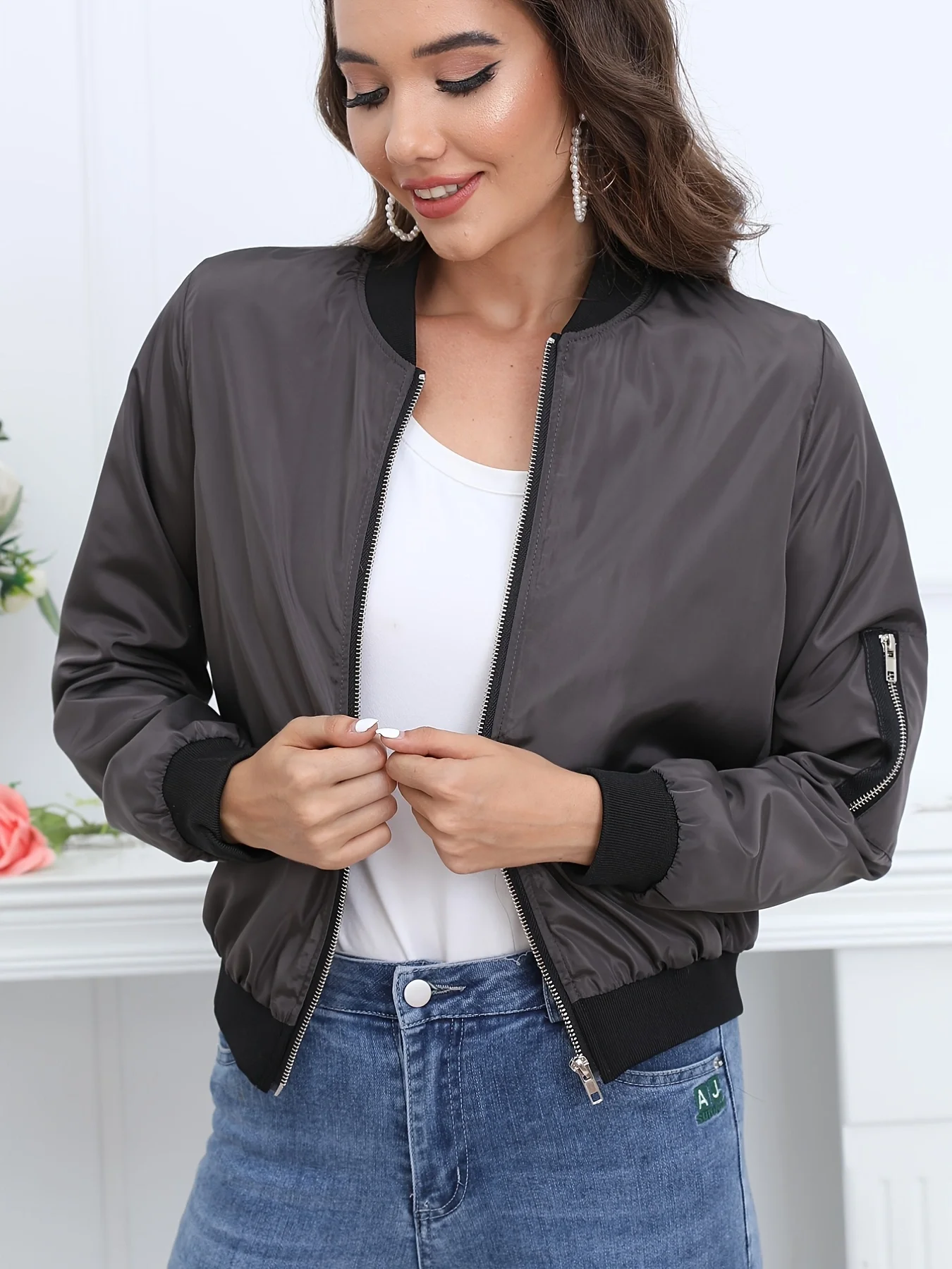 2024 European and American Autumn and Winter New Women’s Coat Short Pocket Zipper Long Sleeve Jacket Women