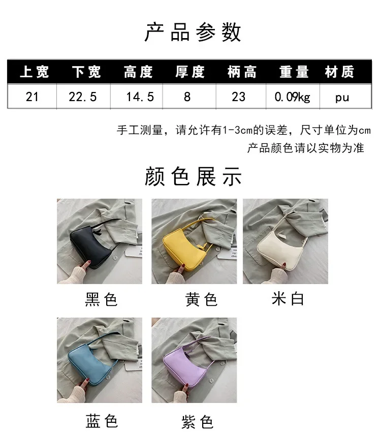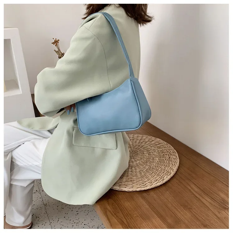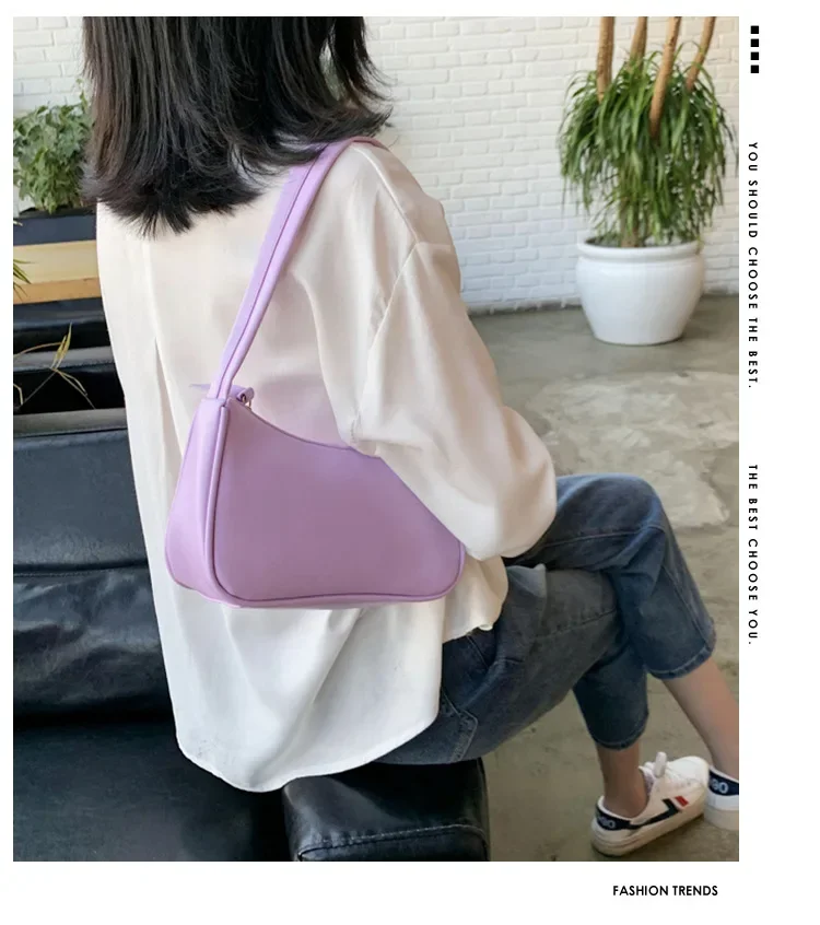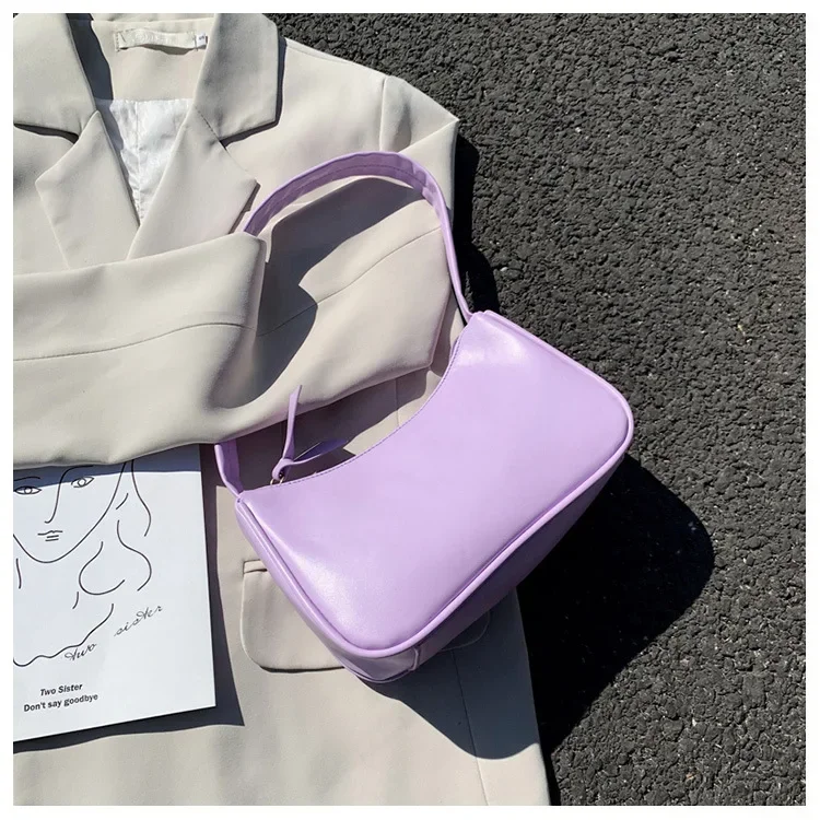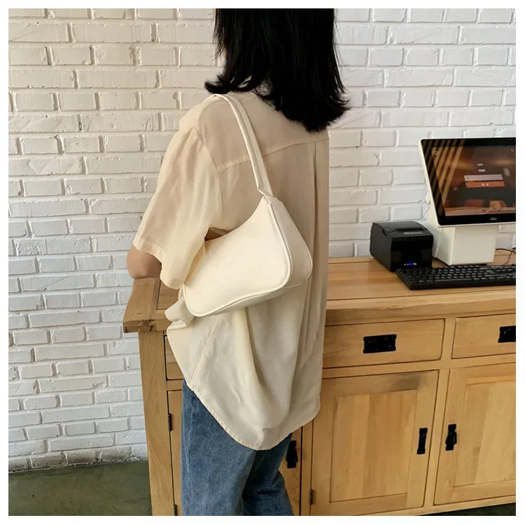 2024 Fashion Women New Shoulder Underarm Bags Casual Ladies Pure Color Small Purses Handbags Elegant PU Leather Bags