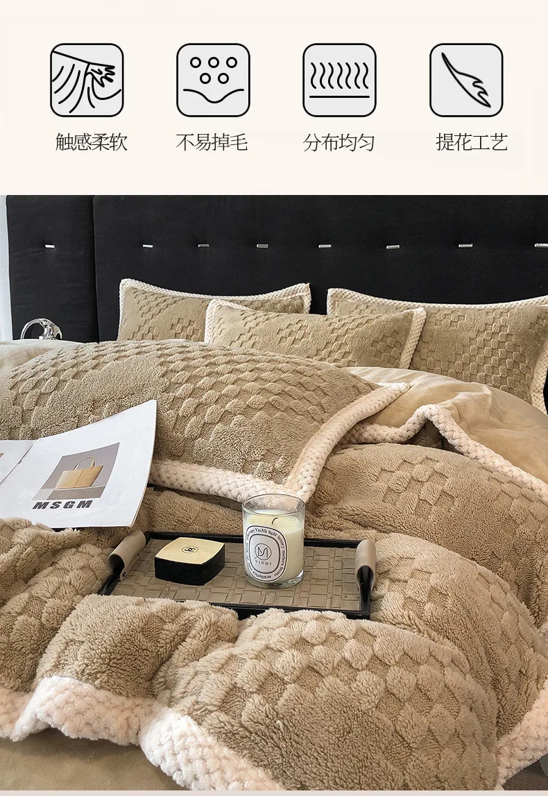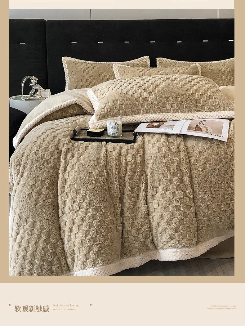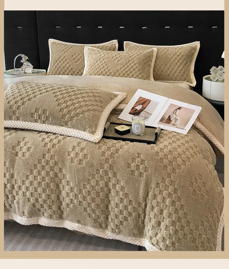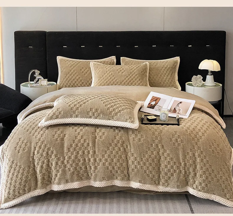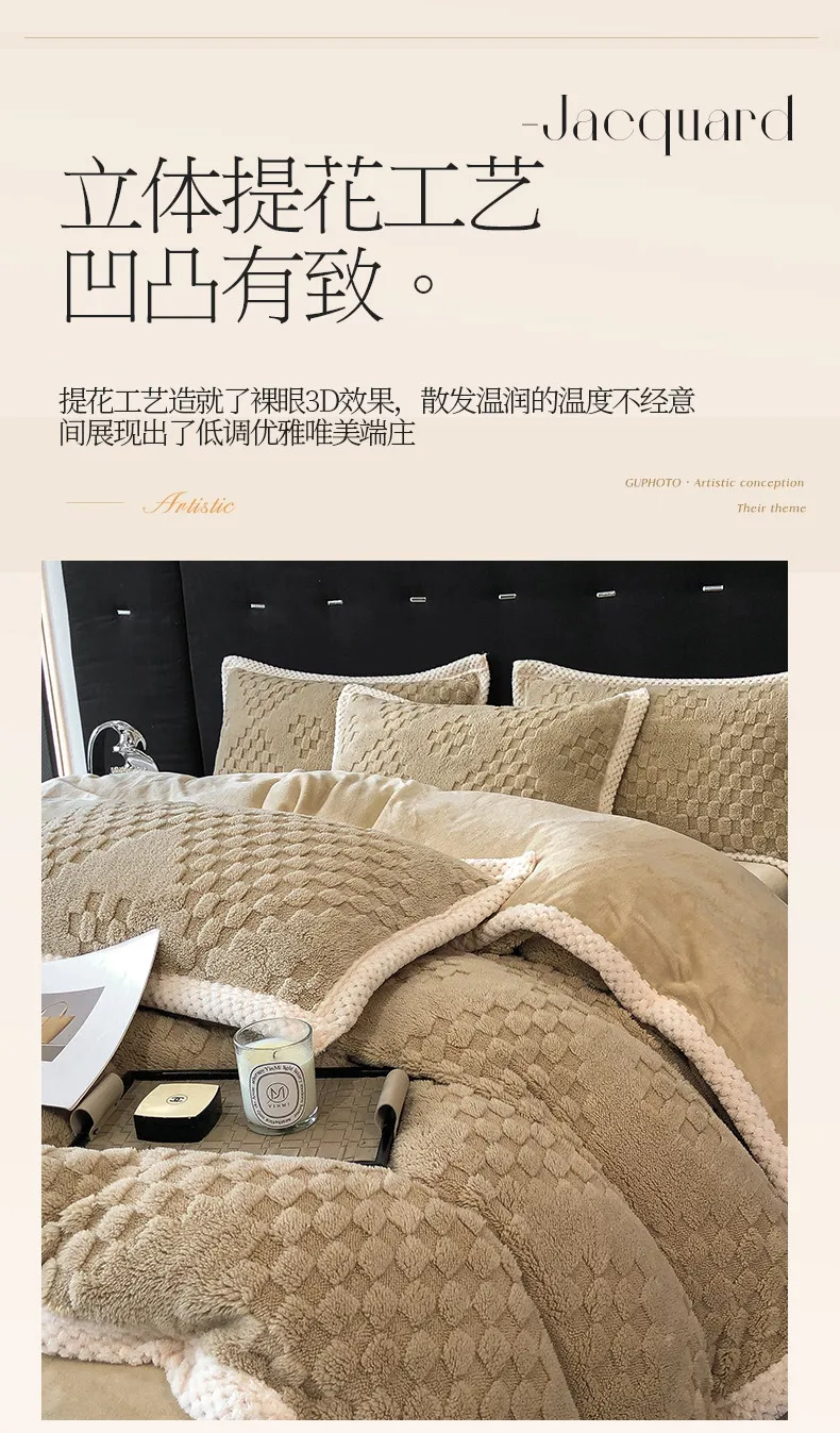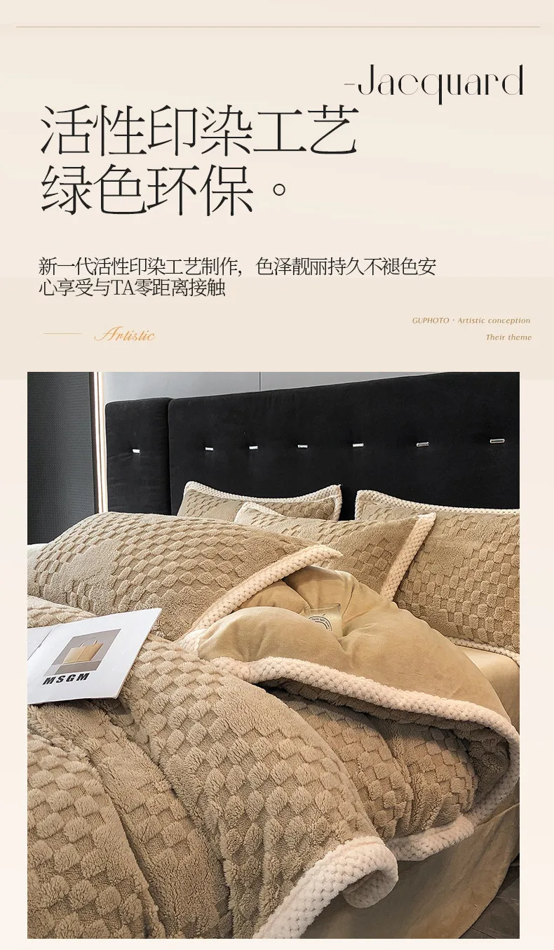 2024 high gram weight new jacquard tafu fleece quilt cover blanket big bag, wide edge four-piece set