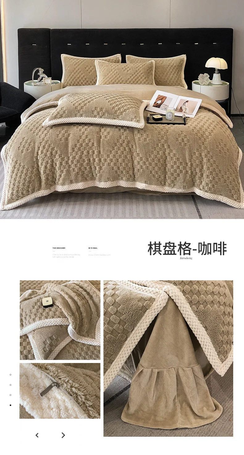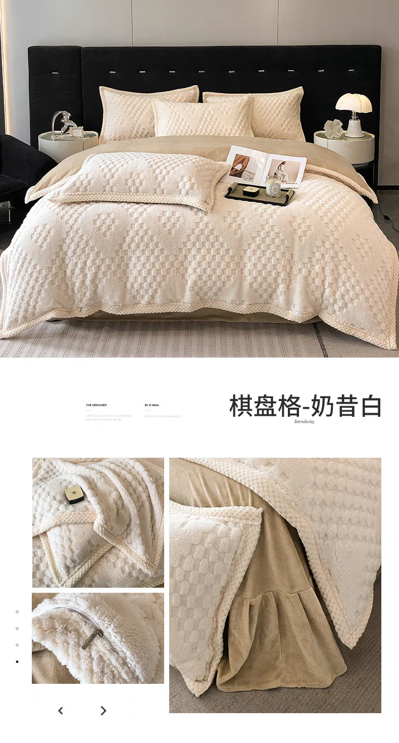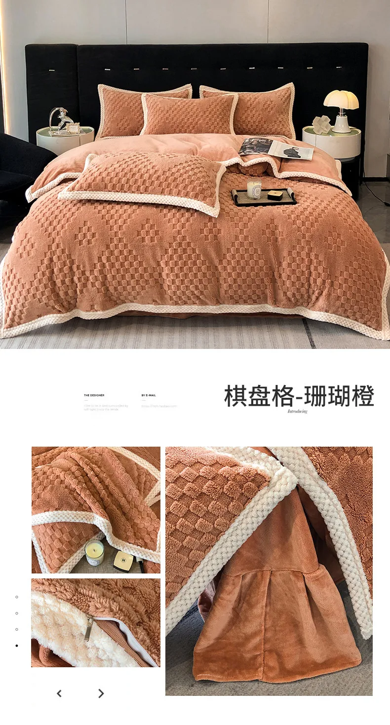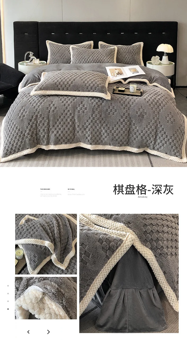 2024 high gram weight new jacquard tafu fleece quilt cover blanket big bag, wide edge four-piece set