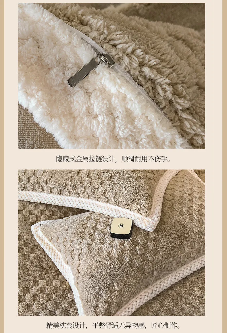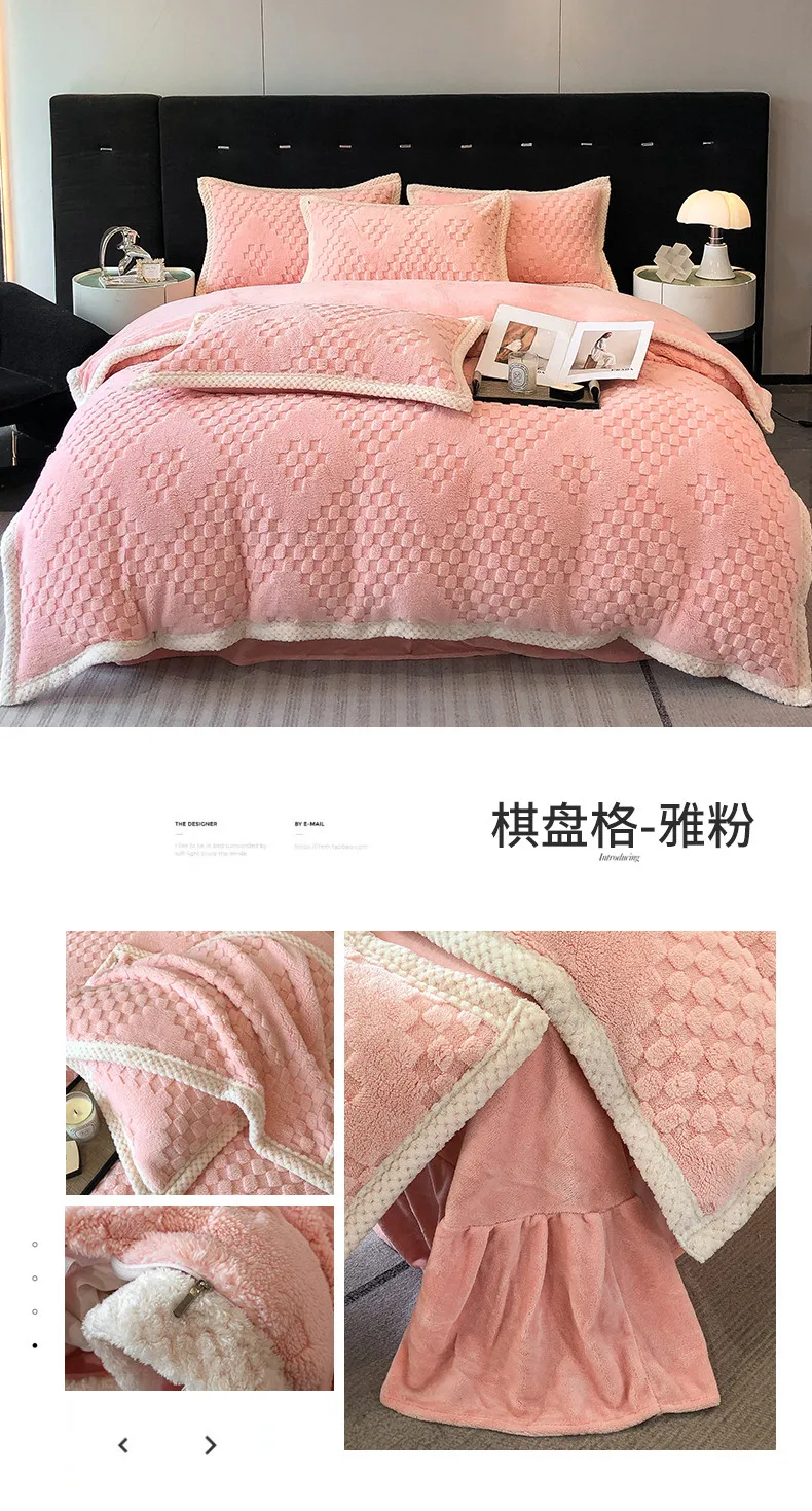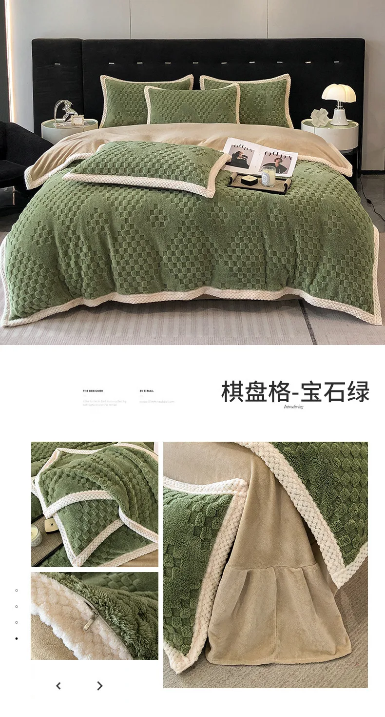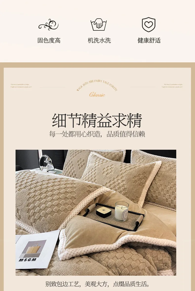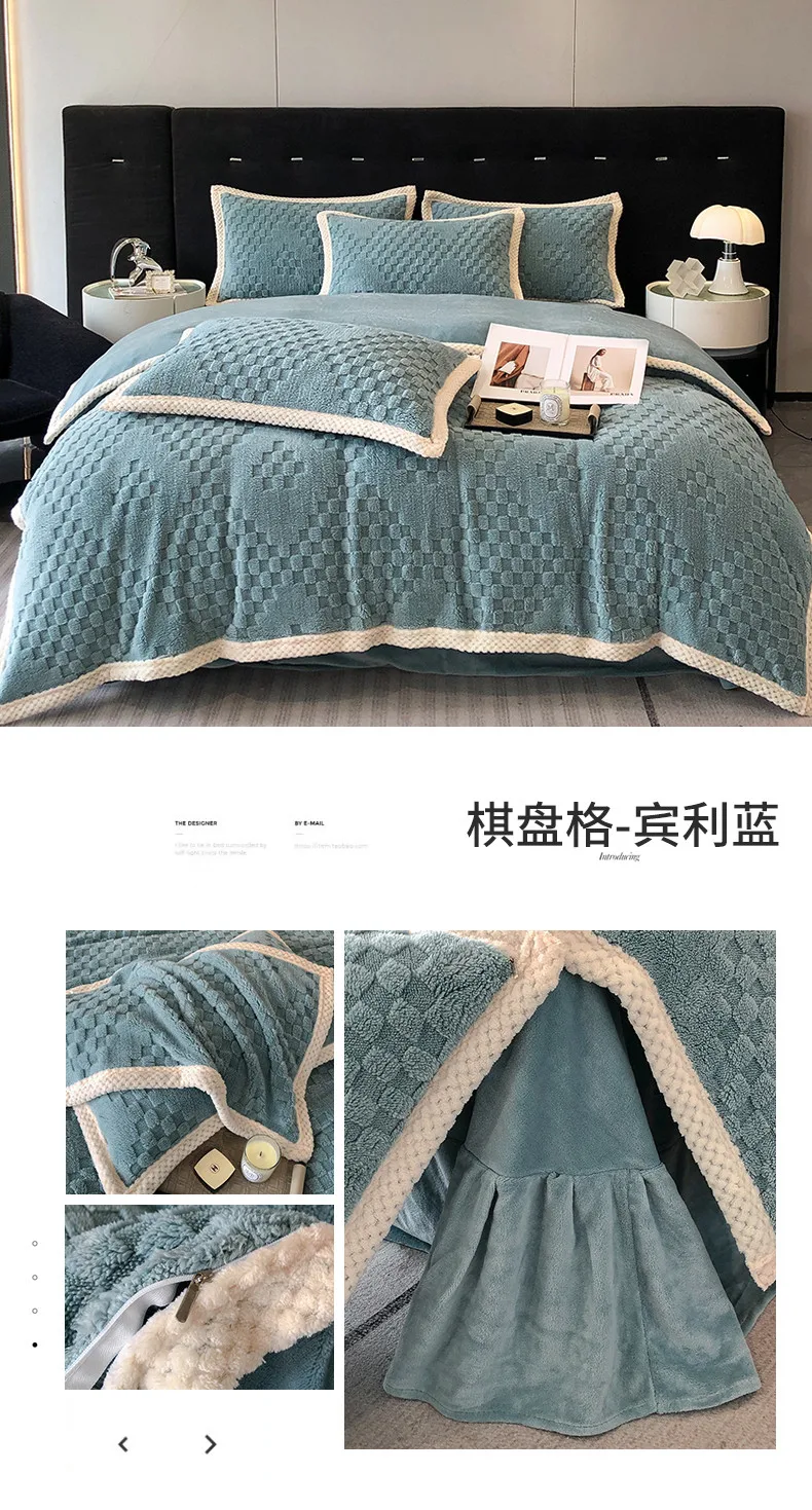 2024 high gram weight new jacquard tafu fleece quilt cover blanket big bag, wide edge four-piece set