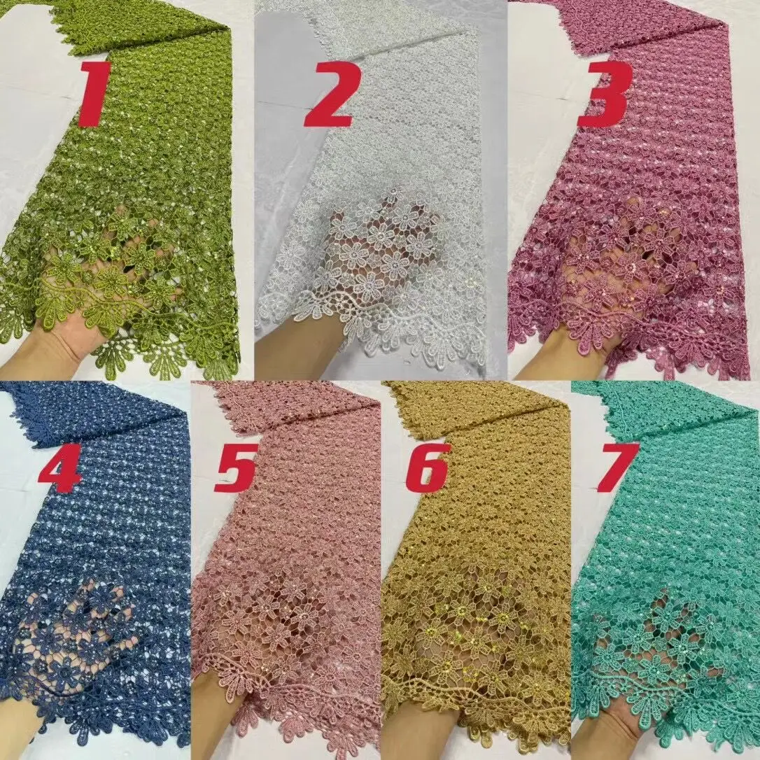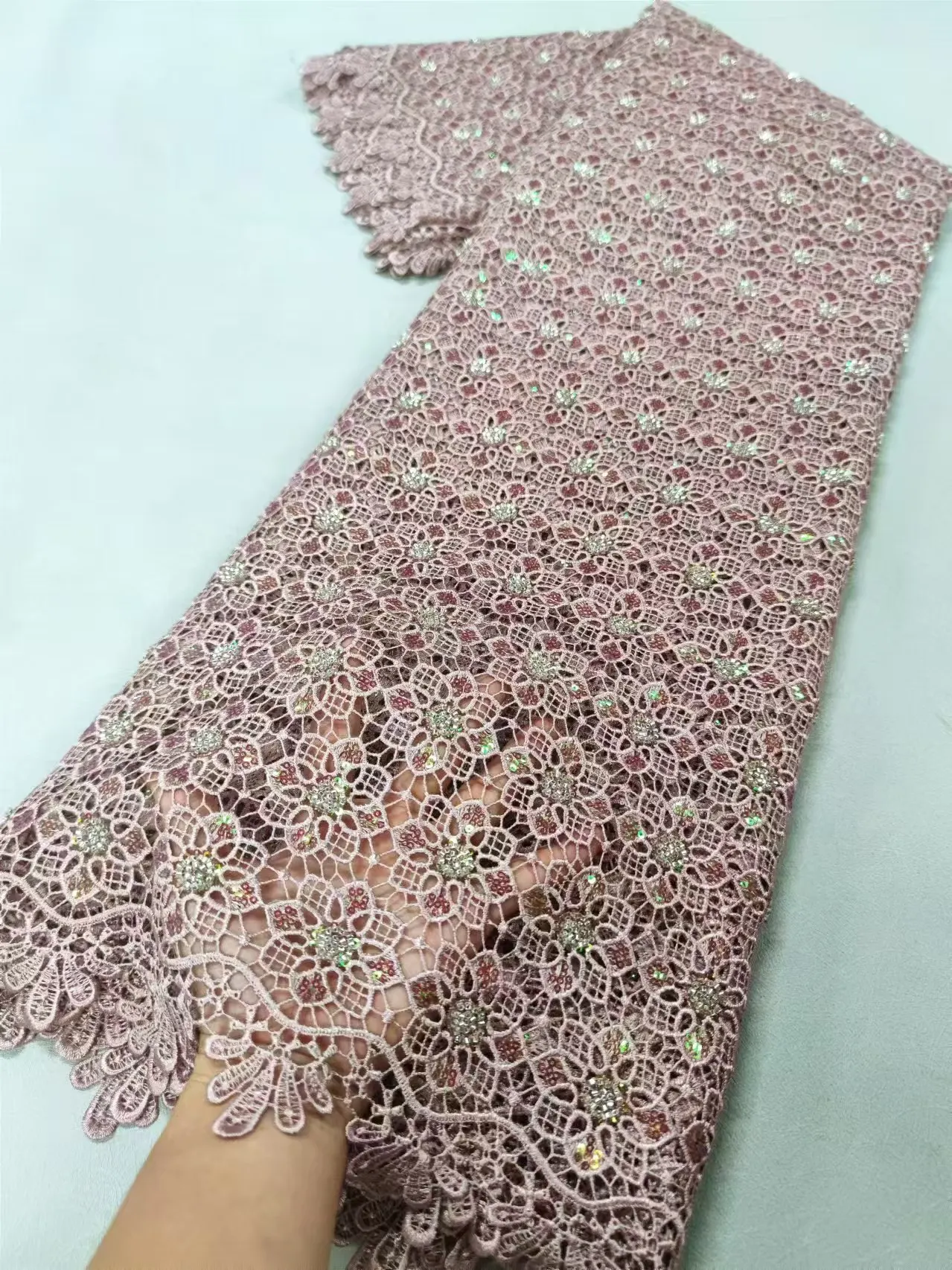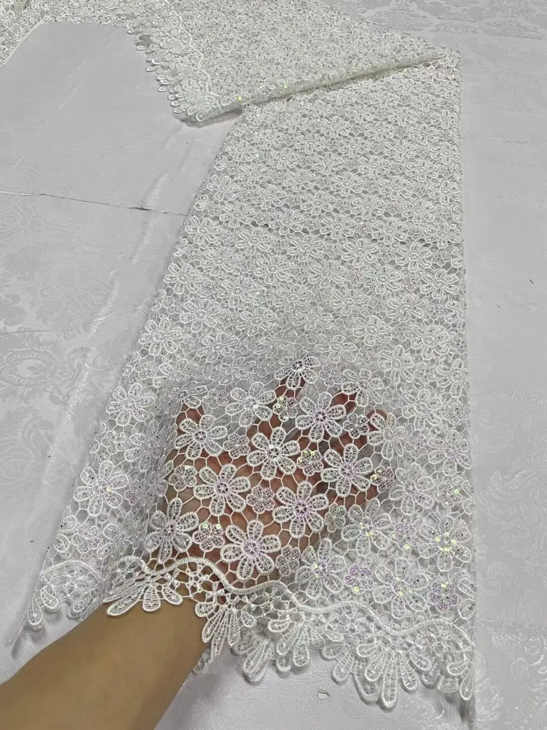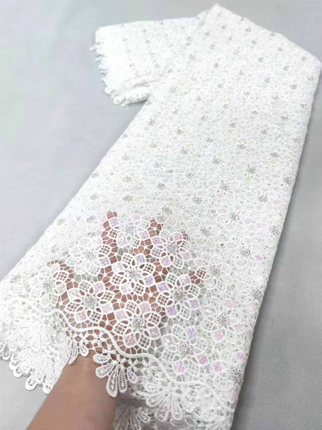 2024 High Quality 5 Yard Water Soluble African Lace Fabric Crystals Cord Guipure Lace Fabric Bridal Dresses For Wedding JL346