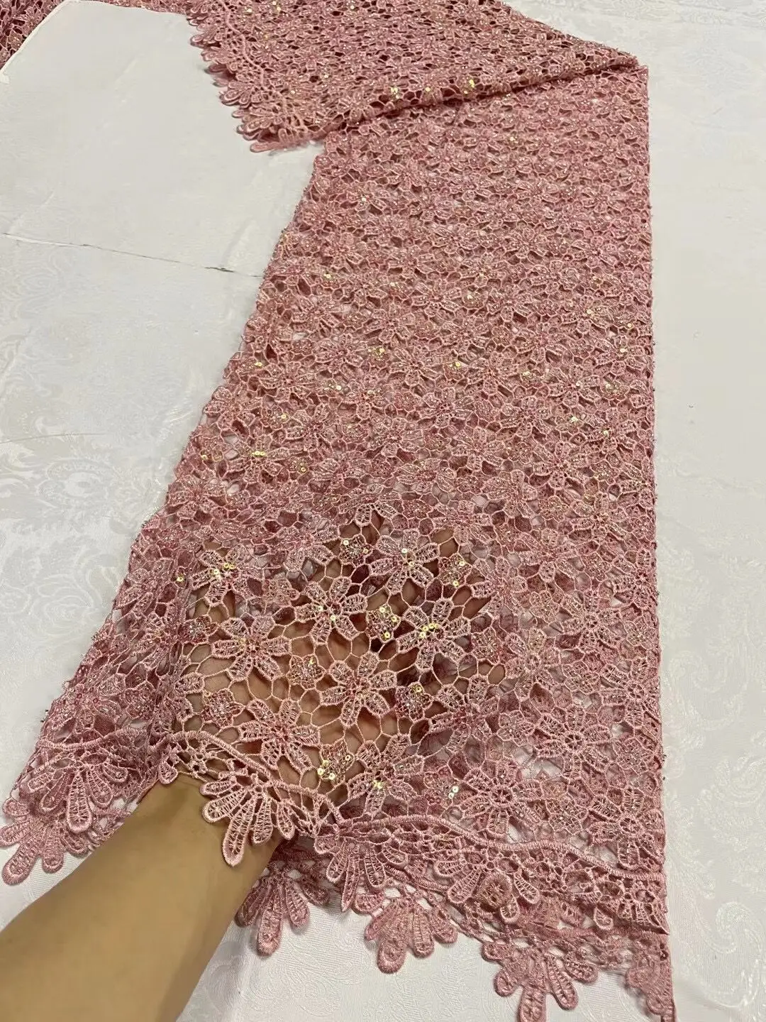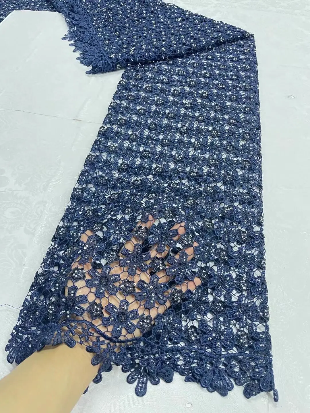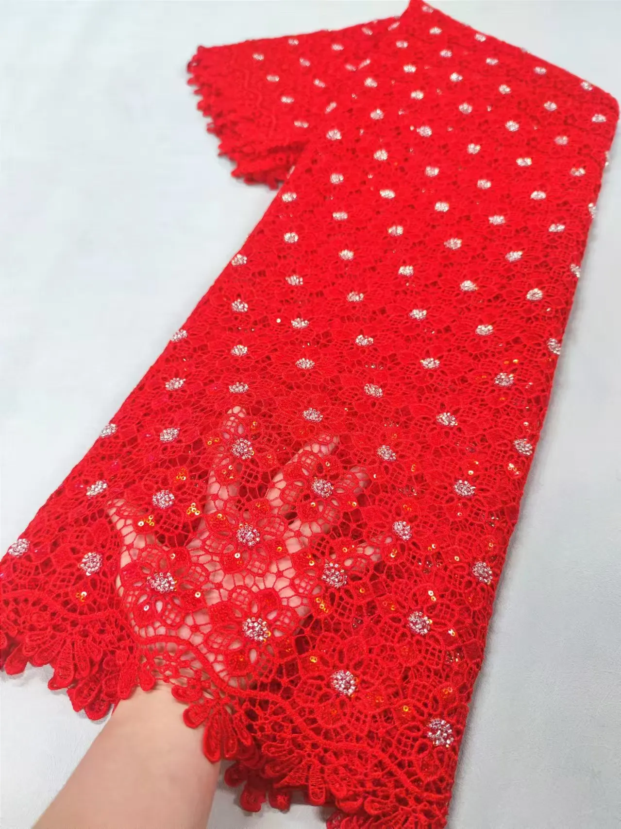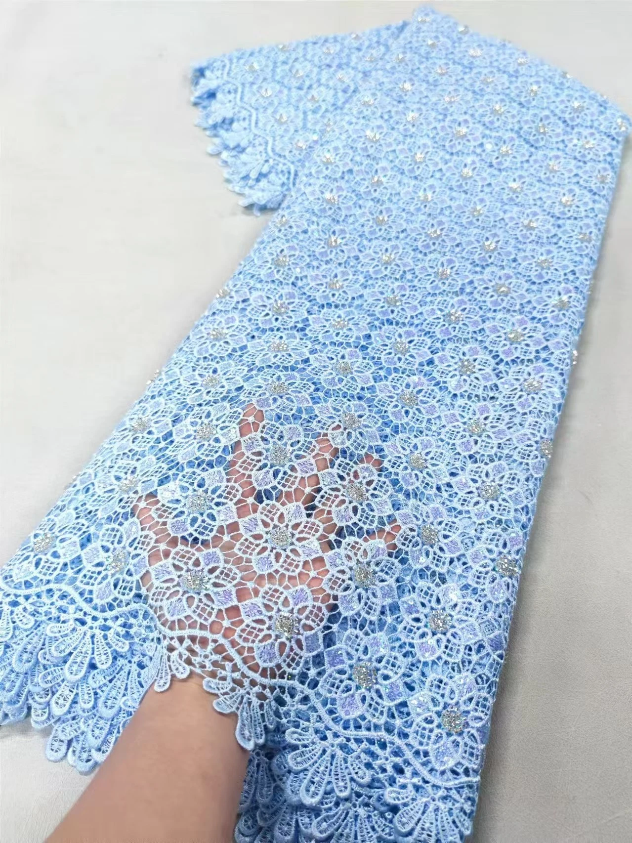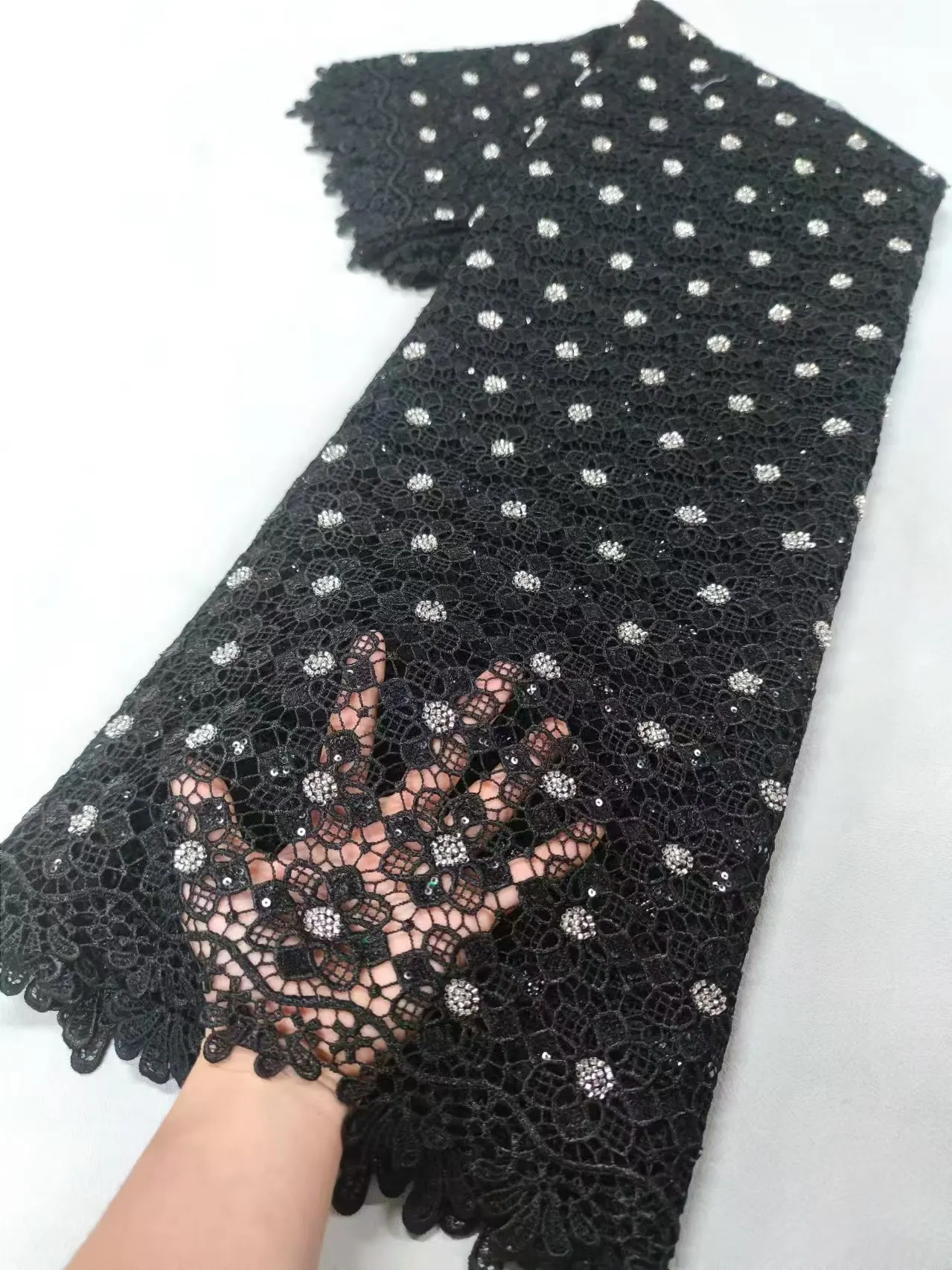 2024 High Quality 5 Yard Water Soluble African Lace Fabric Crystals Cord Guipure Lace Fabric Bridal Dresses For Wedding JL346