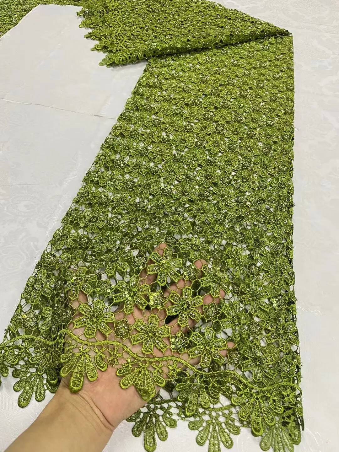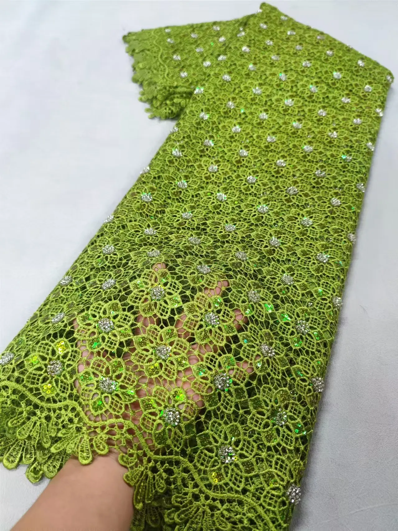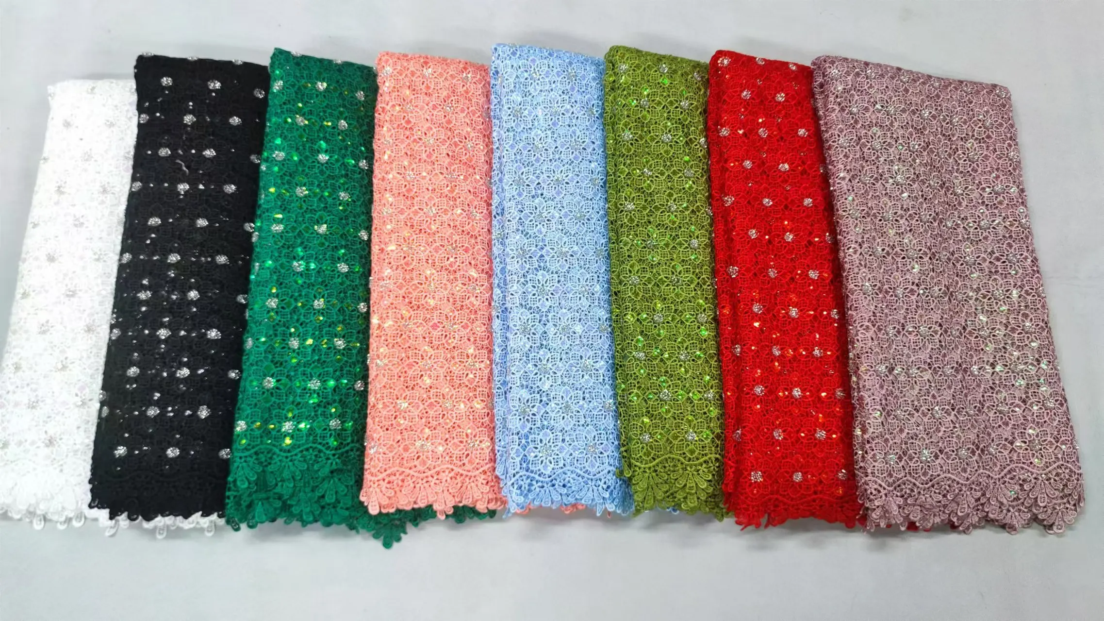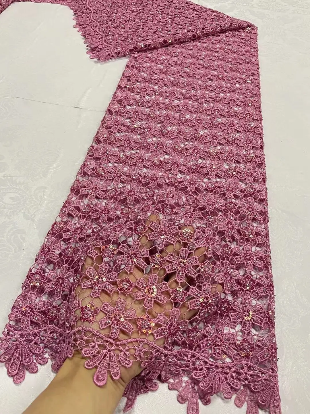 2024 High Quality 5 Yard Water Soluble African Lace Fabric Crystals Cord Guipure Lace Fabric Bridal Dresses For Wedding JL346