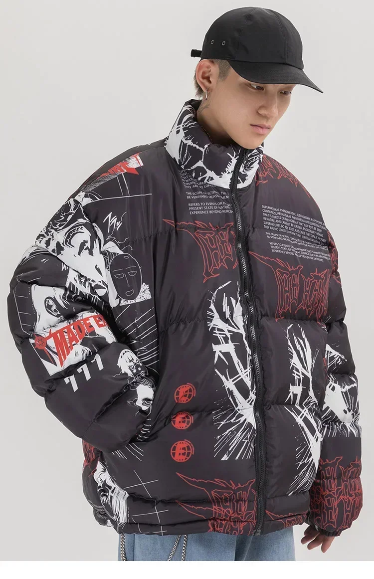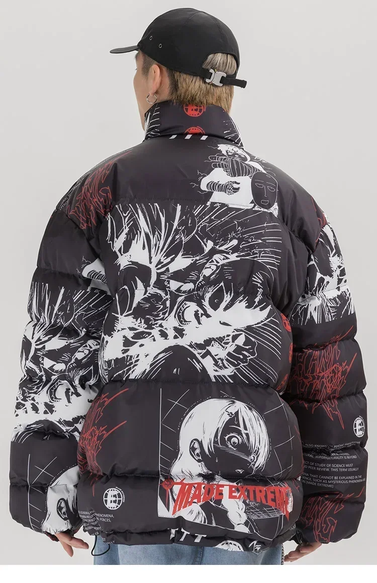 2024 Hip Hop Jacket Parka Japanese Streetwear Men Windbreaker Harajuku Winter Padded Jacket Y2K Women Quilted Coat Warm Outwear