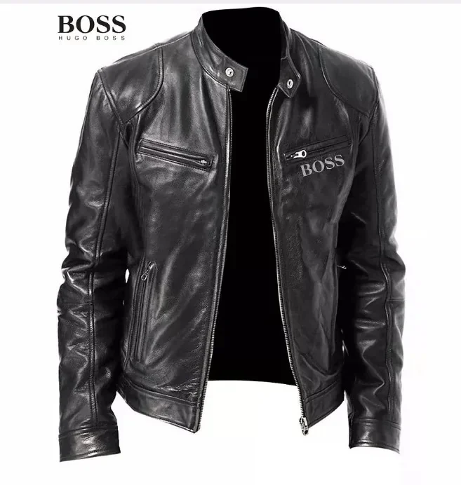 2024 Leather Motorcycle Jacket Men Stand Collar Casual Slim Short-Coat PU Jacket Autumn Winter Windproof Leather Coat Blazer Men
