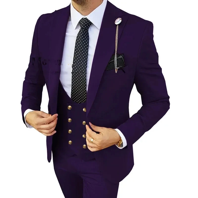 2024 Men Suits Stripe Blazer Wedding Male Groom Tuxedos Suit with Pants 3 Pieces (Jacket+Pants+Vest) Costume Homme