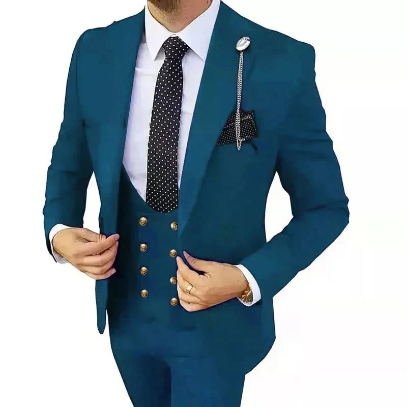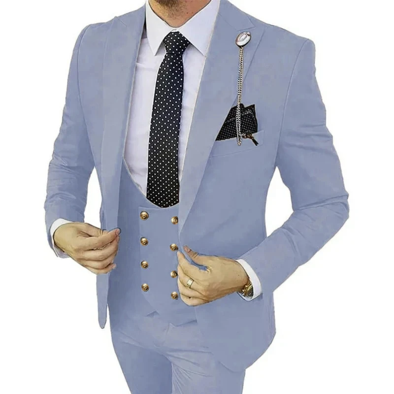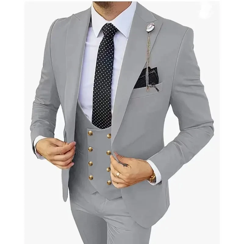 2024 Men Boutique Suit Double Slit Stretch Fabric 3 Pcs Set / Slim Fit Wedding Dress Blazers Jacket Coat Trousers Pants Vest