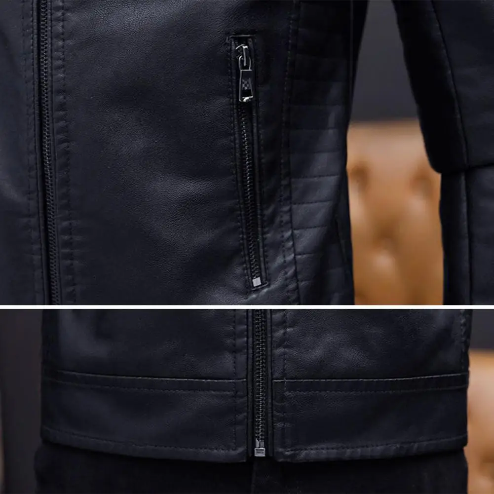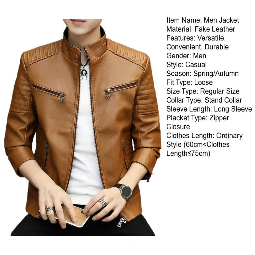 Men Jacket Stand Collar Vintage Biker Coat Men Durable Spring Autumn Warm Coat for Outdoor Daily Wear