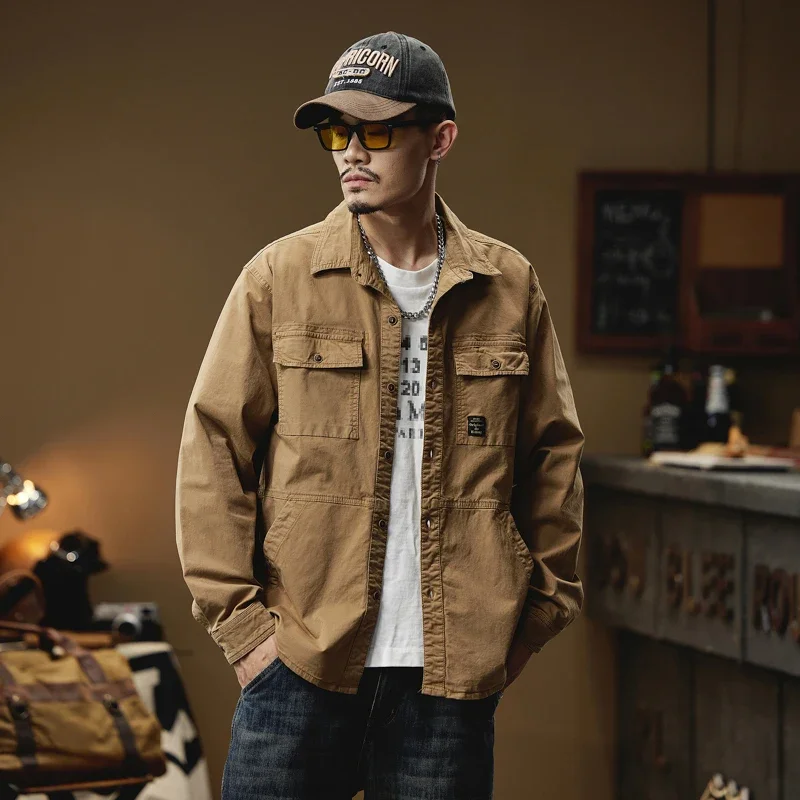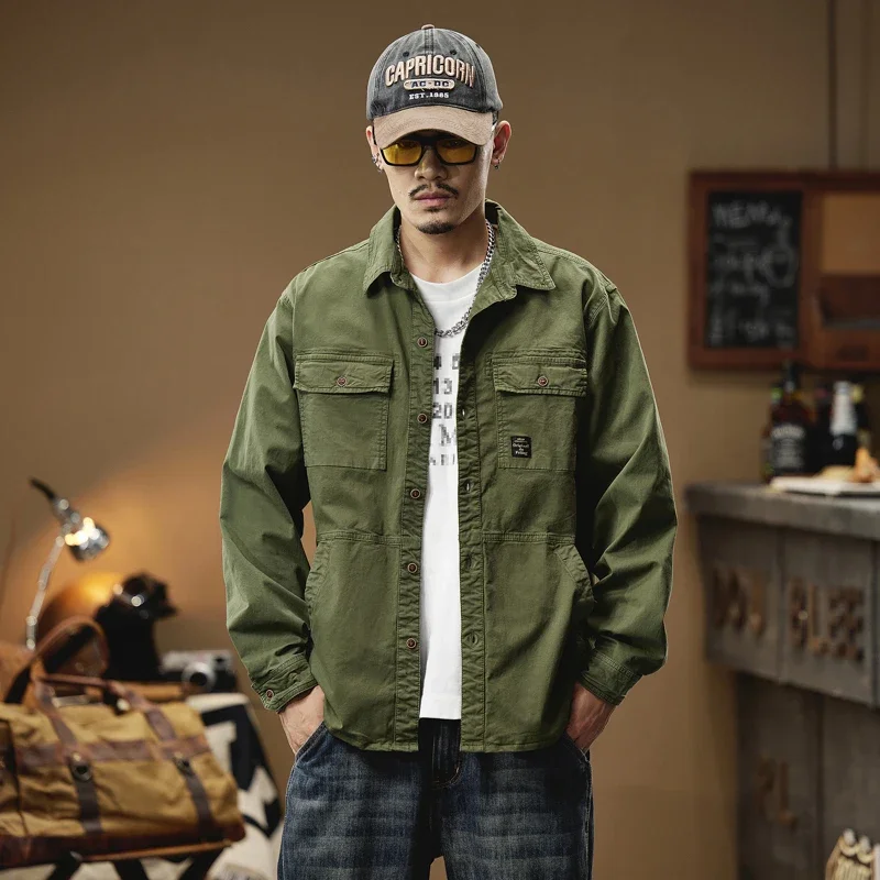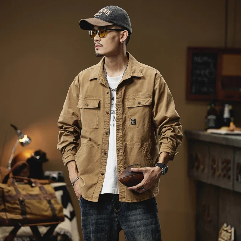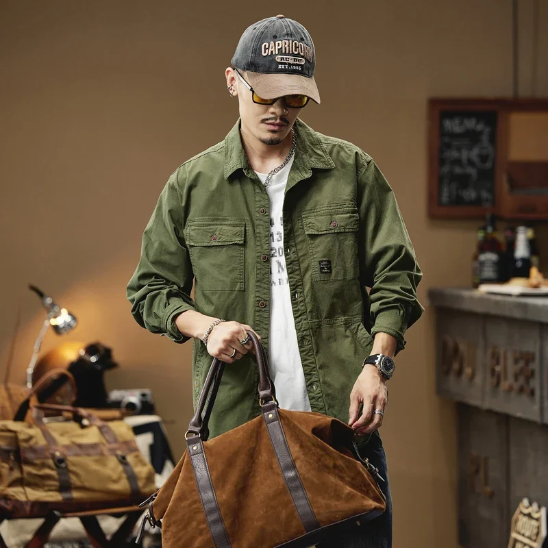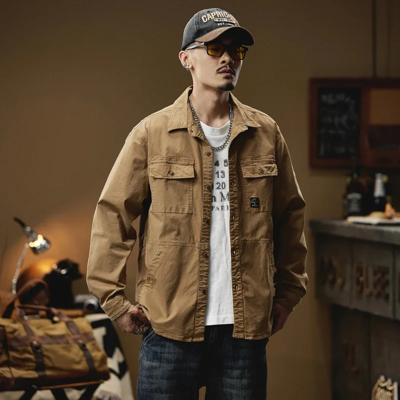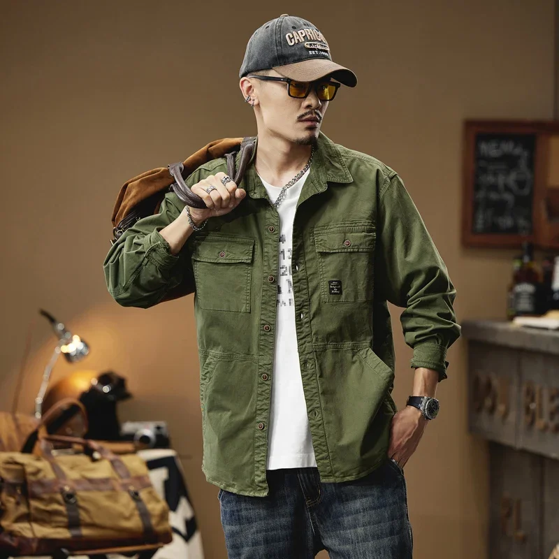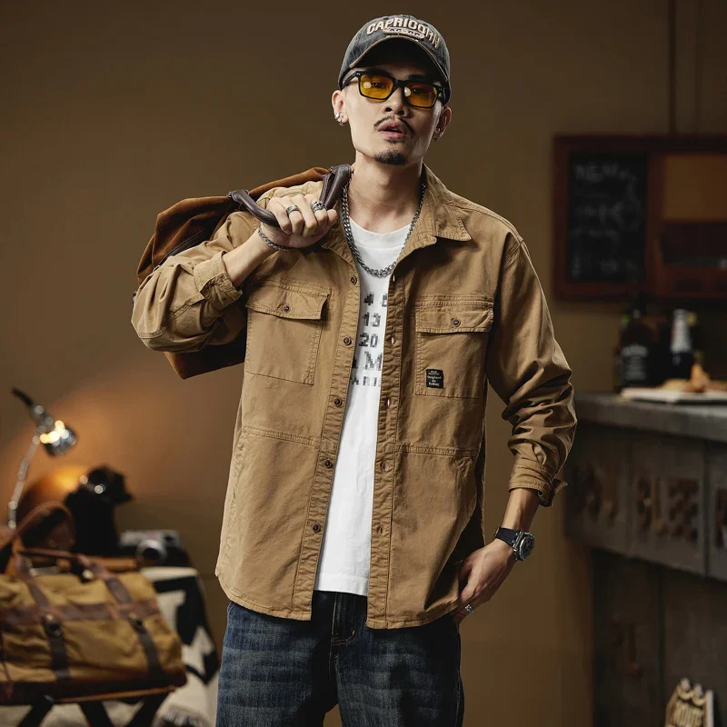 2024 Men’s Autumn Outdoor Cotton Shirts Top Coat ersatile Multi-Pocket ZipperJacket For Men Long Sleeve Casual Overshirt Blouses