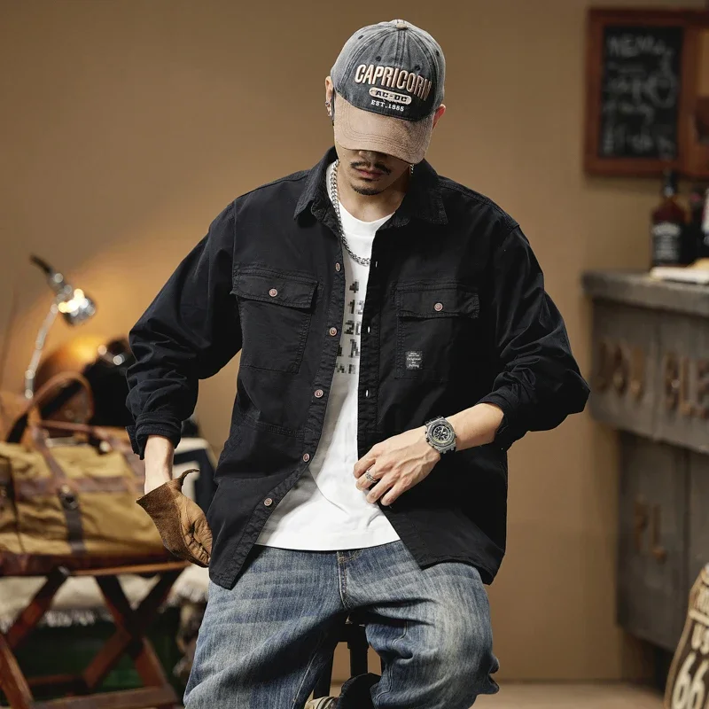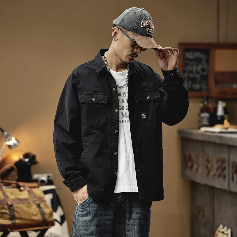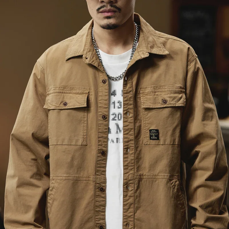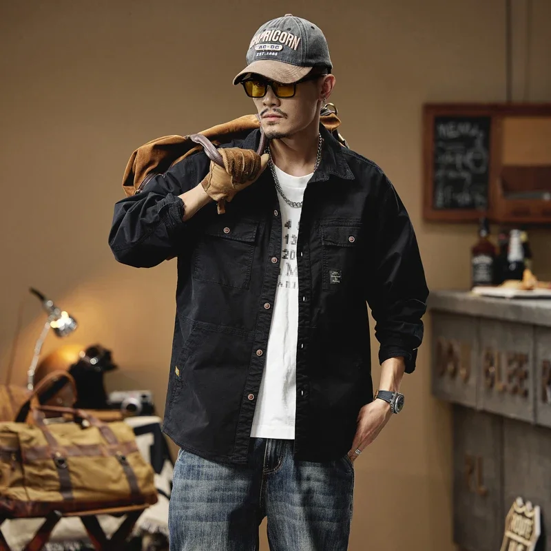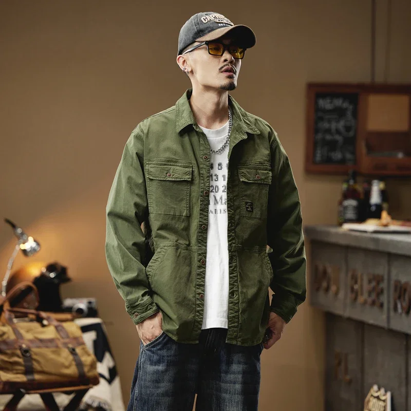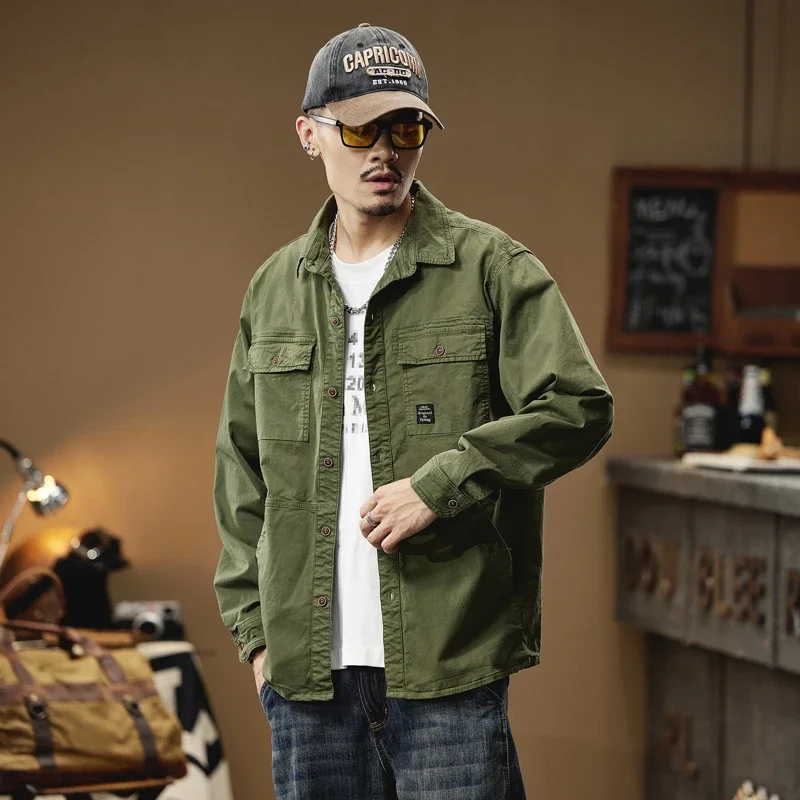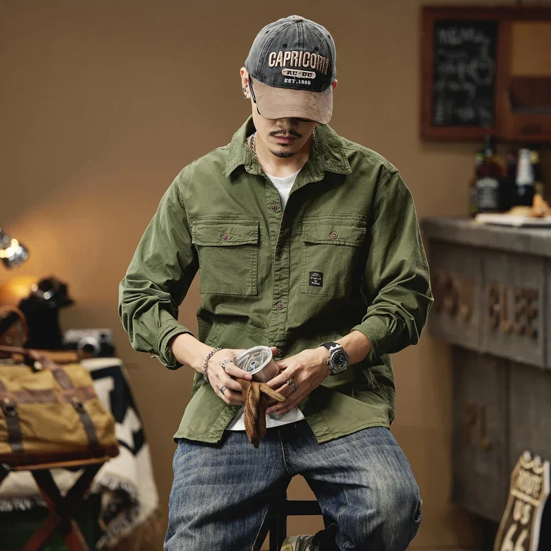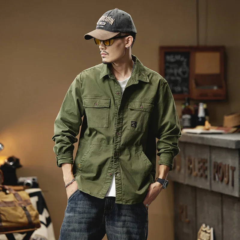 2024 Men’s Autumn Outdoor Cotton Shirts Top Coat ersatile Multi-Pocket ZipperJacket For Men Long Sleeve Casual Overshirt Blouses
