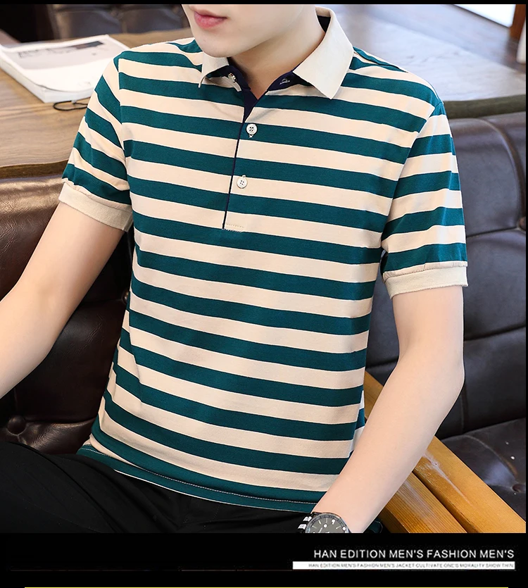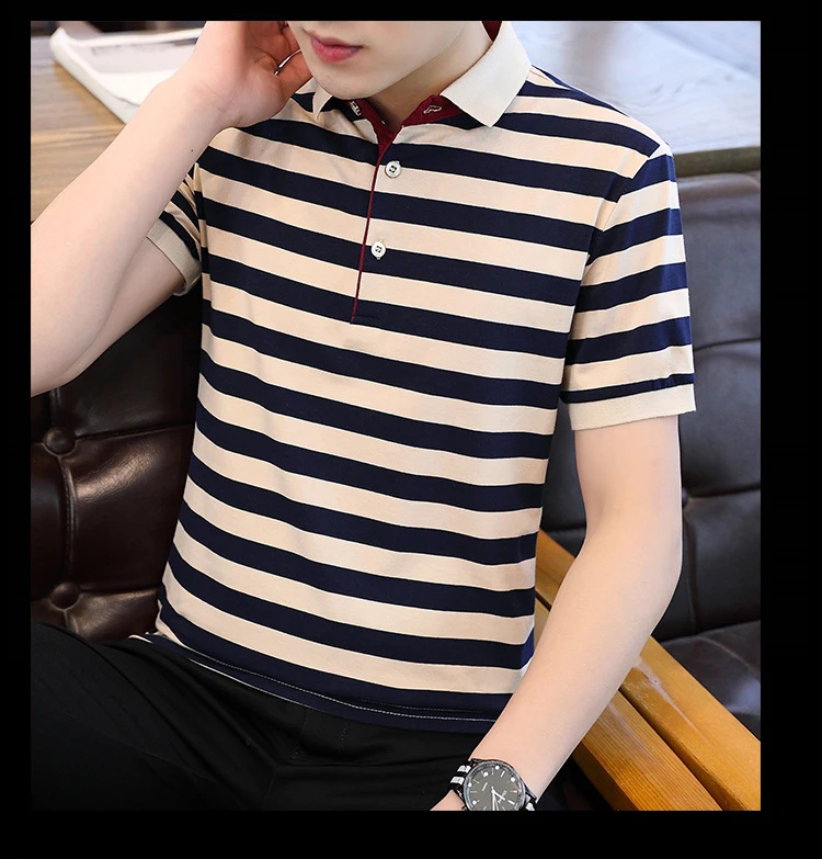 2024 minimalist casual summer new striped lapel men’s fashion versatile cotton button loose short sleeved POLO shirt T-shirt top