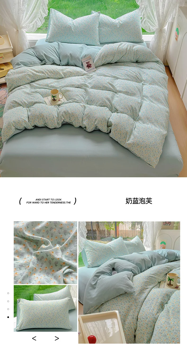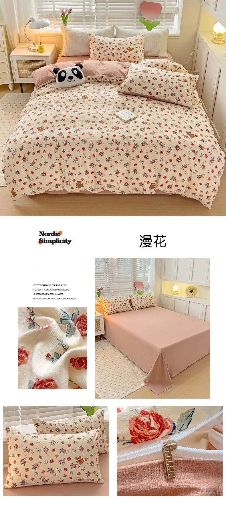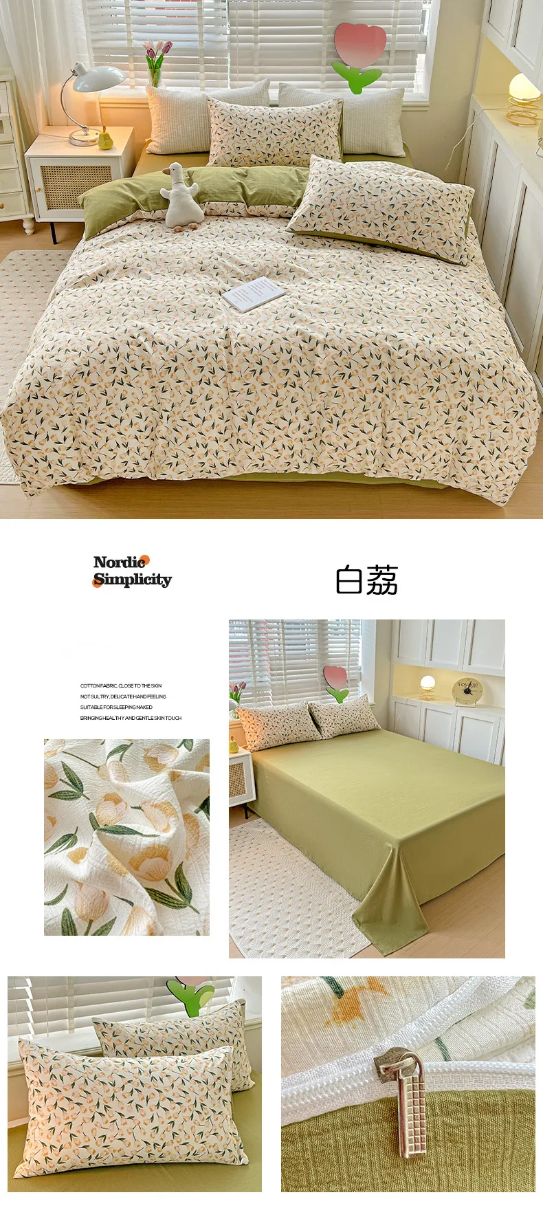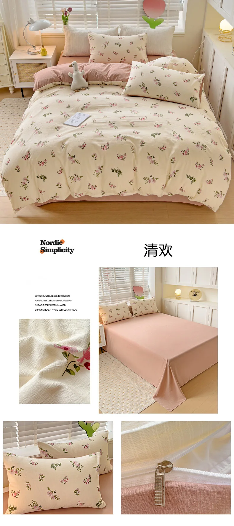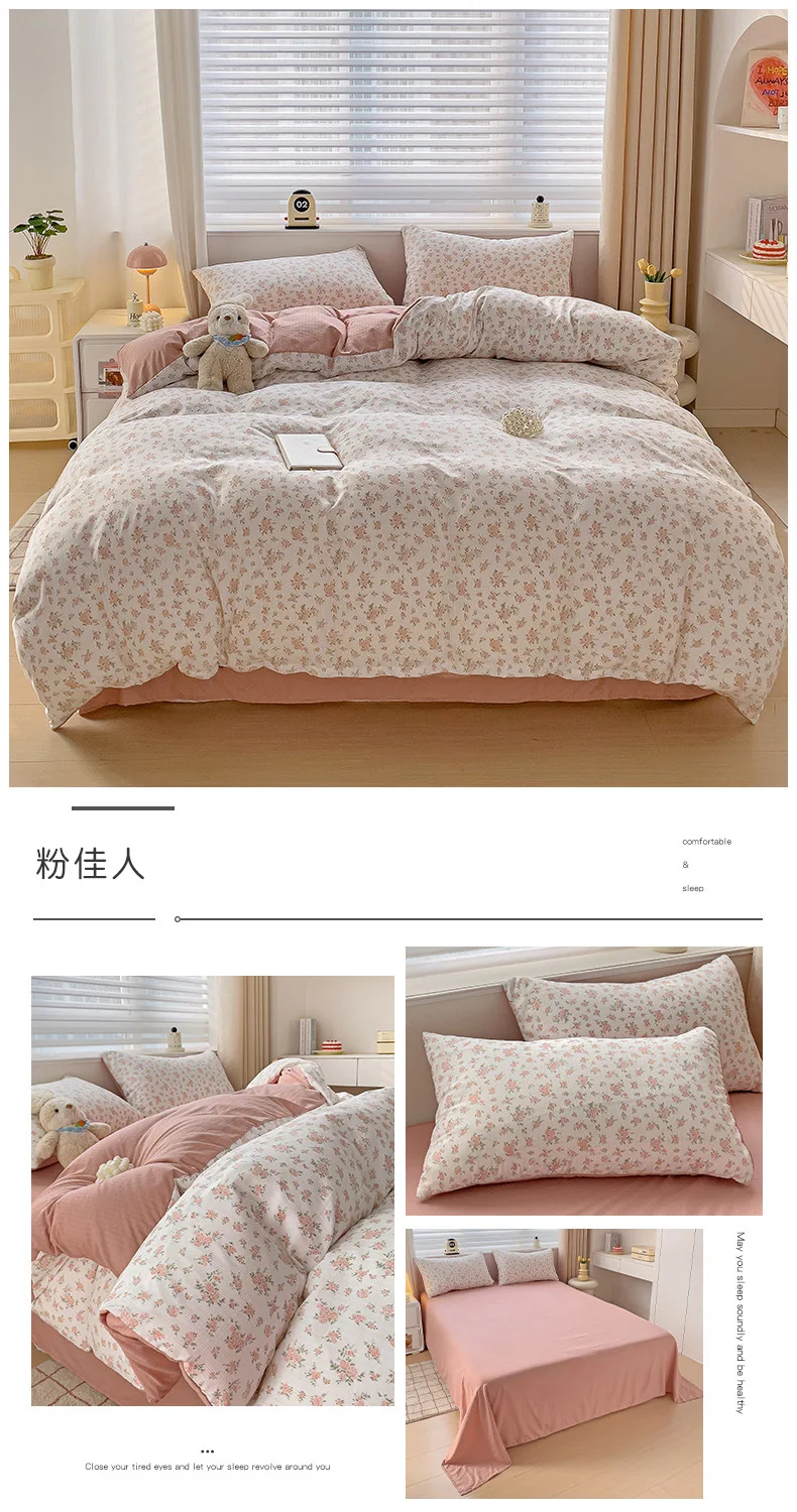 2024 New A-class Mother and Baby Grade Washed Cotton Bed Four Piece Set Small Fresh Bed Sheets, Duvet Covers, Bed Sheets