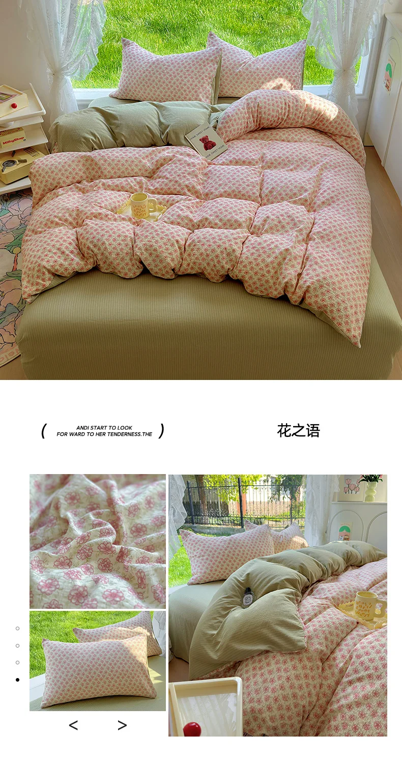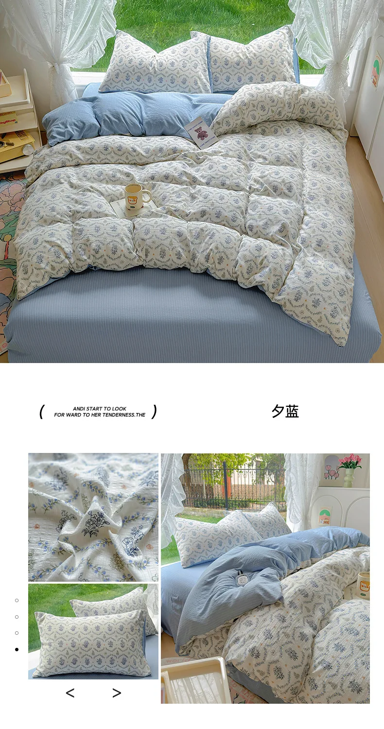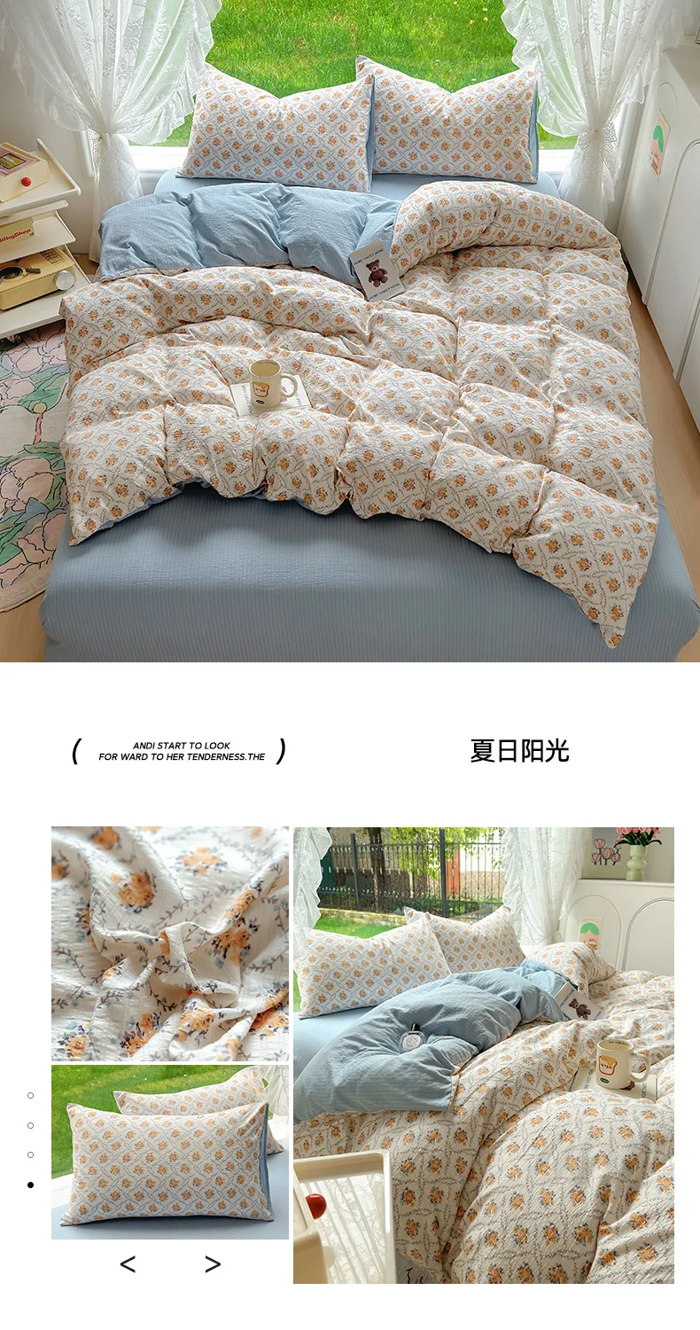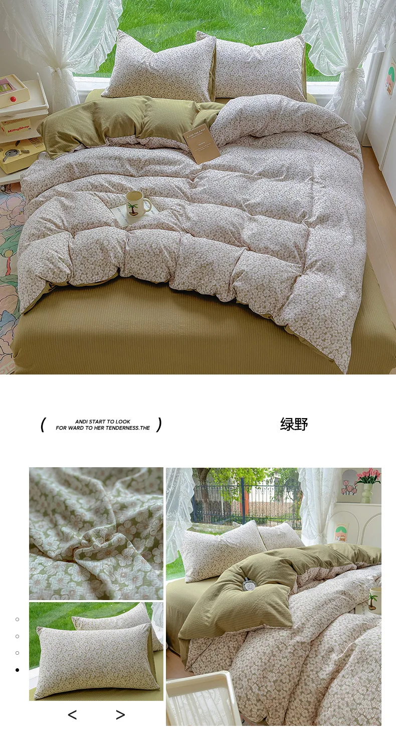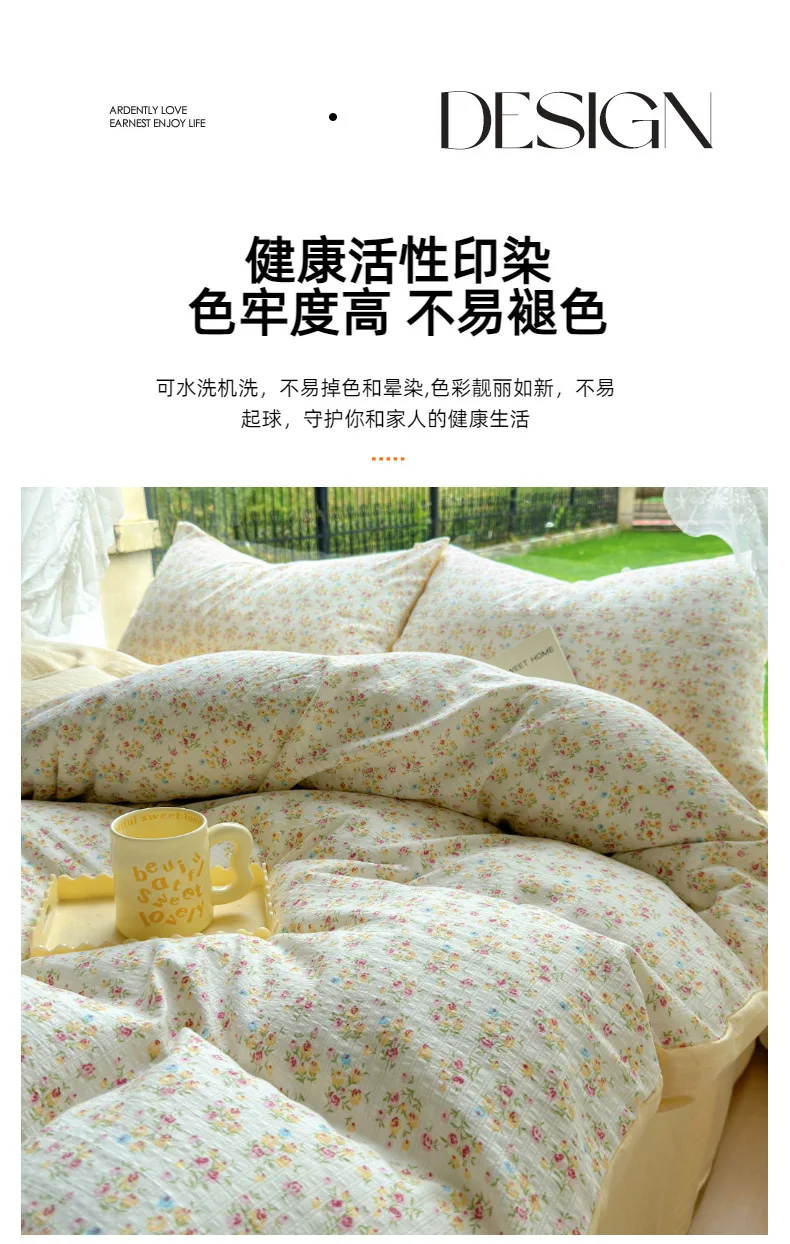 2024 New A-class Mother and Baby Grade Washed Cotton Bed Four Piece Set Small Fresh Bed Sheets, Duvet Covers, Bed Sheets
