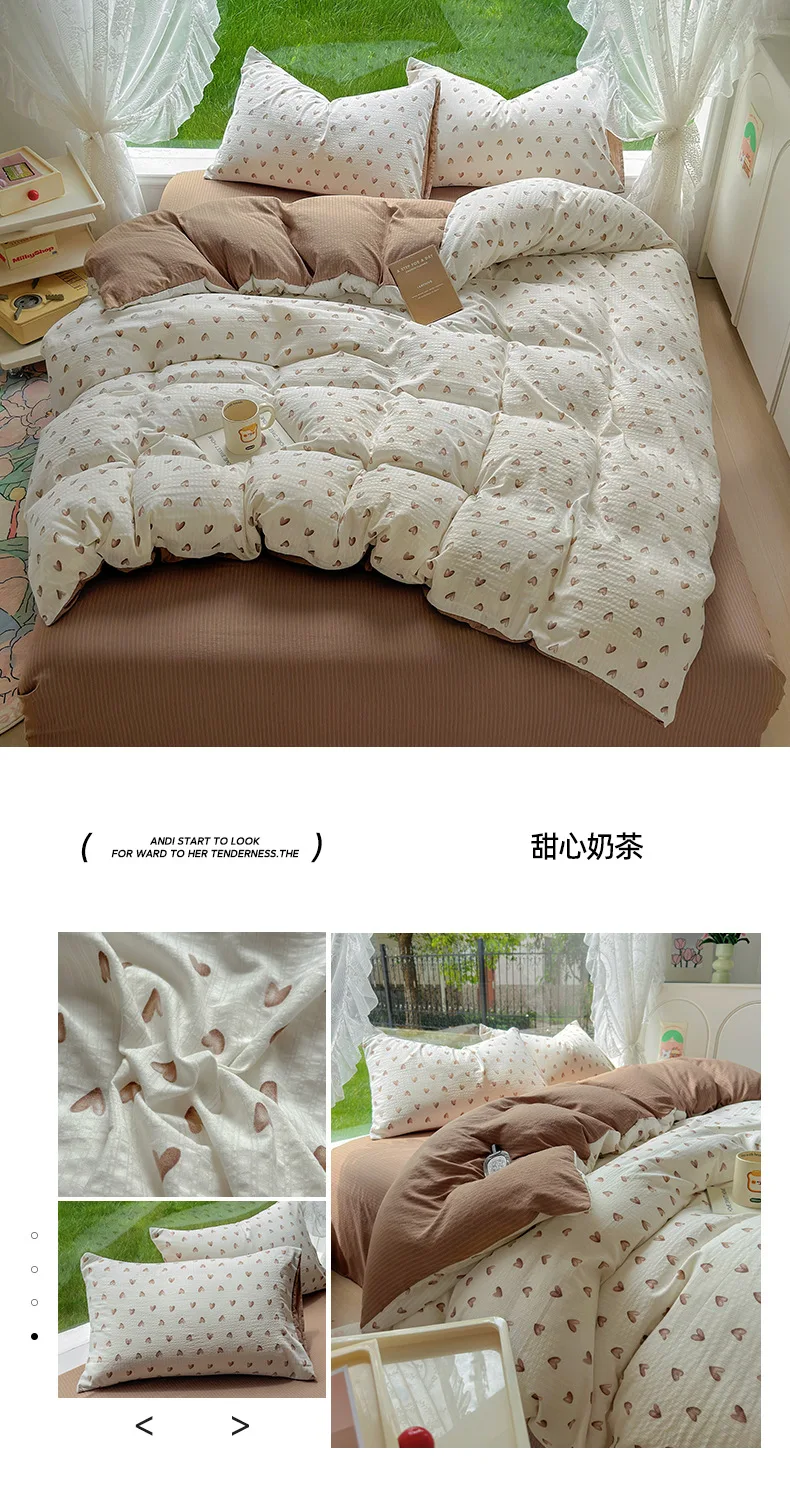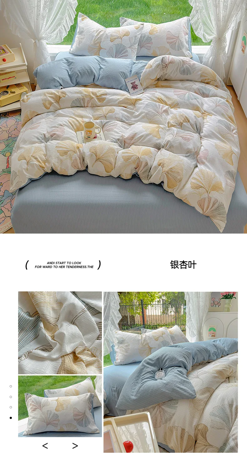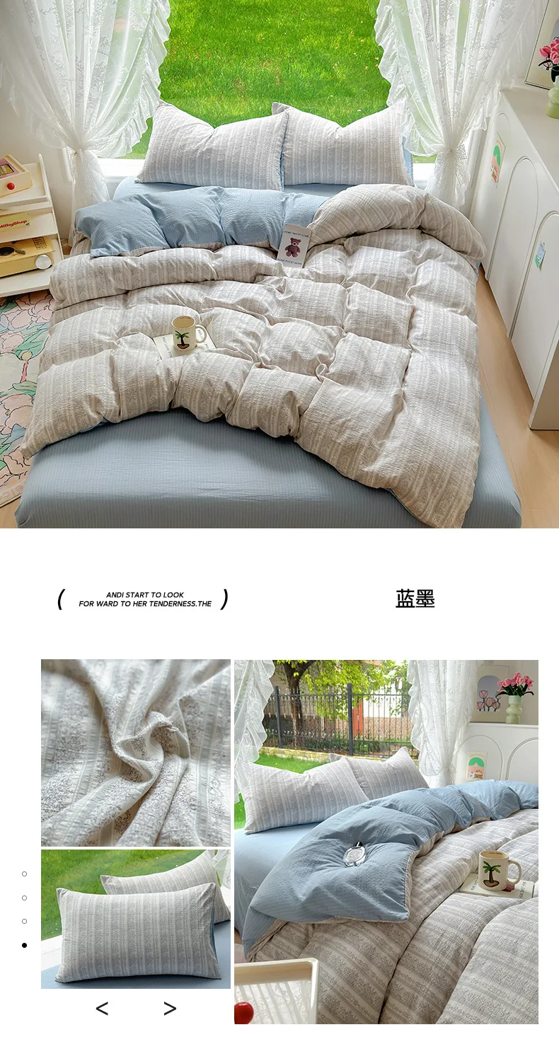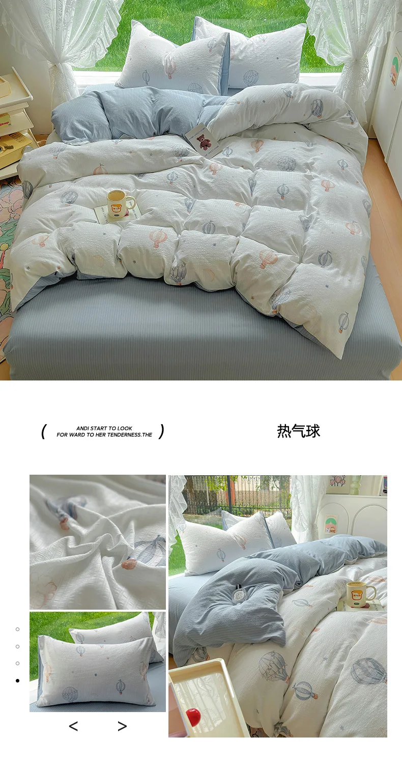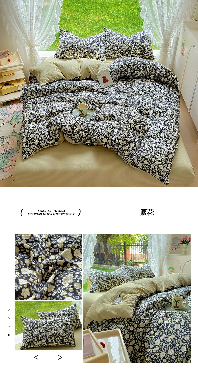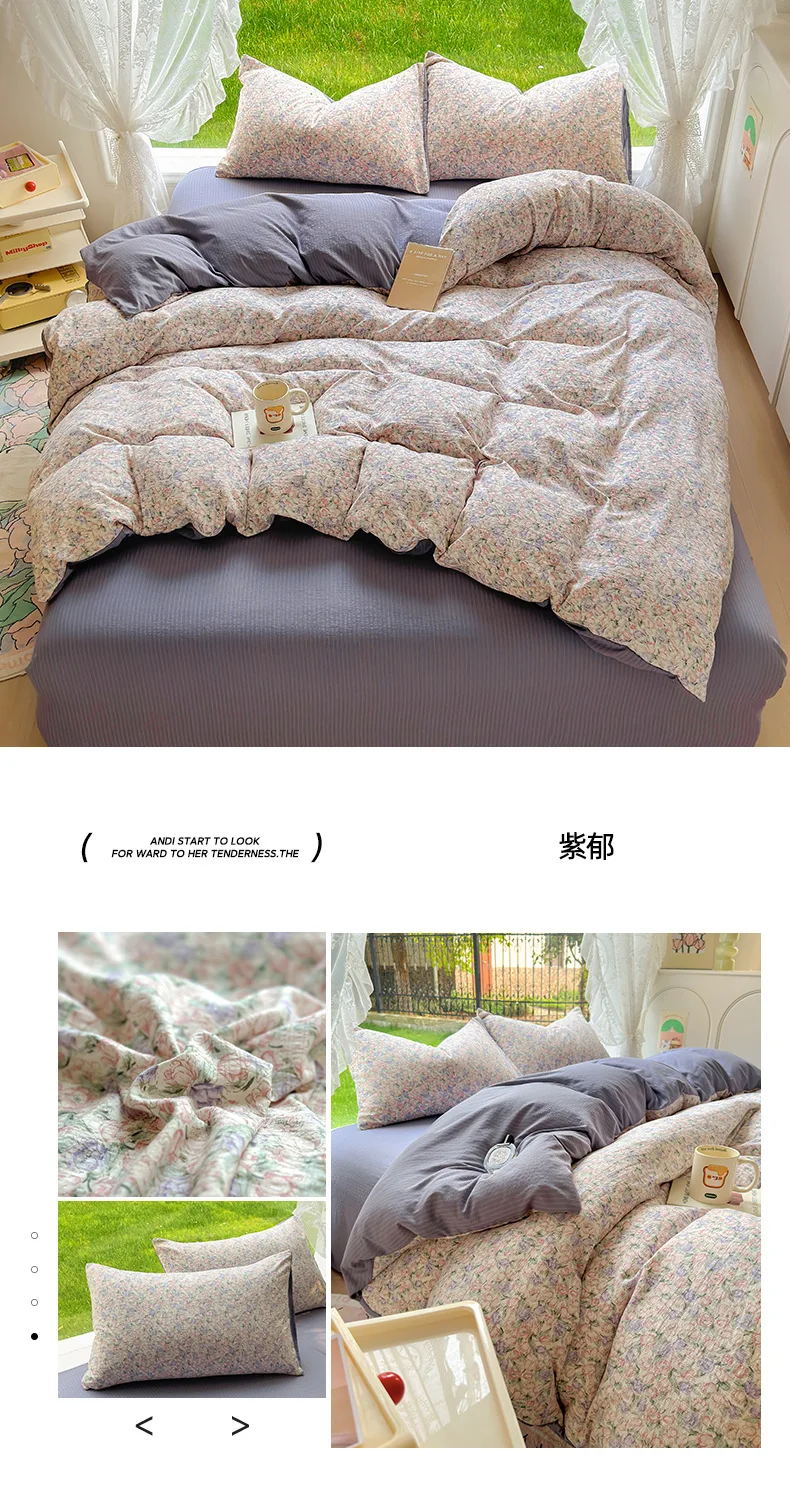 2024 New A-class Mother and Baby Grade Washed Cotton Bed Four Piece Set Small Fresh Bed Sheets, Duvet Covers, Bed Sheets