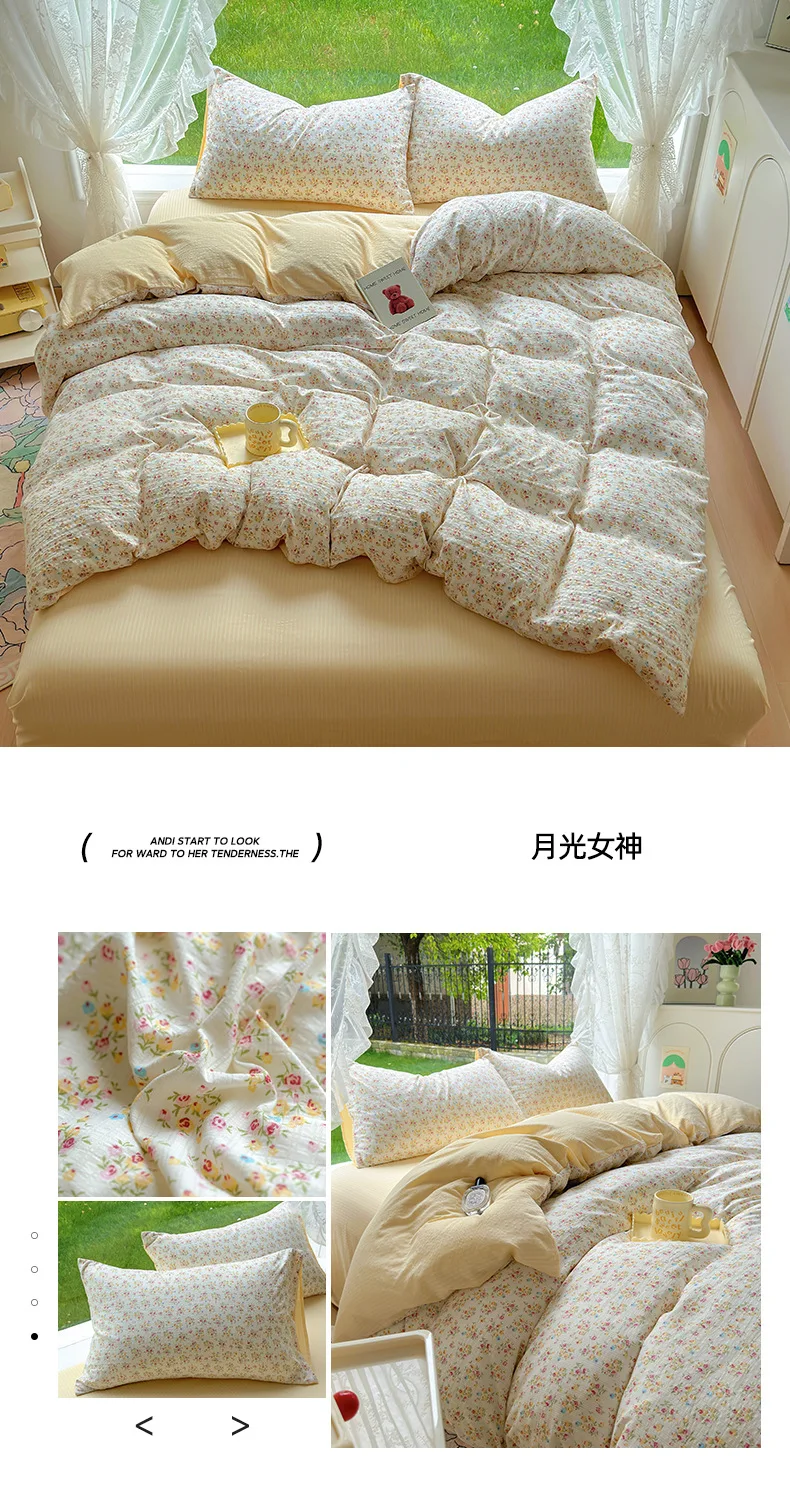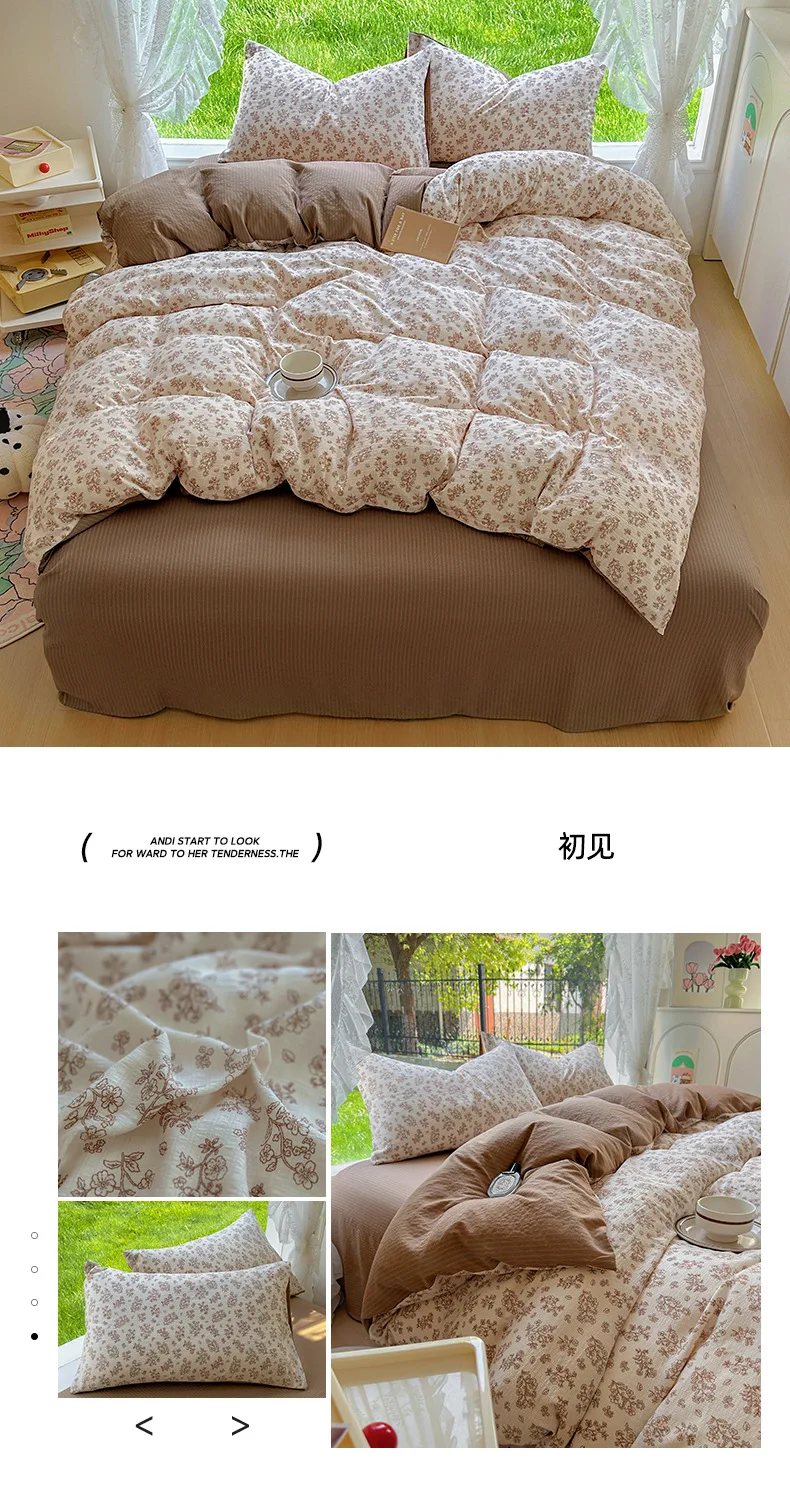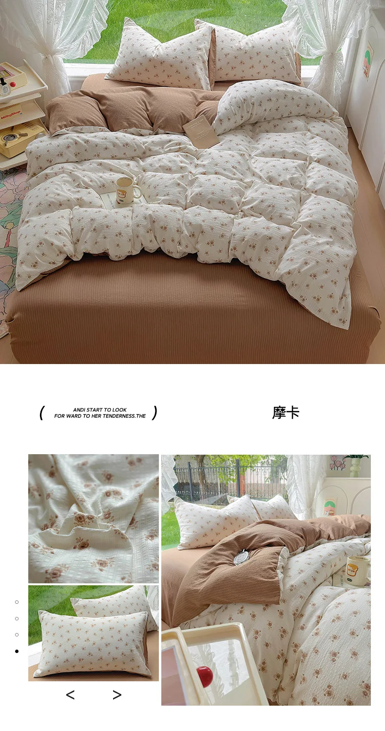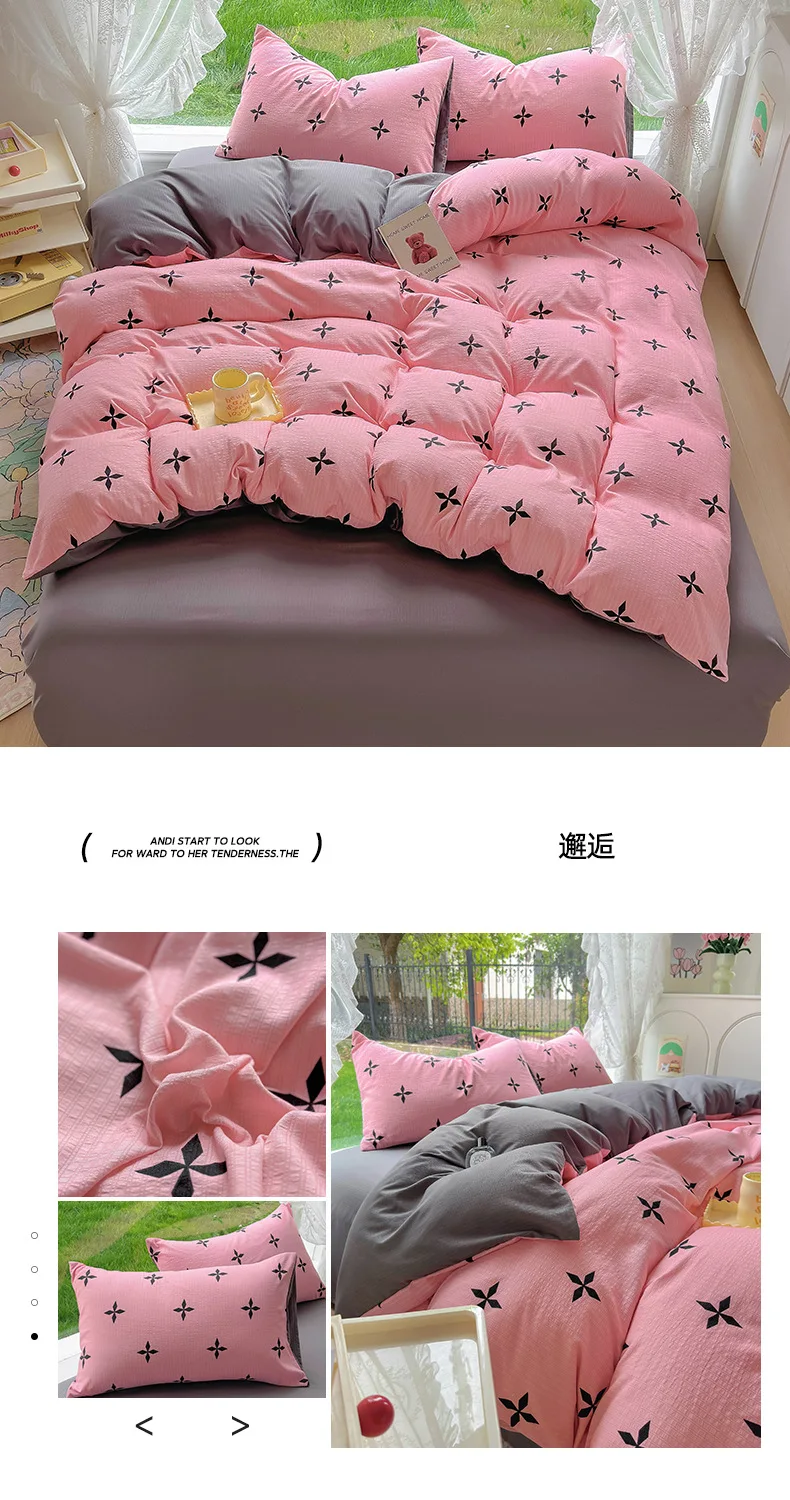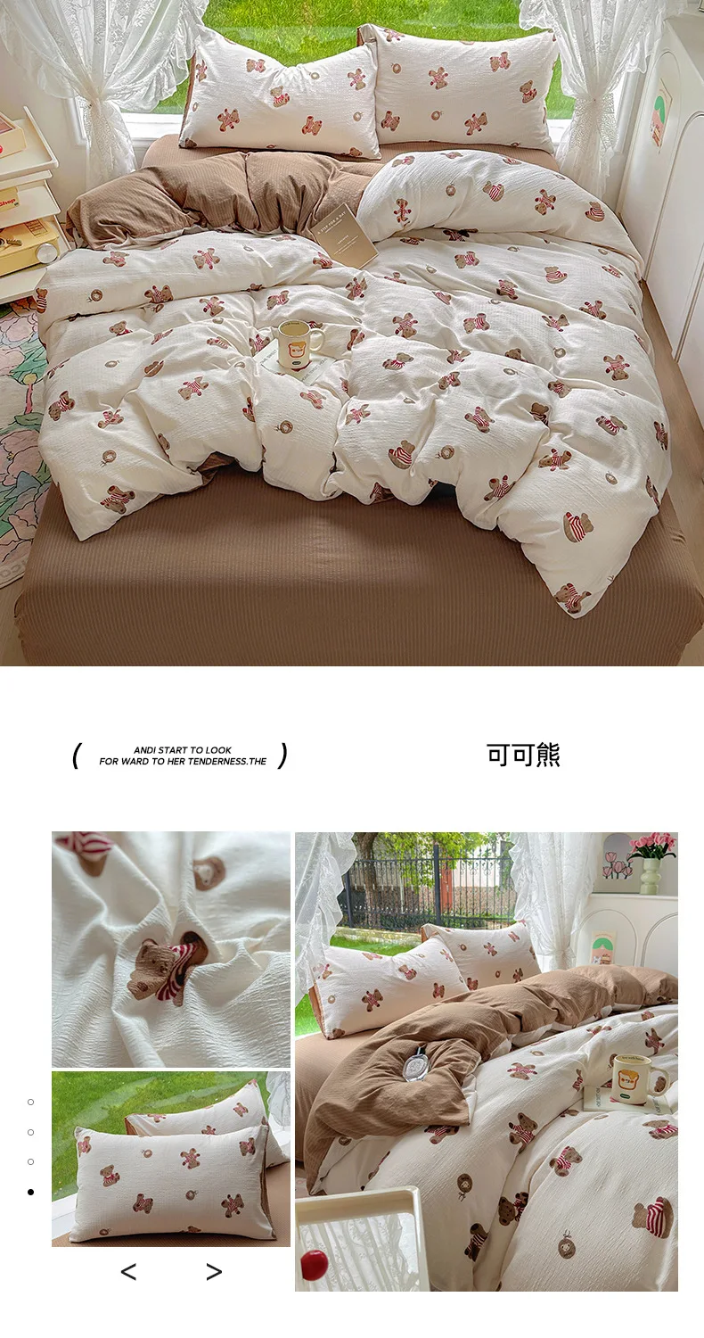 2024 New A-class Mother and Baby Grade Washed Cotton Bed Four Piece Set Small Fresh Bed Sheets, Duvet Covers, Bed Sheets