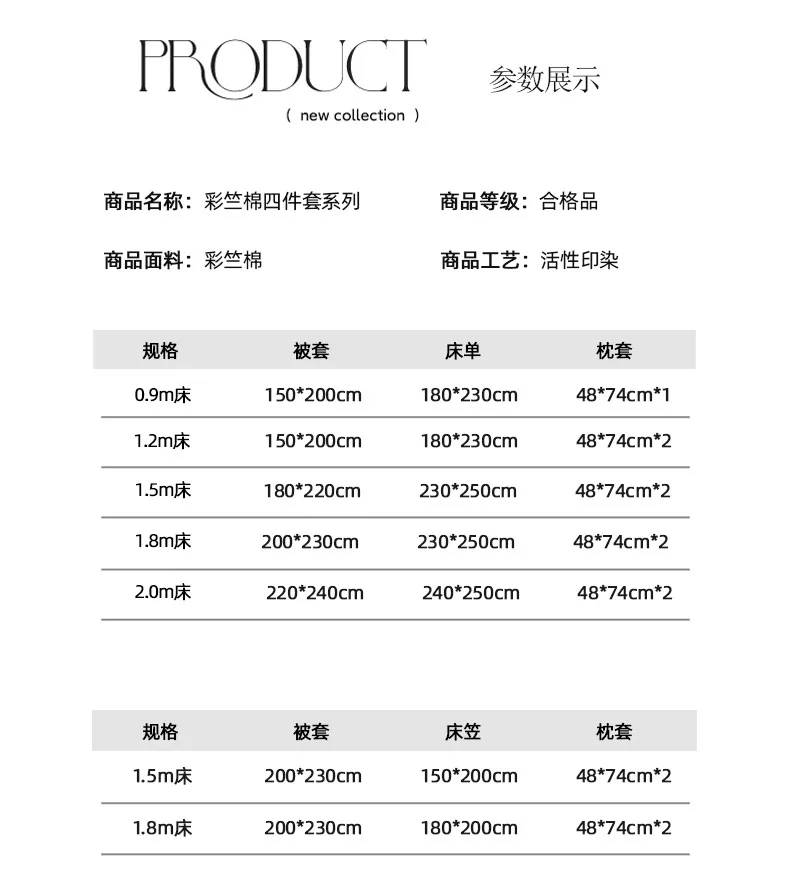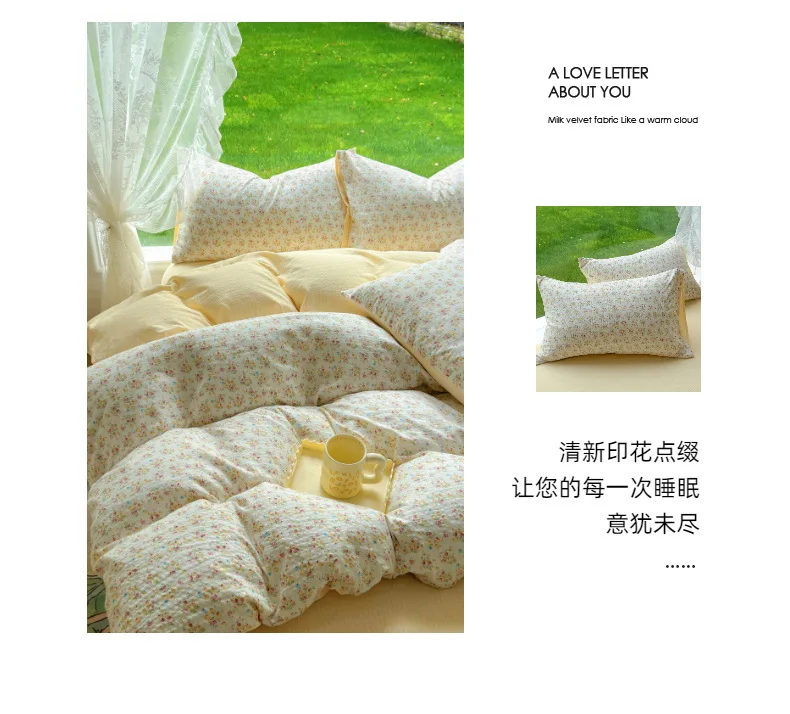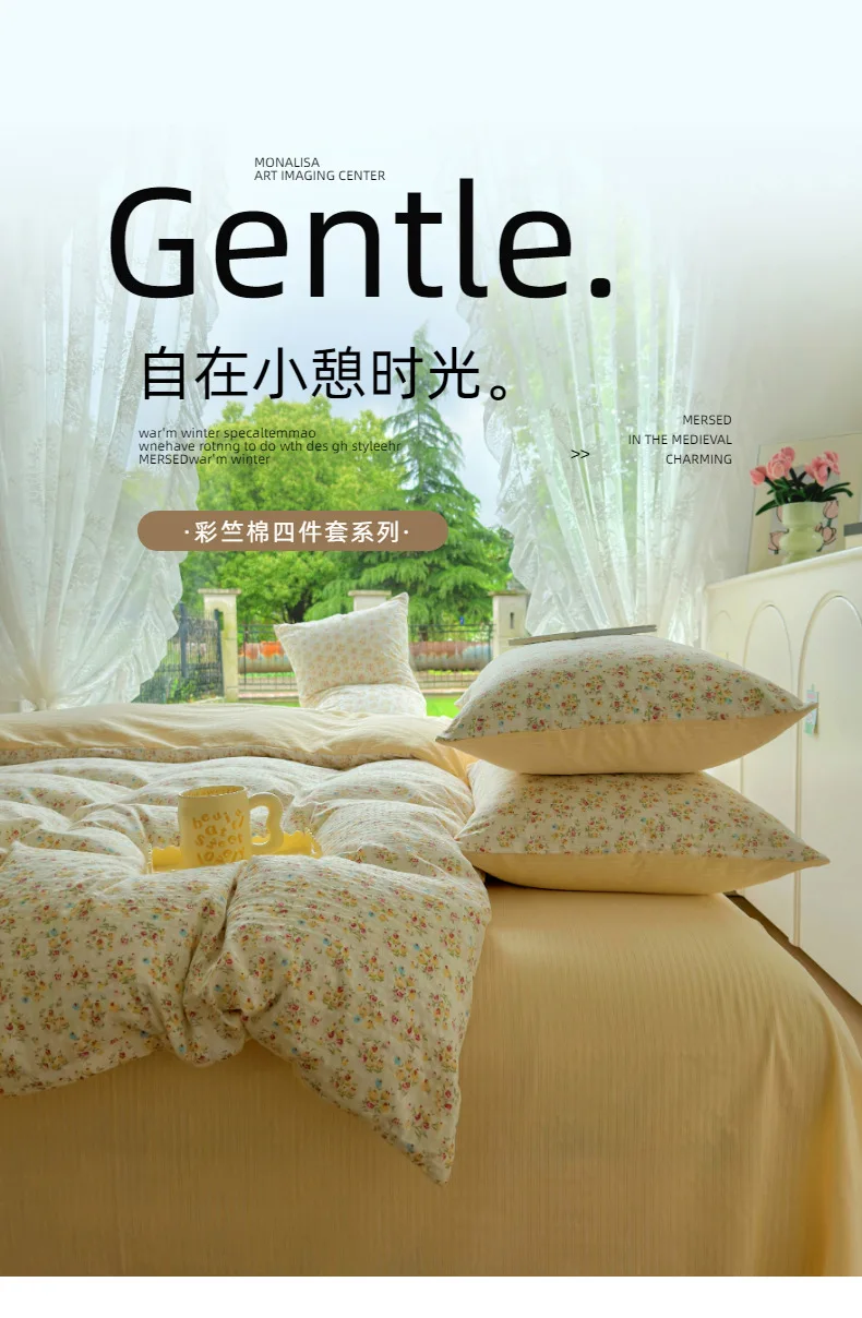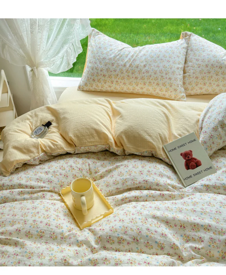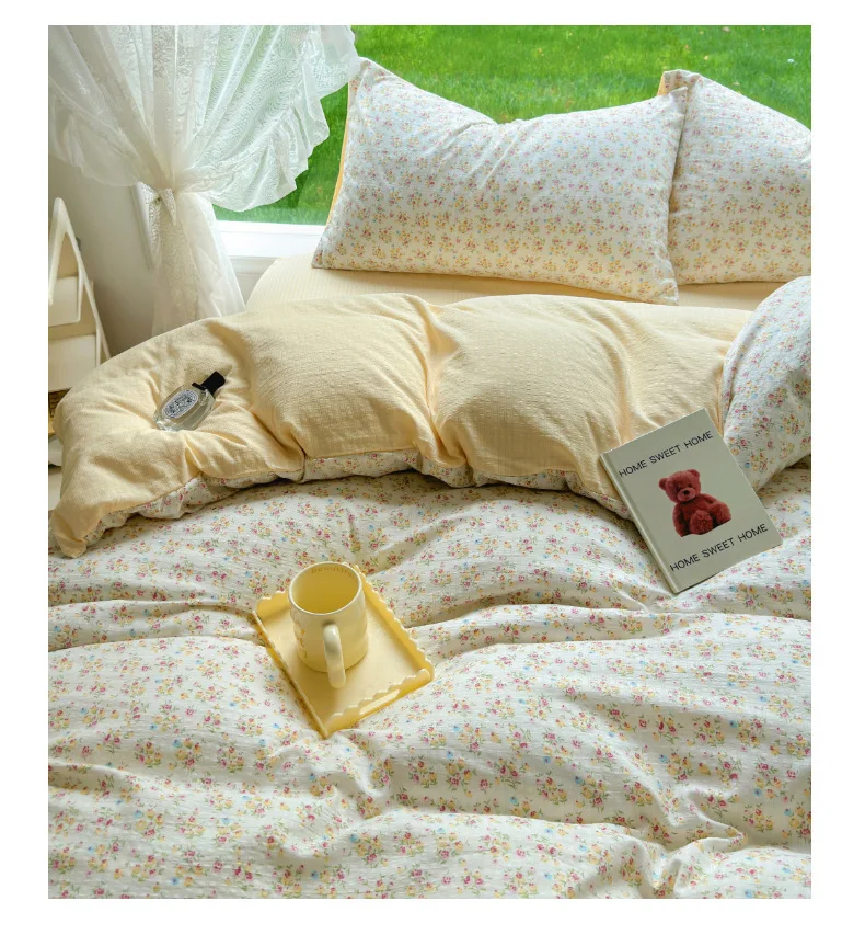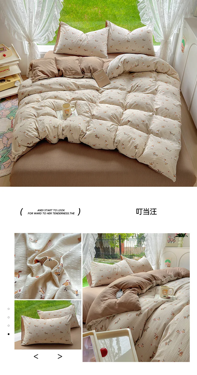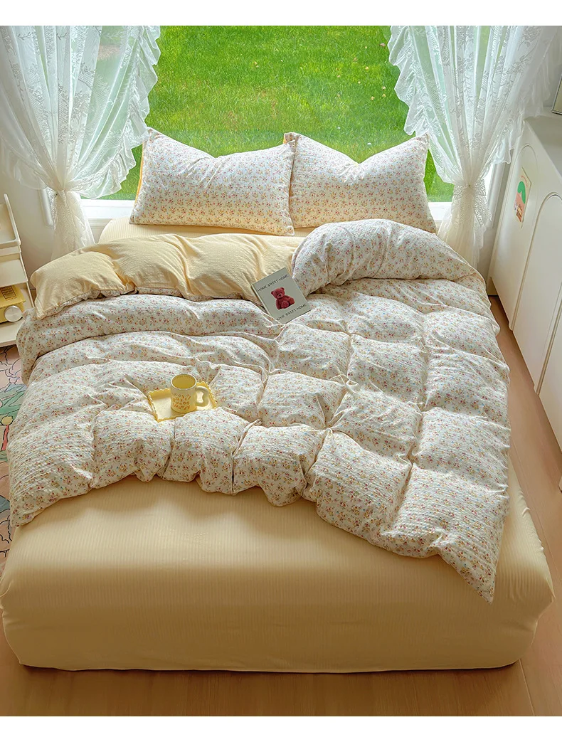 2024 New A-class Mother and Baby Grade Washed Cotton Bed Four Piece Set Small Fresh Bed Sheets, Duvet Covers, Bed Sheets