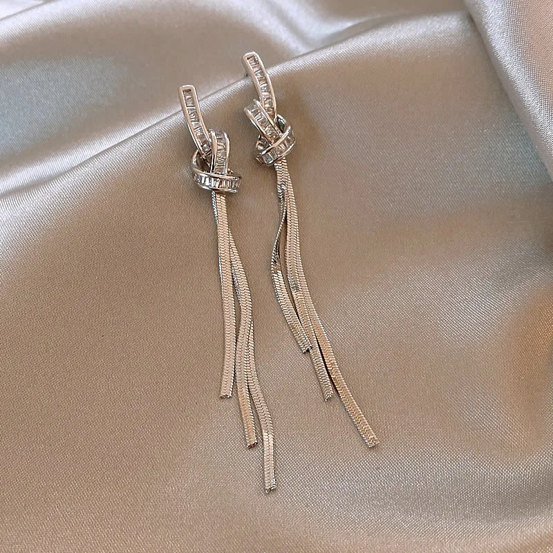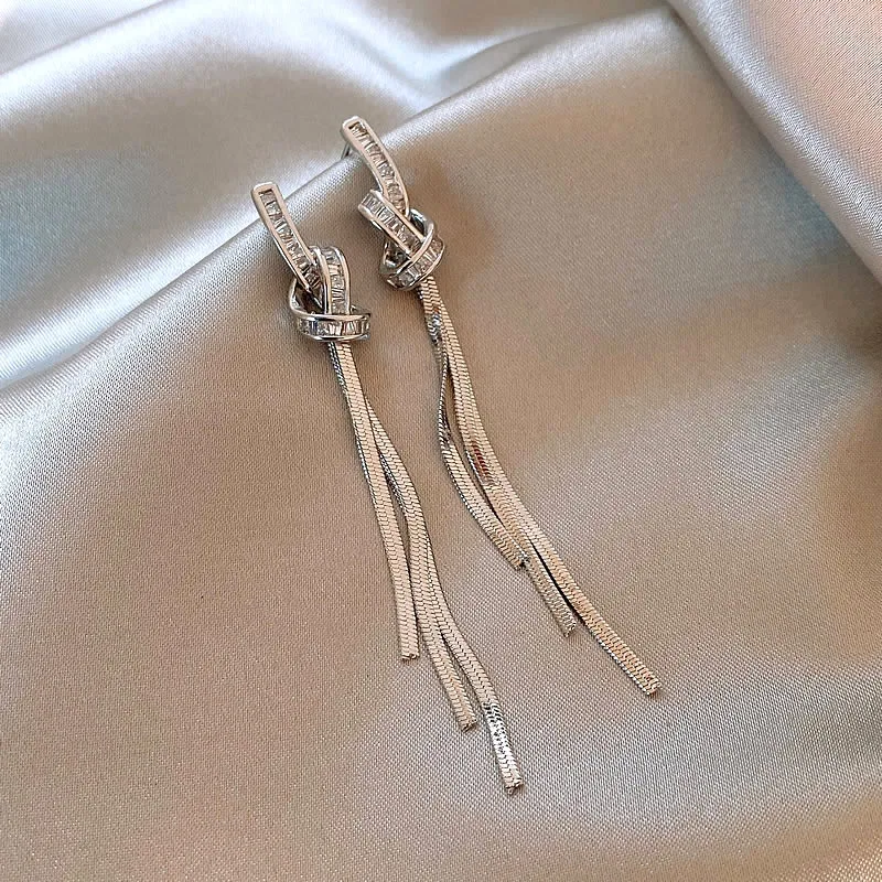 2024 New Arrival Light Luxury Elegant Long Geometric Tassel Dangle Earrings For Women Fashion Simple Metal Jewelry Party Gifts