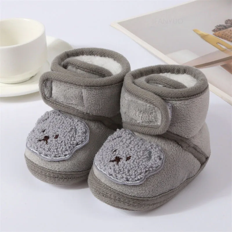 2024 New Baby Cute Shoes Children Soft Soled Walking Shoes Autumn Winter Cartoon Bear Newborn Infant Cotton Boots First Walkers