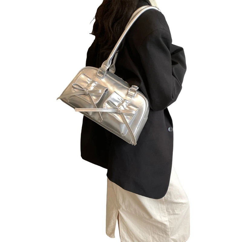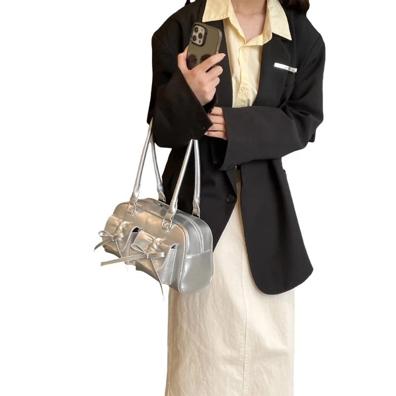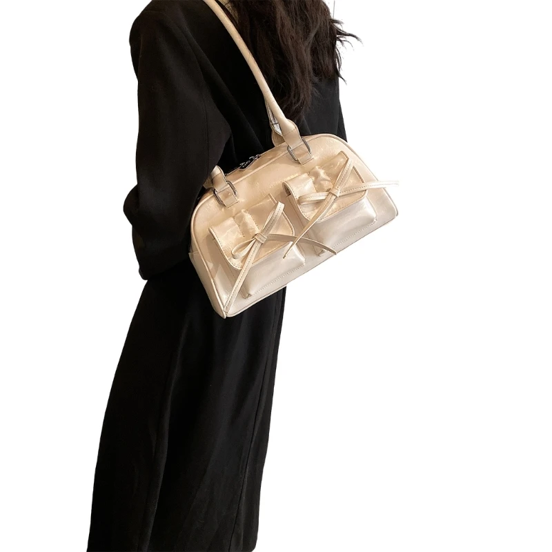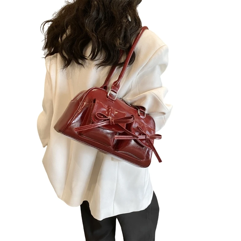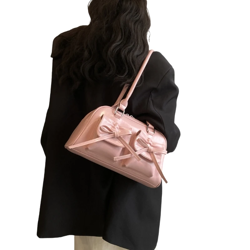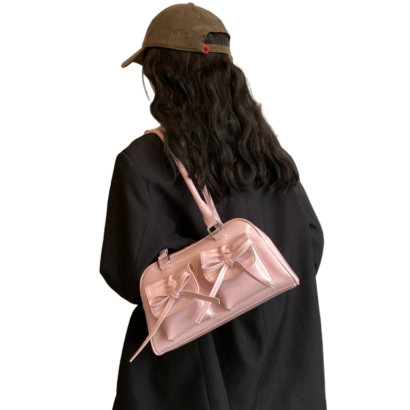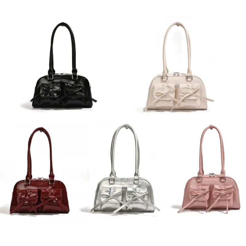 2024 NEW Bowknot Shoulder Bags Solid Color Underarm Bag Armpit Bag for Girl Women Fashion Bags Leather Handbag