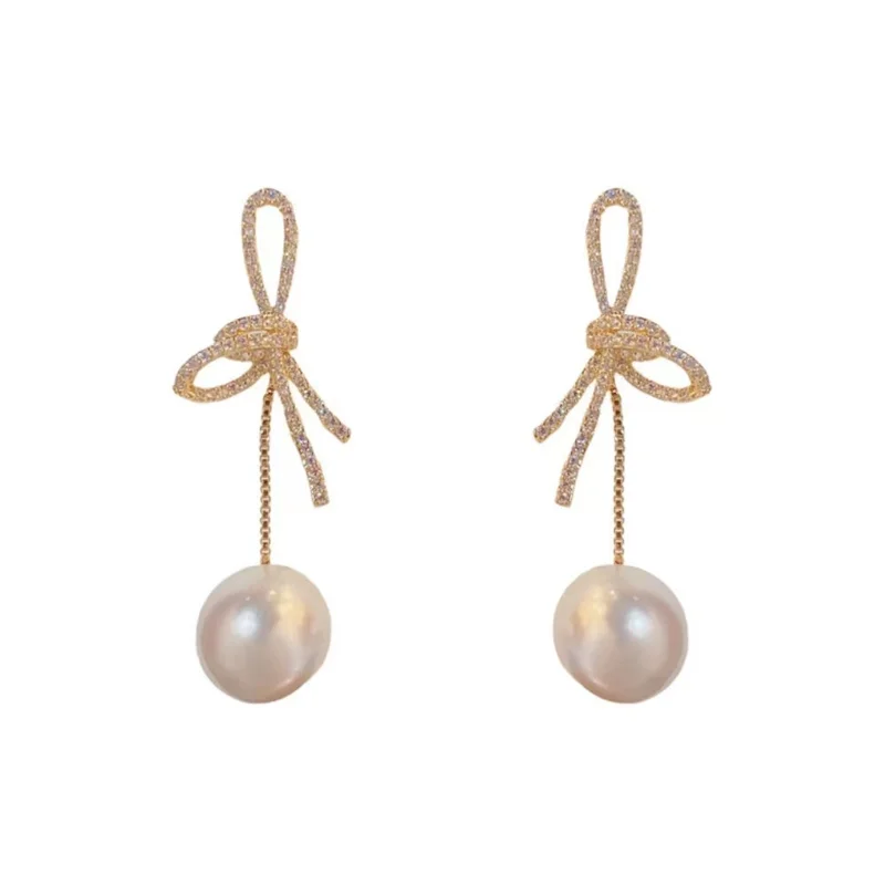 2024 New Delicate Versatile Bowknot Drop Earrings Fashion Long Tassels Sweet Pearl Women Earrings Jewelry Girl’s