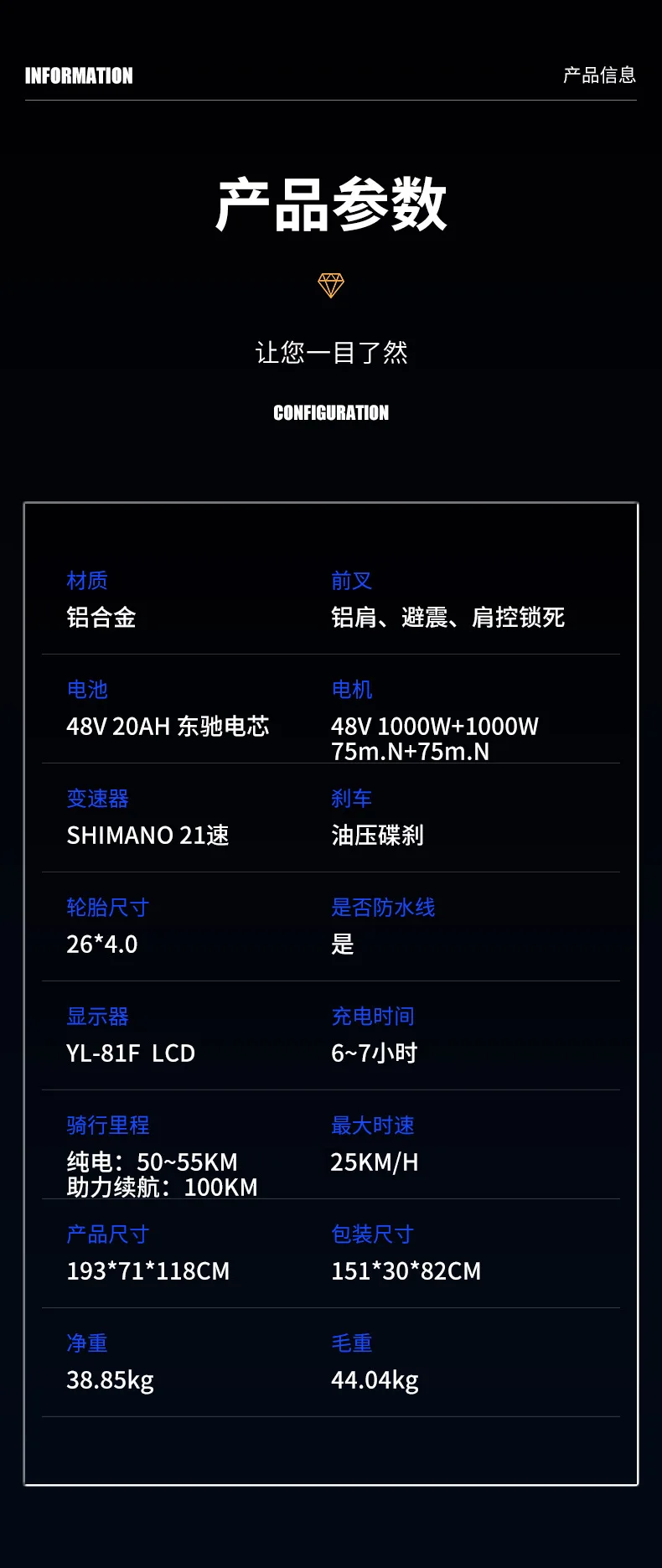 2024 New Electric Bicycle 26 “high Endurance 48V Dual Motor 2000W Bicicletas