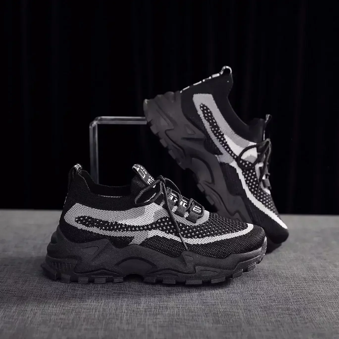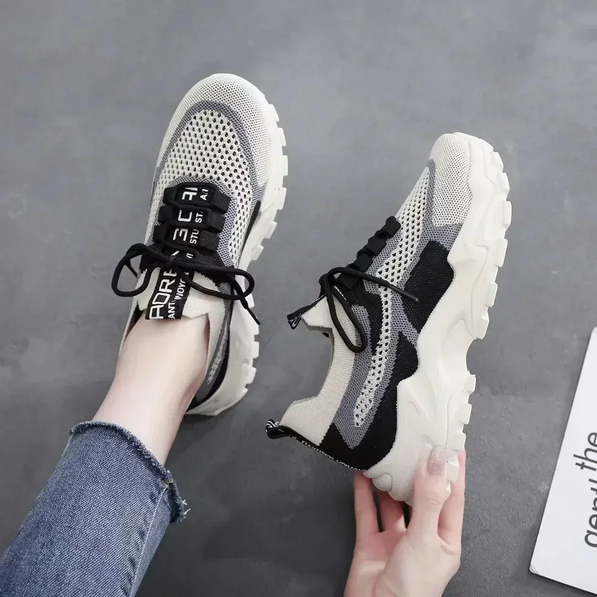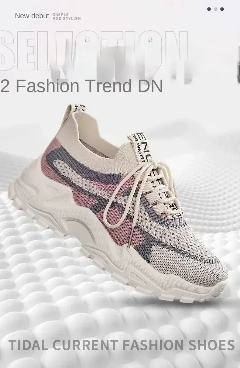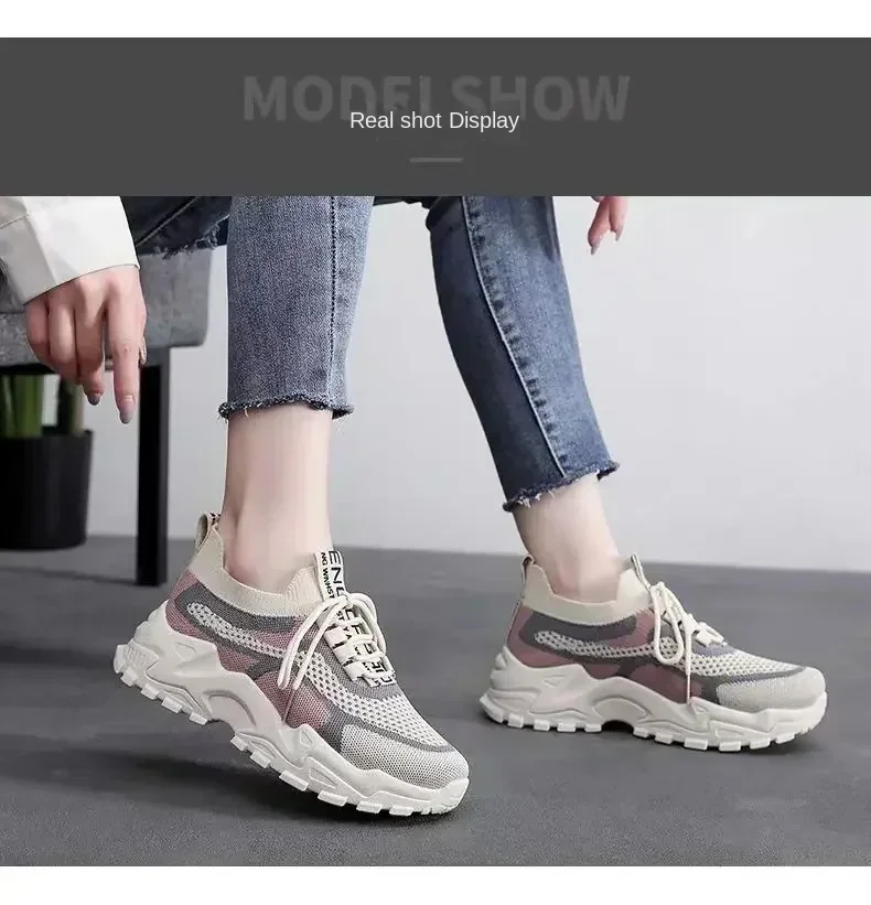 2024 New Fly Woven Mesh Casual Breathable Sneakers Korean Style Thick-Soled Daddy Shoes Odor Resistant Shoes Light Running Shoes