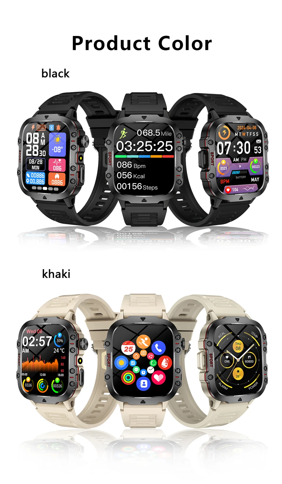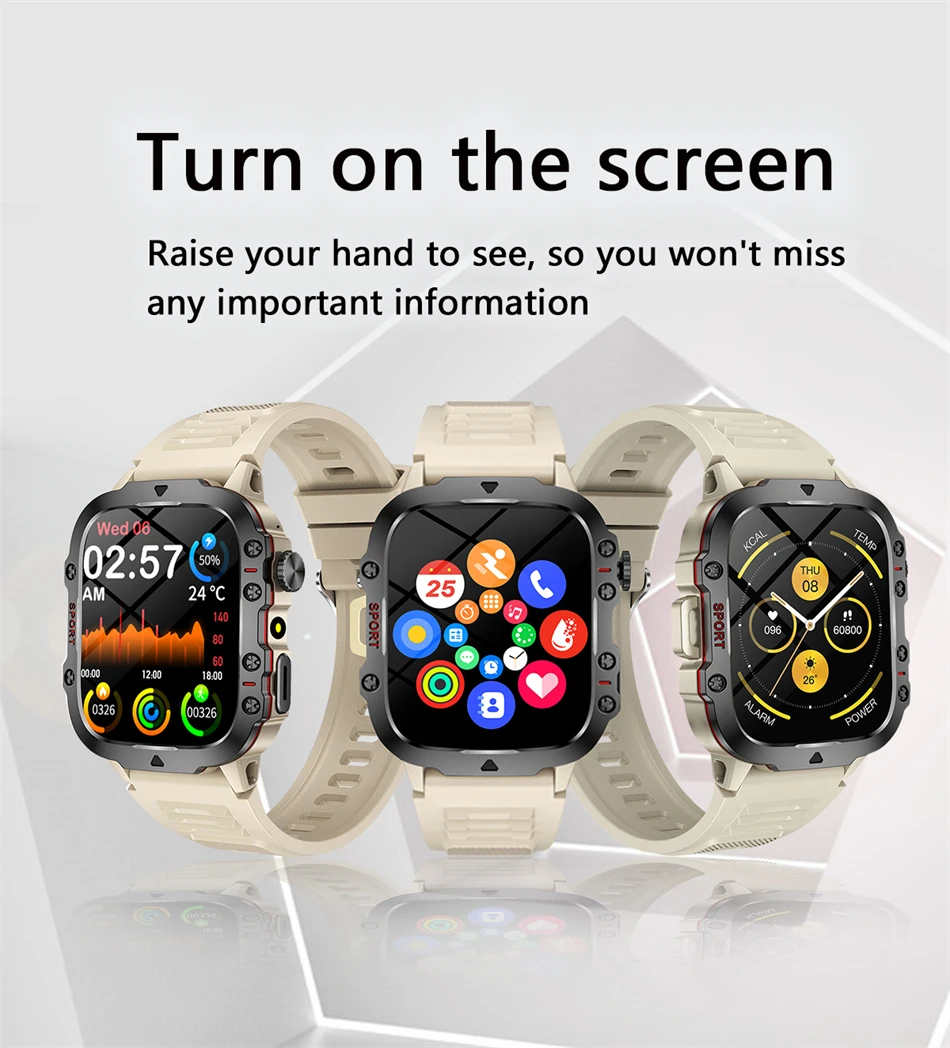 2024 New For Xiaomi Outdoor military smart watch Men LED Lighting Bluetooth Call IP67 Waterproof 100+ Sports Mode Smart Watch