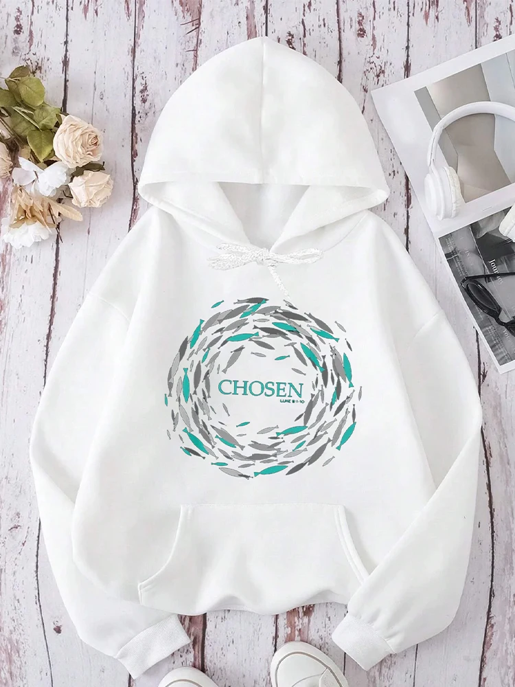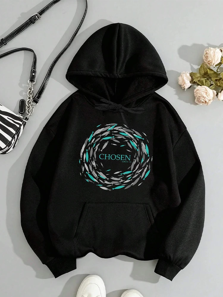 2024 New Hoodies Chosen X Fish Swim Against The Current X Bible Sweatshirt Women Hoodie Long Sleeves Crewneck Sweatshirts