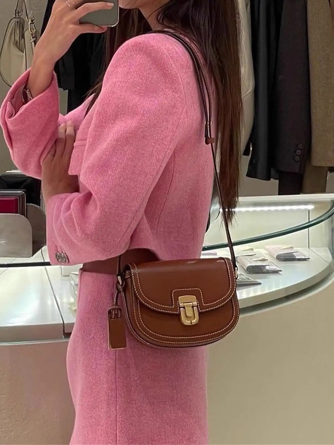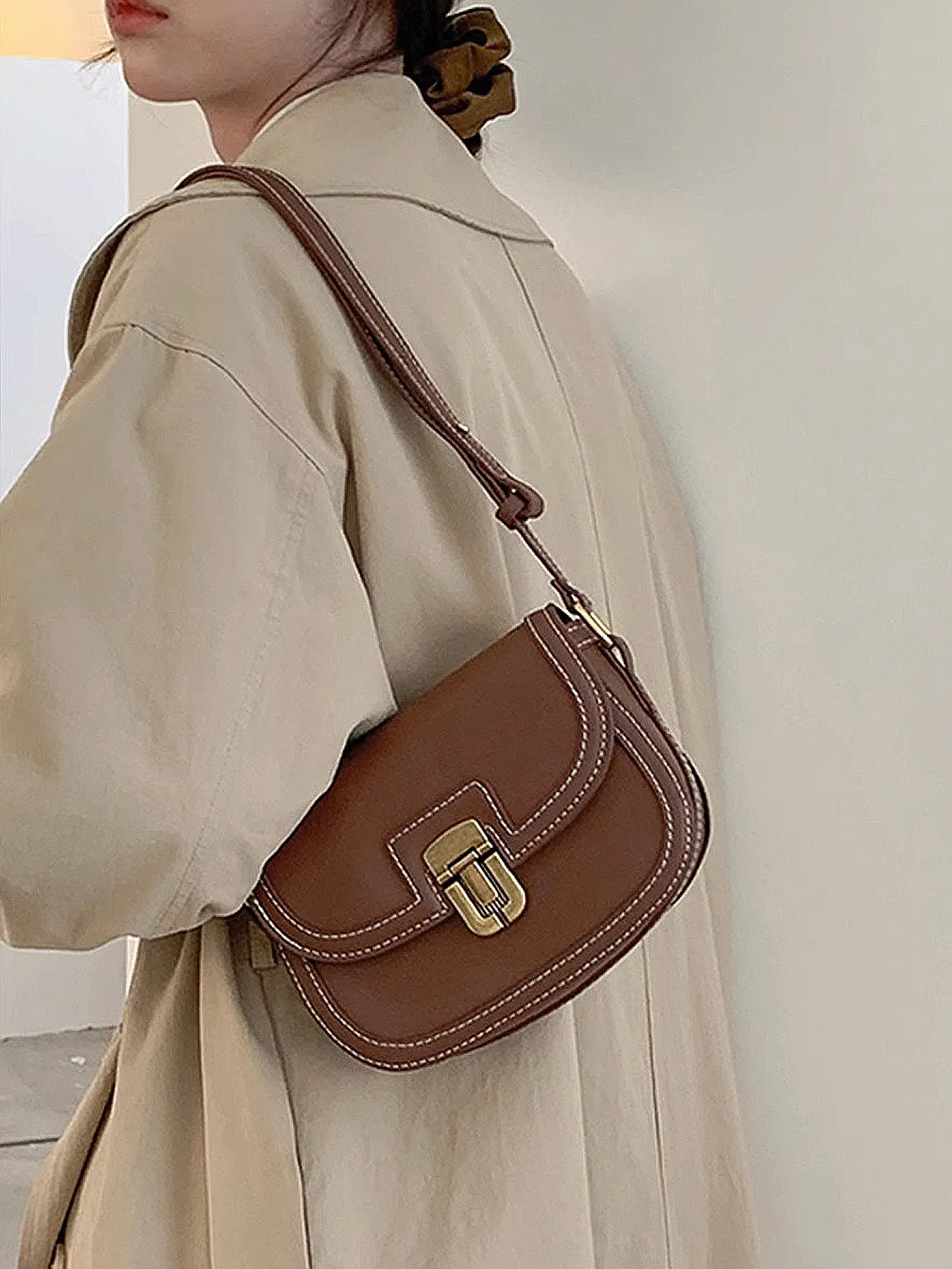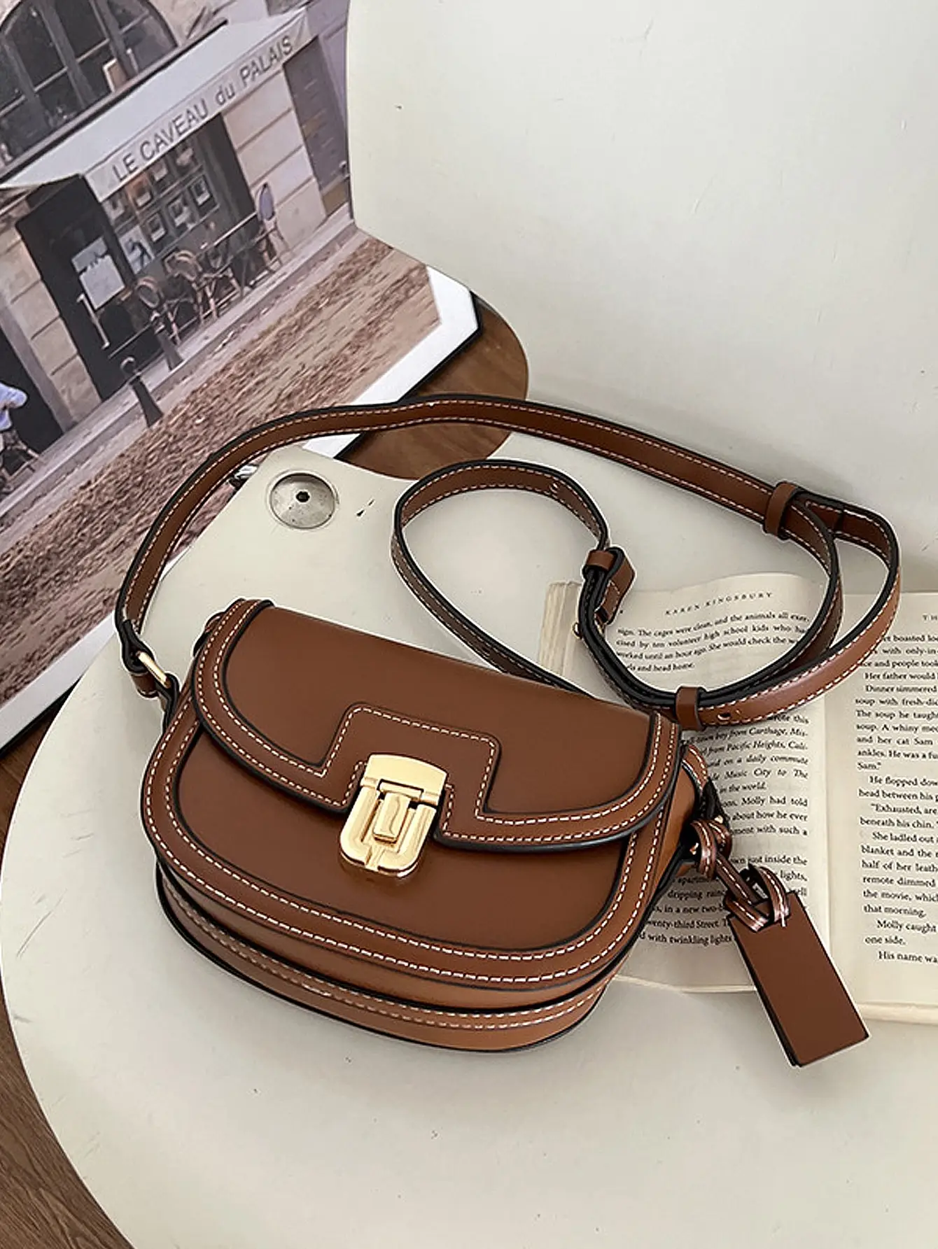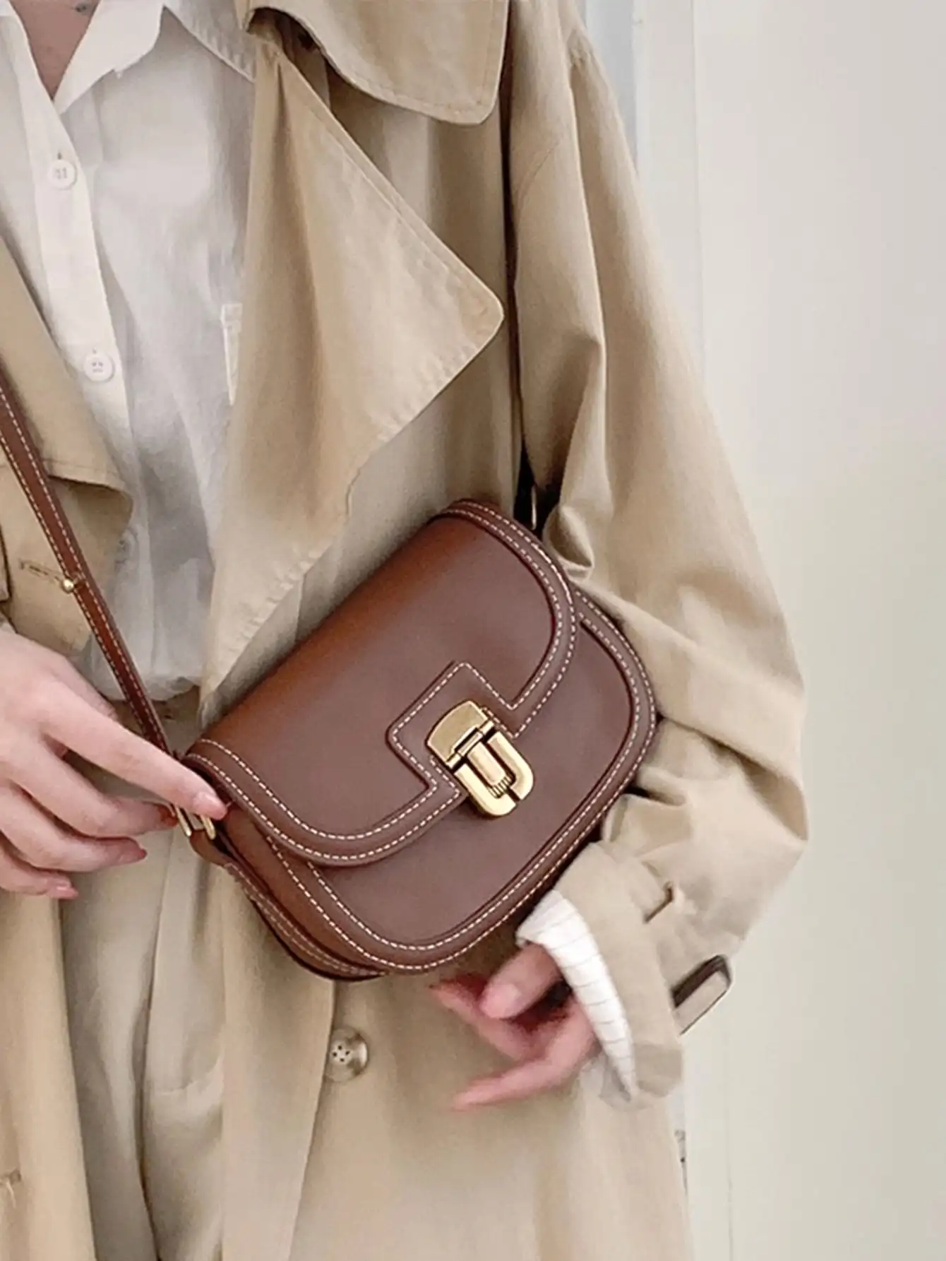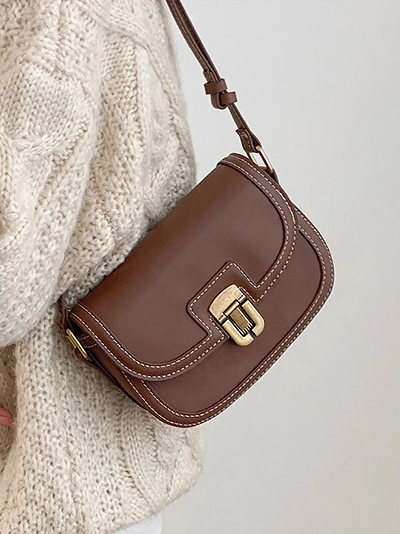 2024 new ins niche contrasting color single shoulder diagonal saddle bag retro versatile underarm small bag for women