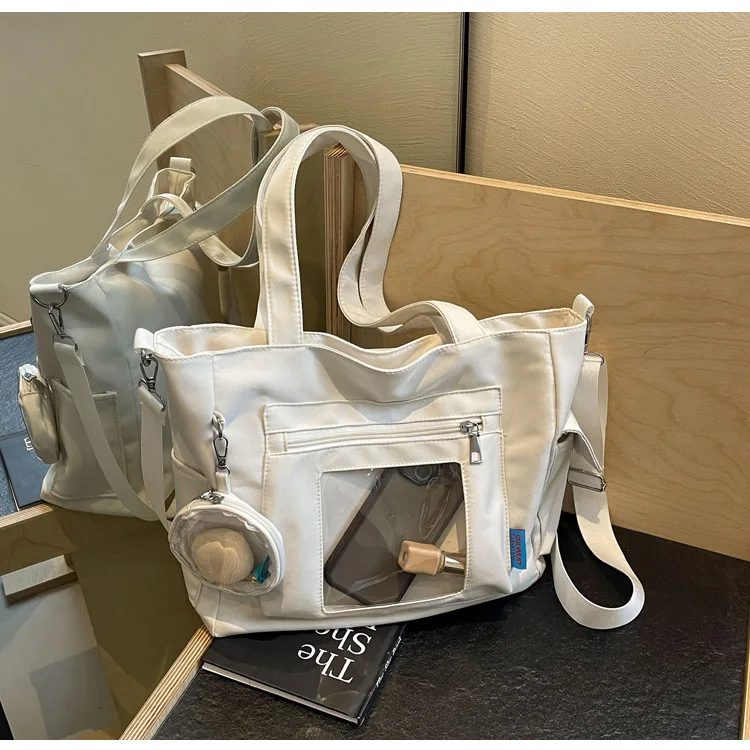 2024 New Large-capacity Transparent Bag Women’s High-end Canvas Bag Crossbody Portable Commuter Tote Bag