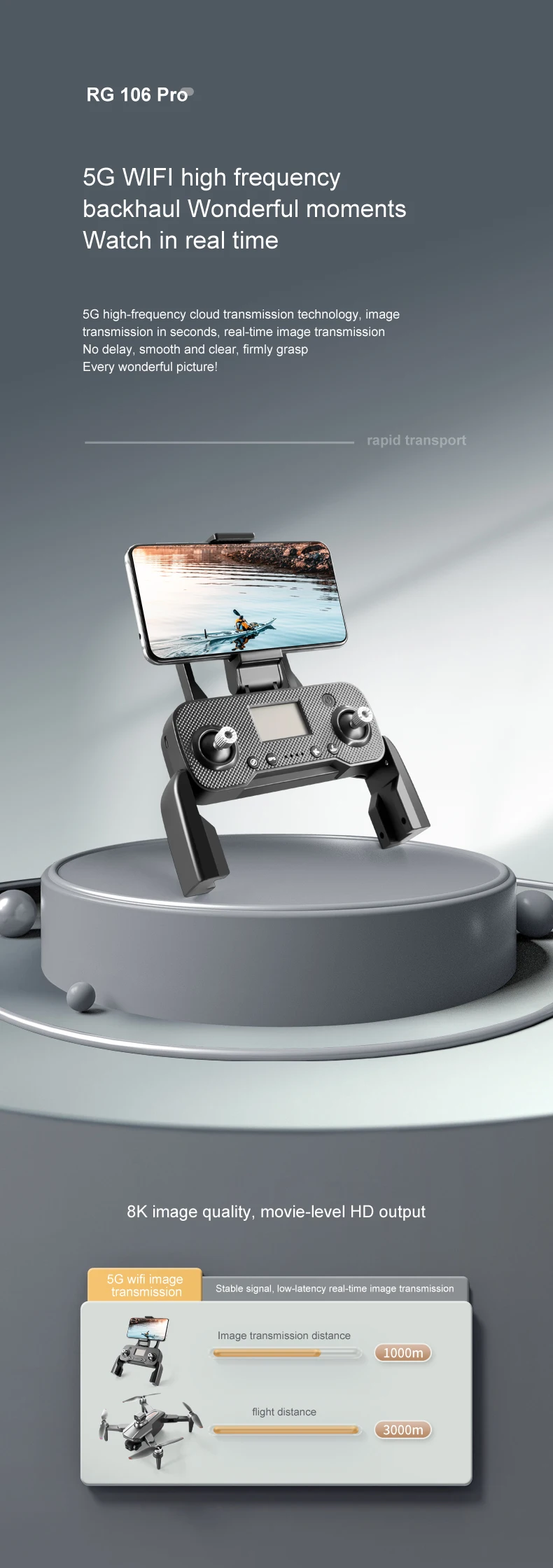 2024 NEW RG106 PRO 3-axis Gimbal GPS 5G WiFi Drone 8k Professional Dual-Camera Drones Fpv UAV with Brushless Motor Quadcopter