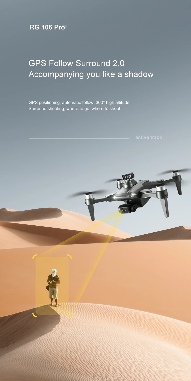 2、①GPS intelligent follow: after the aircraft link good GPS, open the APP follow function, the aircraft follow the cell phone movement.