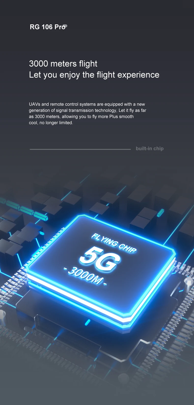 1、GPS one key to return to the take-off point, low power return, no signal return.
