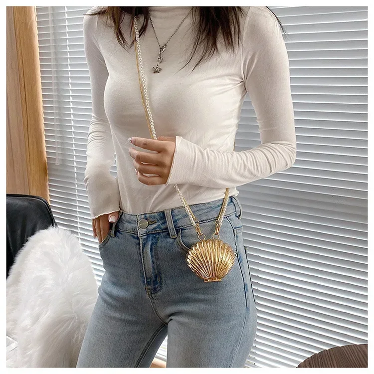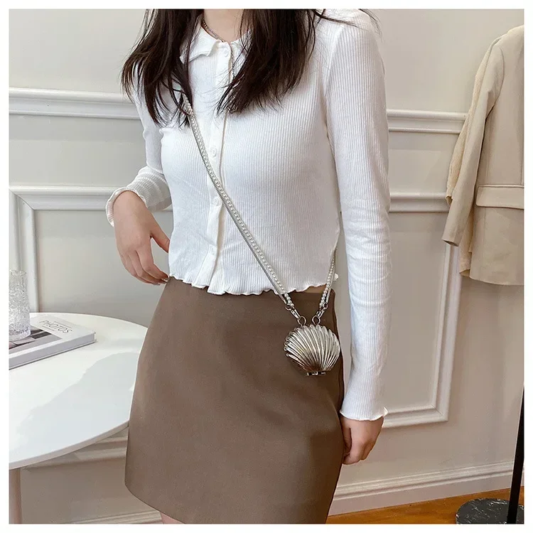 2024 New Summer Lipstick Bags for Women Fashion Pearl Mini Purse Crossbody Bag High Quality Gold Shell Bag Designer Shoulder Bag