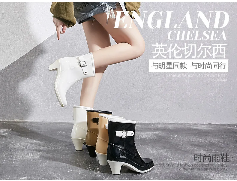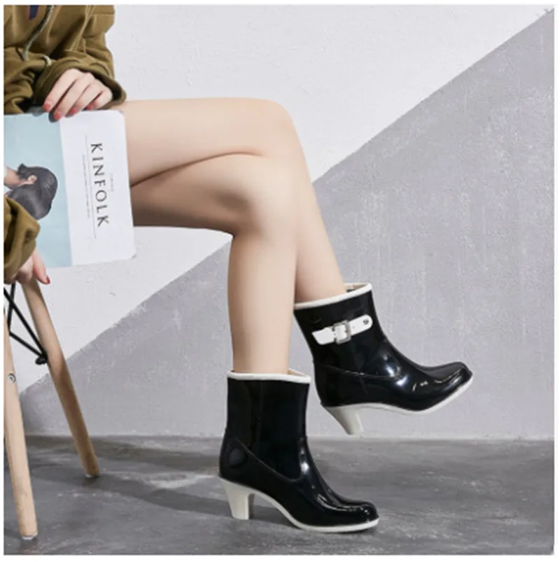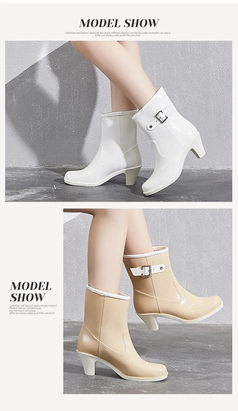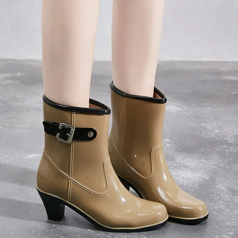 2024 New Women’s Rain Ankle Boots Ladies Waterproof Woman Snow Boot Female Non-Slip High Heel Fashion Water Shoes Botas Mujer
