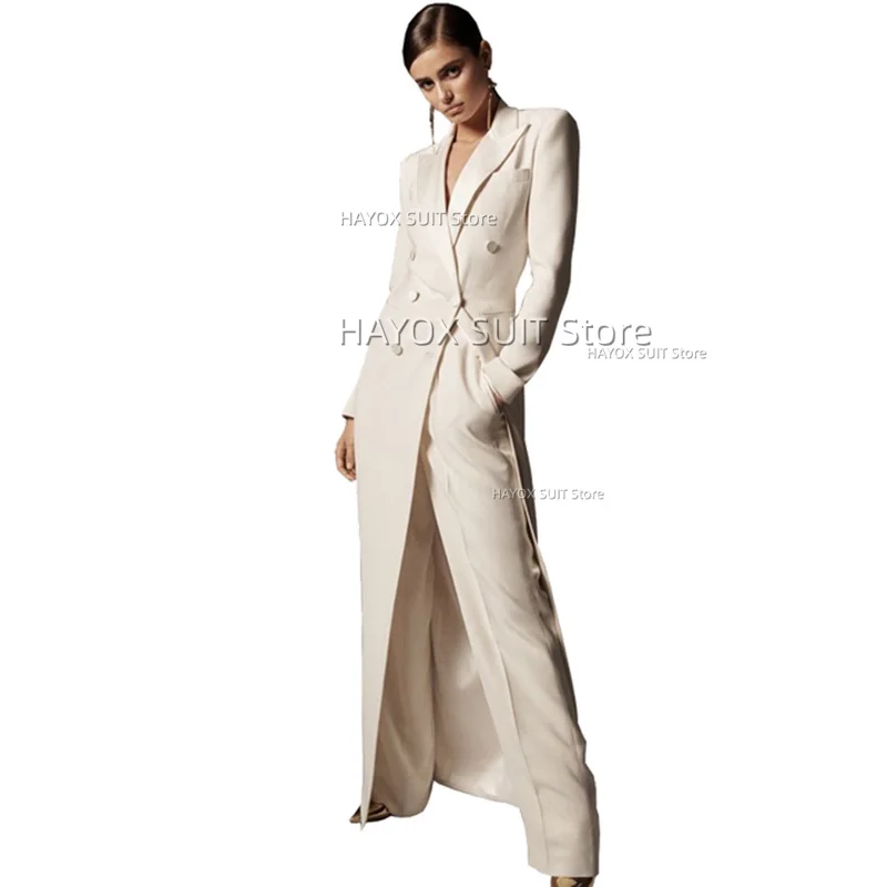 2024 New Women’s Suit Long 2-piece Set Slim Double Breasted Dress Elegant Formal Women’s Wedding Tuxedo Comfortable Commuting