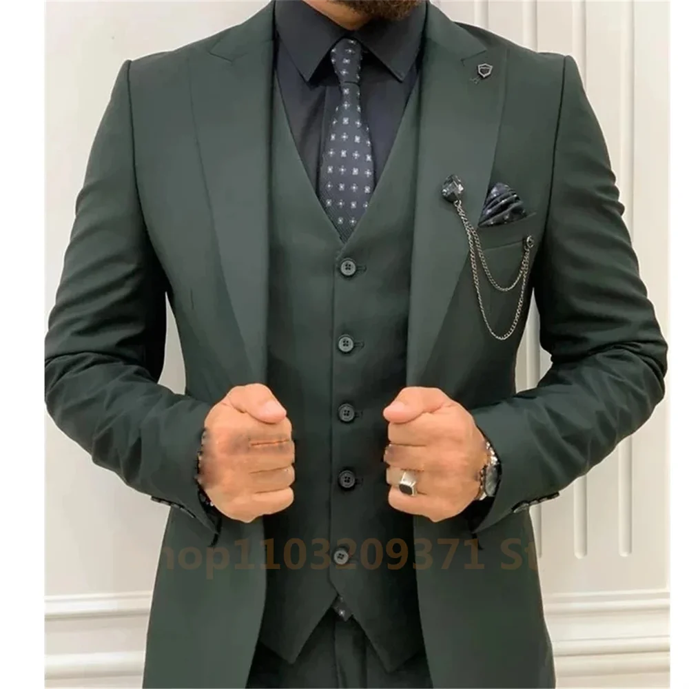 2024 Post Green Suits Men Suits 3 Pieces Wedding Wear Business Male Groom Wedding Dress Jacket Vest Pants Set Blazers Coat