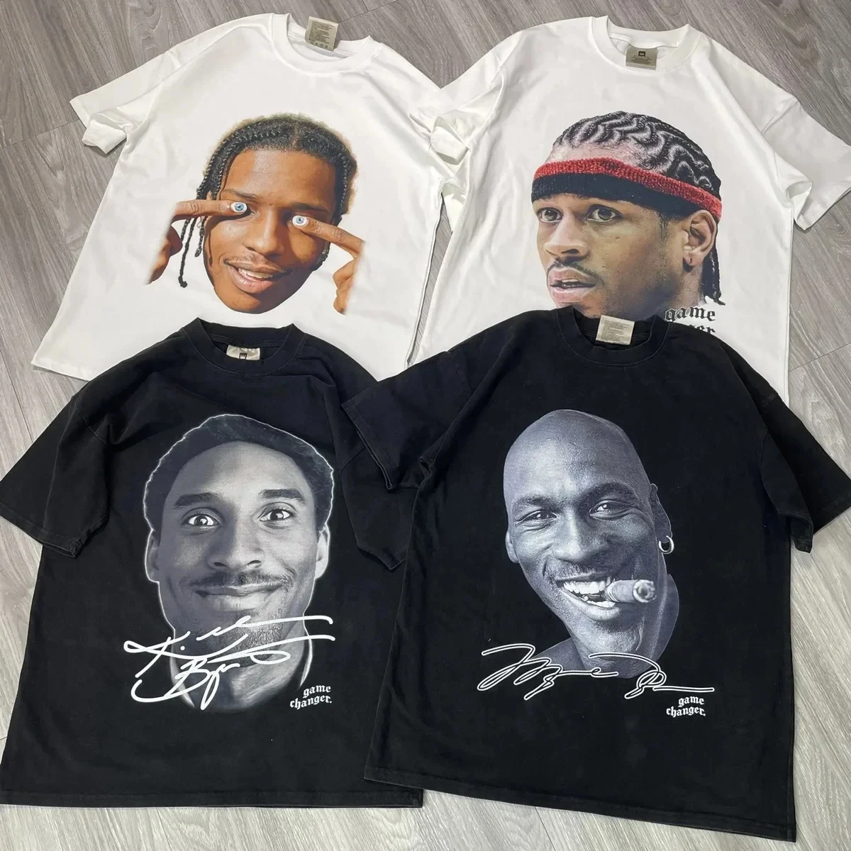 2024 Summer Basketball Star Retro Short-Sleeved Big Head Graphic Print T-Shirt Men’s Short-Sleeved Summer Street Sports T-Shirt