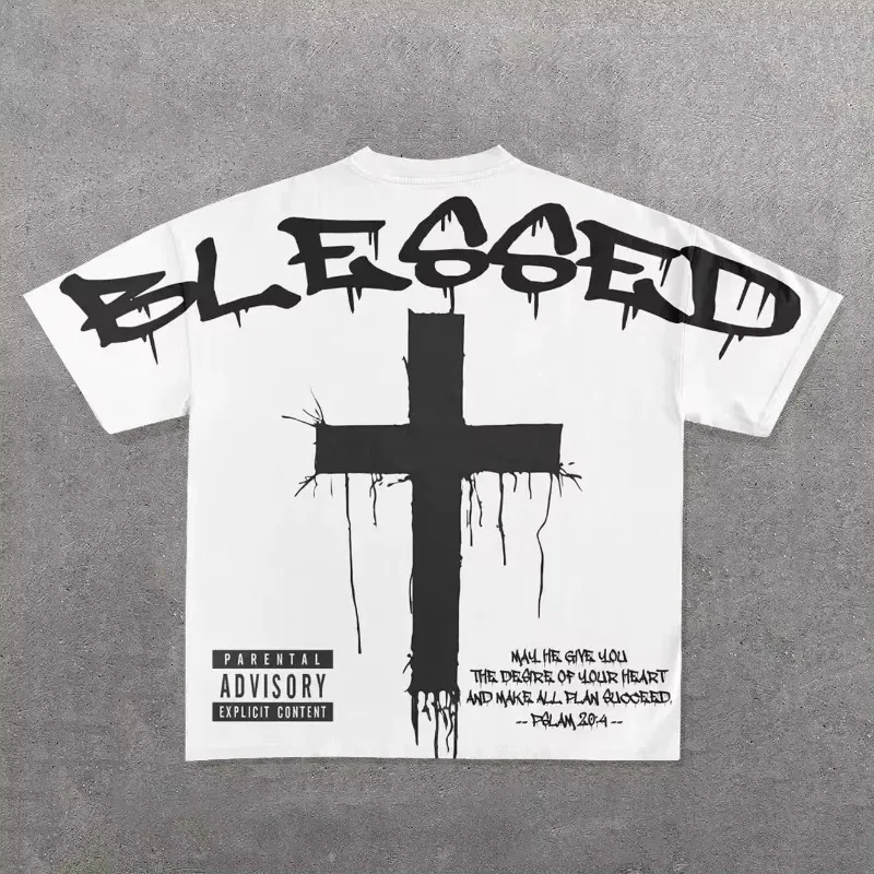 Men's summer loose fitting oversized Paris print casual slim fit round neck short sleeved T-shirt top