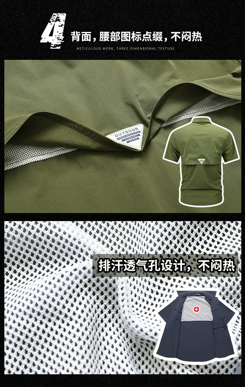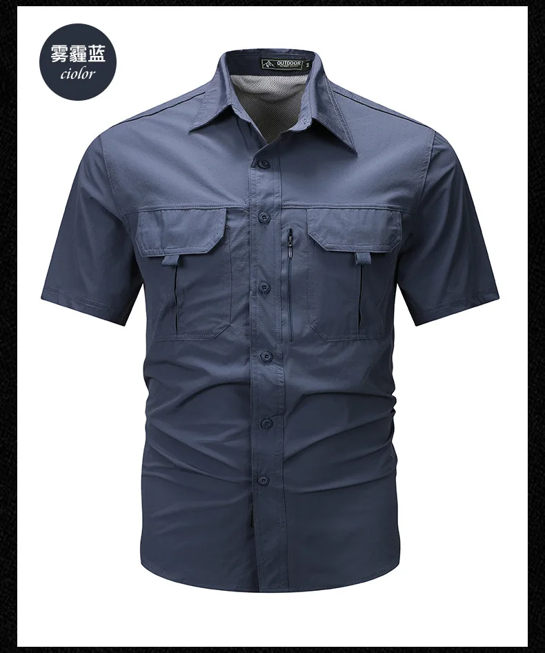 2024 Summer New Cargo Shirt Short Sleeve Men’s Cargo T-shirt Outdoor Navy Multi-pocket Breathable Camping Hiking Work Shirts