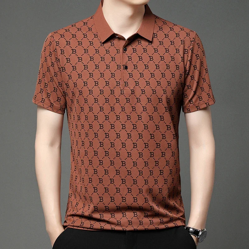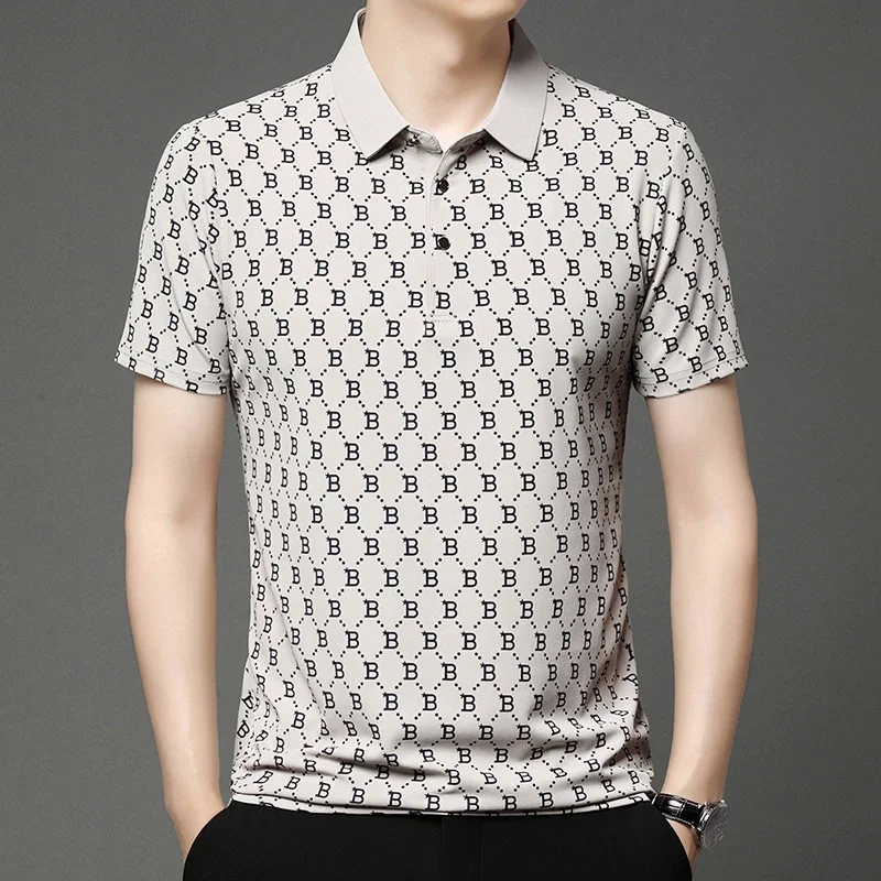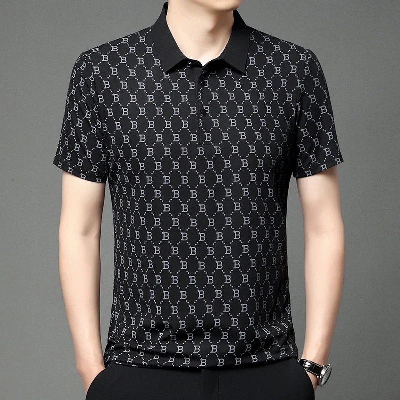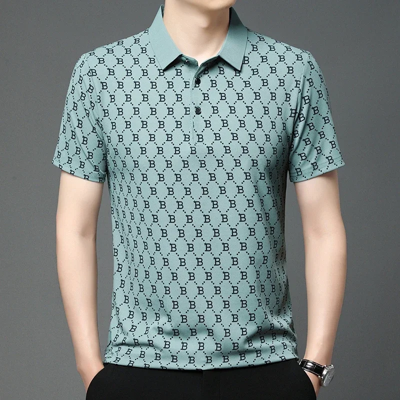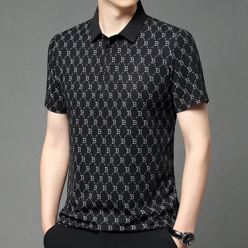 2024 Summer New Men’s Business Print Short Sleeved POLO Shirt Comfortable and Cool Casual Fashion T-shirt