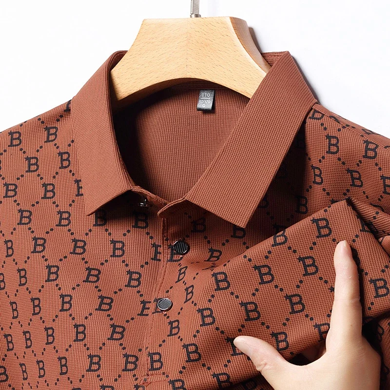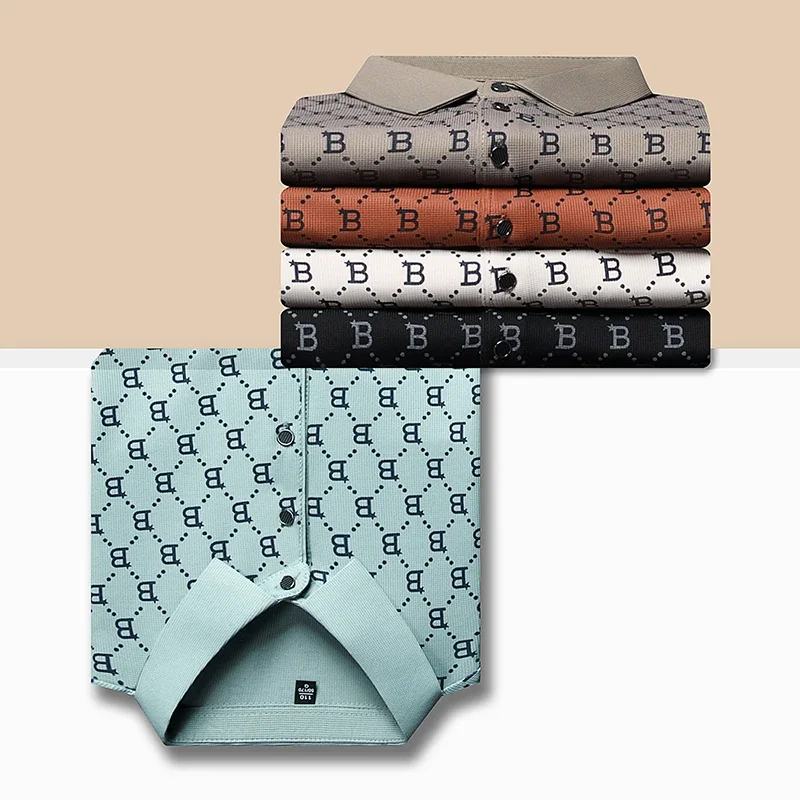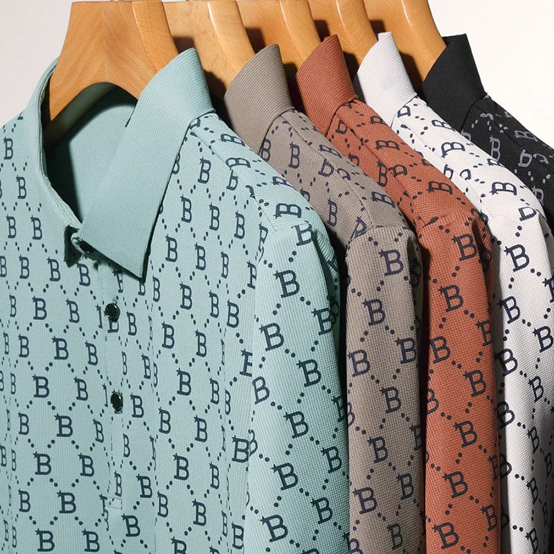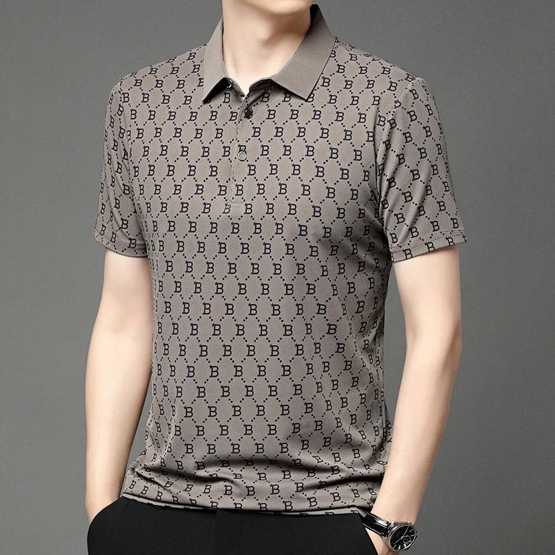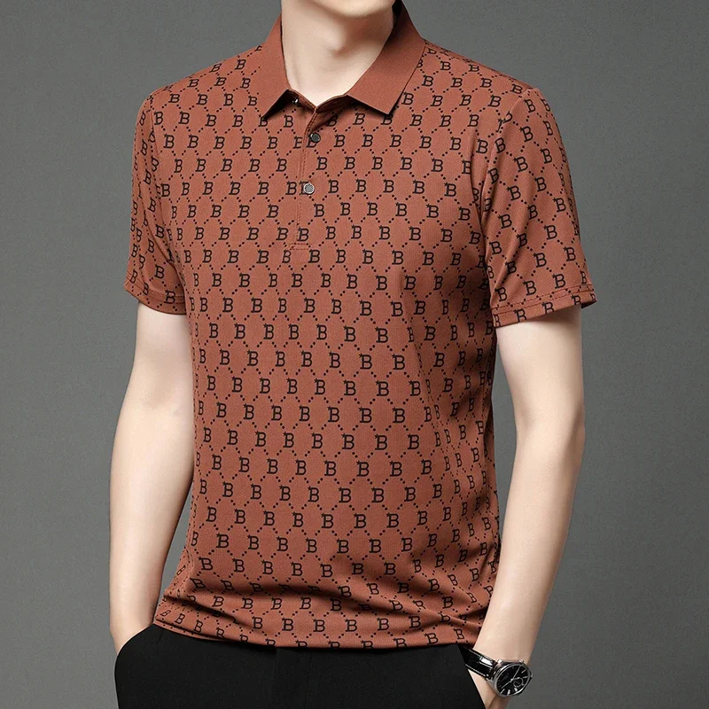 2024 Summer New Men’s Business Print Short Sleeved POLO Shirt Comfortable and Cool Casual Fashion T-shirt