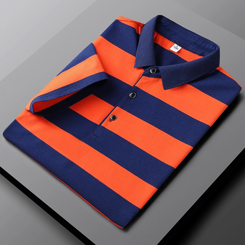 2024 Summer New Style Men’s Fashion Casual Work Slim Fit Cotton Polo Shirt Men’s Thin Casual Striped Polo Shirt Short Large Size