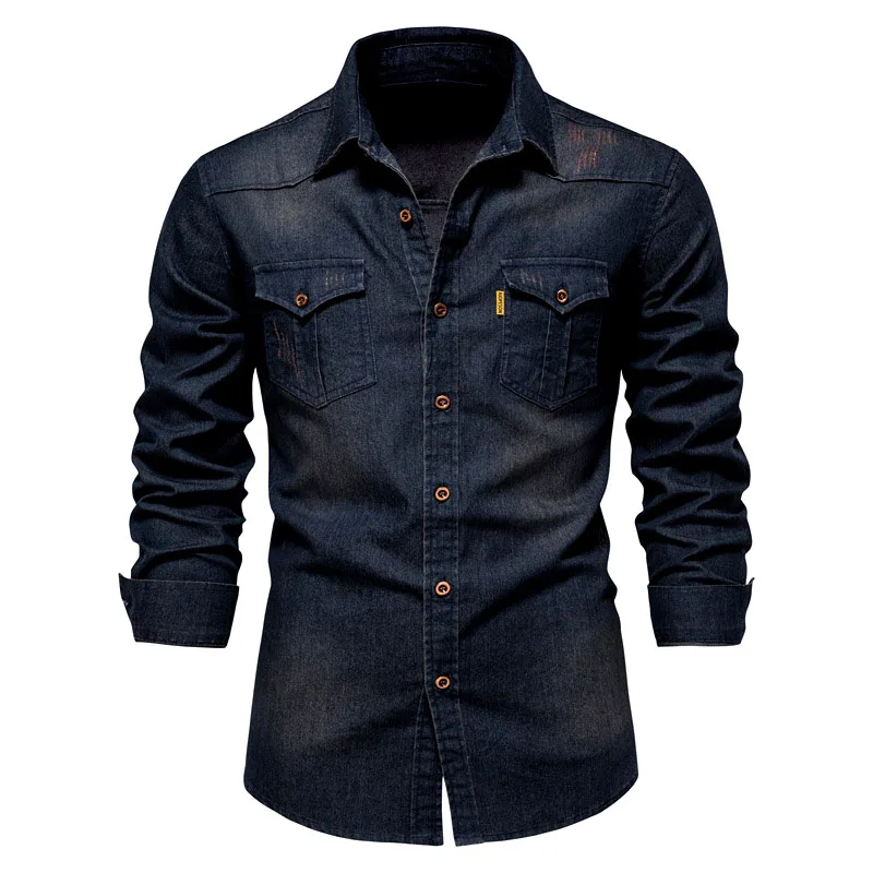 2024 Trend denim top men’s non-ironing shirt Casual solid color cardigan non-ironing men’s long-sleeved shirt