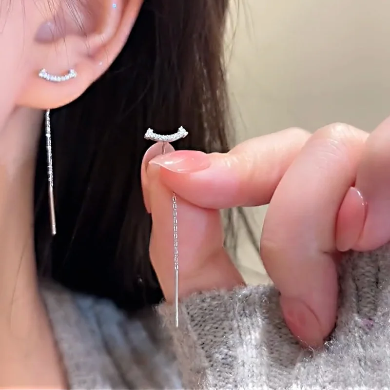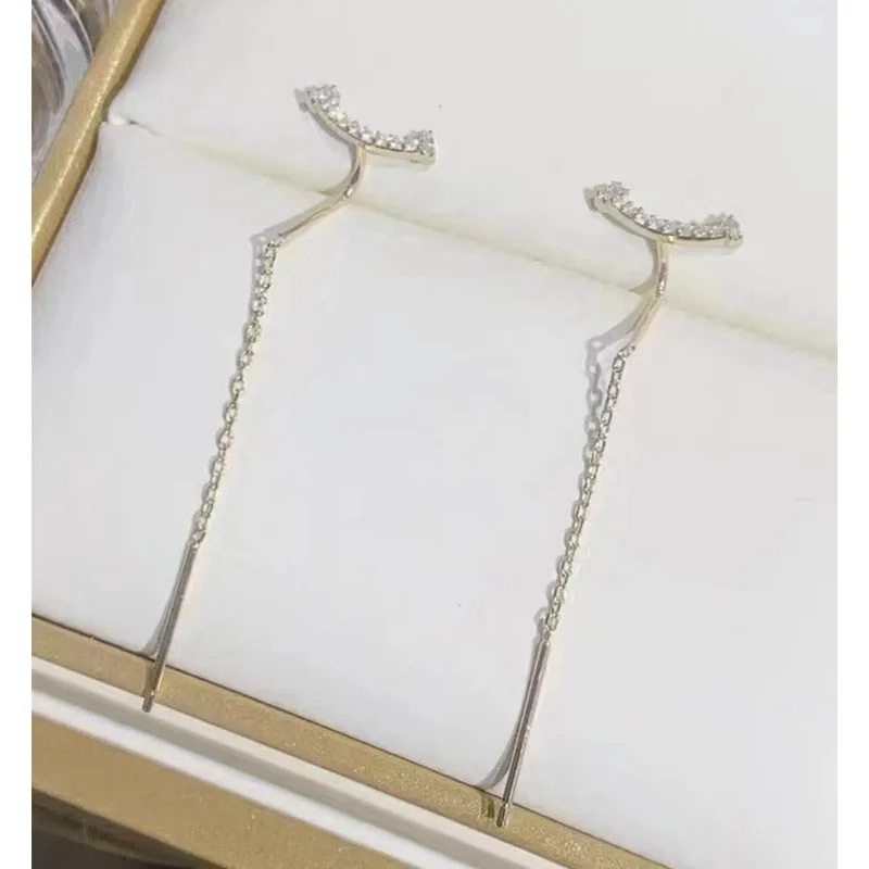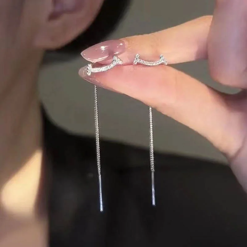 2024 Trendy Long Wire Tassel Thread Chain Climb Star Heart Beads Pendants Drop Earrings Women’s Rhinestone Accessories Jewelry