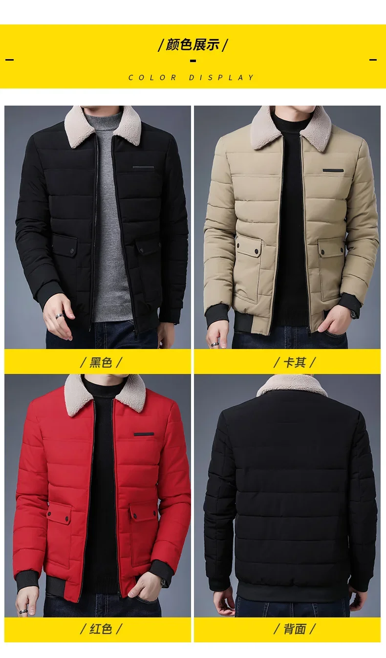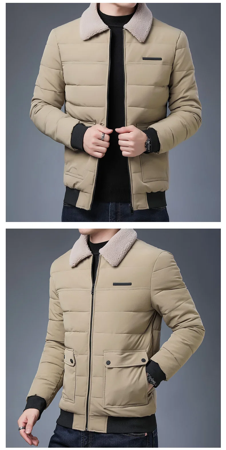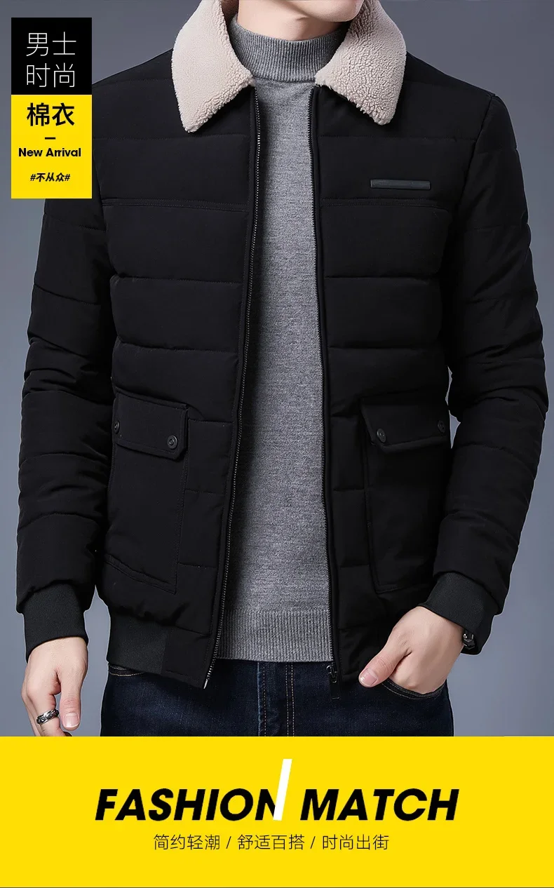 2024 Winter Men’s Jacket Outdoor Windproof Warm Youth Slim Trend Cotton-padded Jacket Business Lapel Thick Coat Men’s Clothing