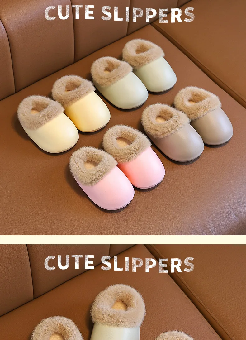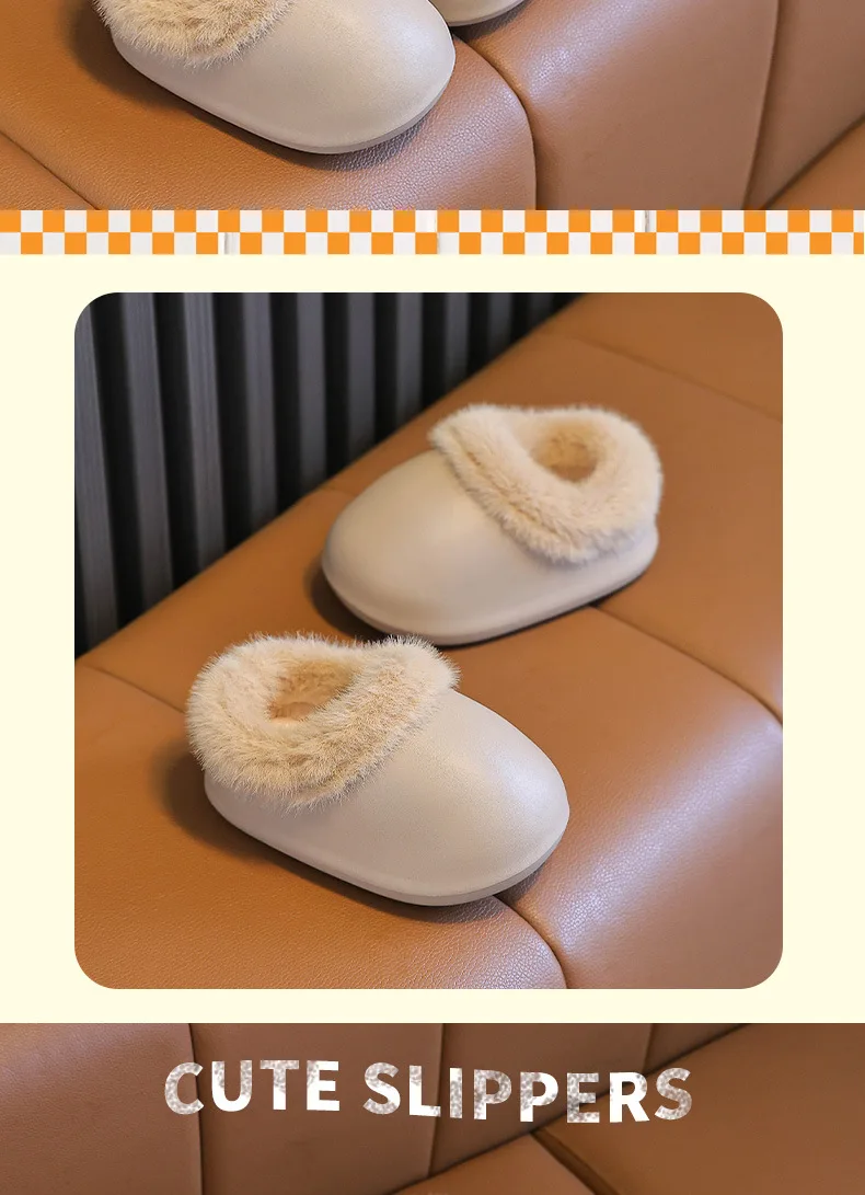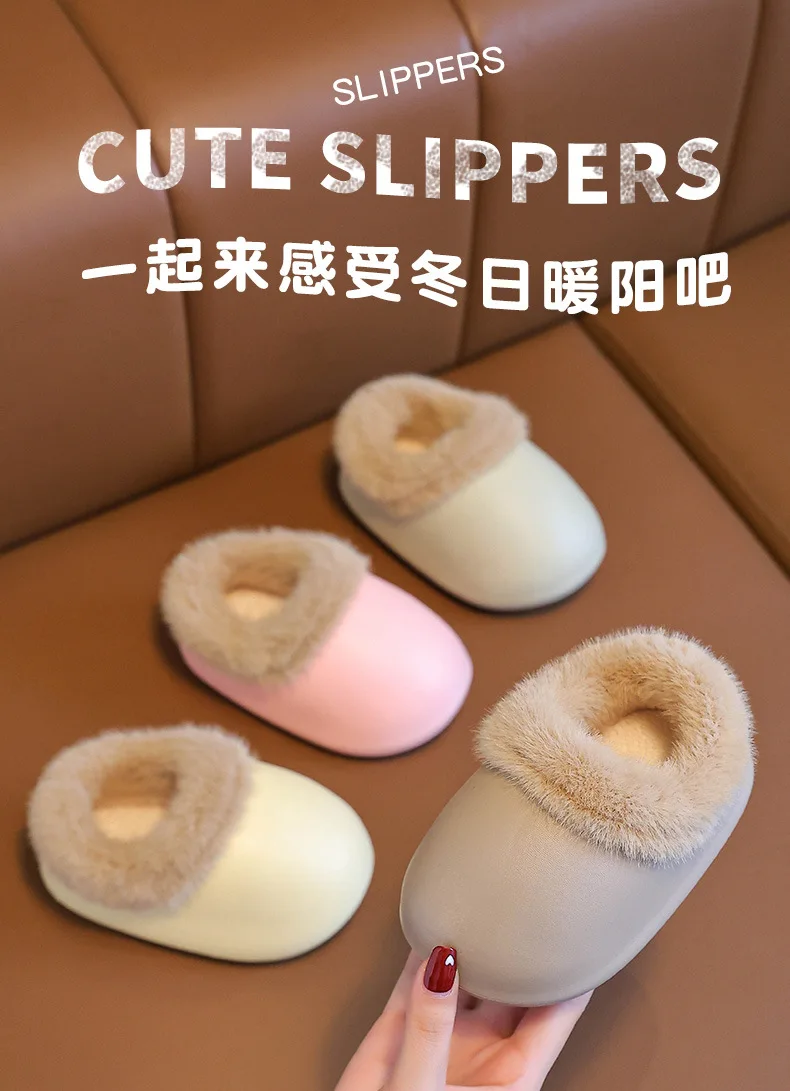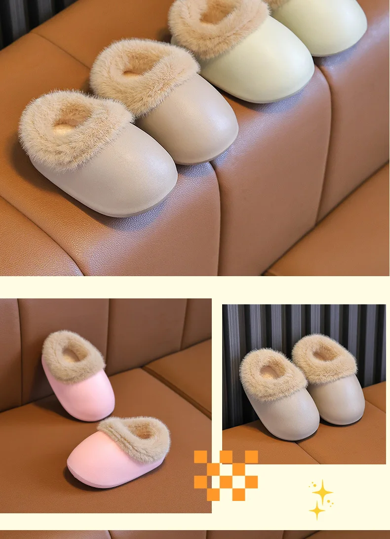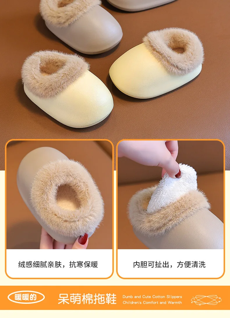 2024 Winter Smooth Bread Plush Slippers Children's Non-slip Soft Indoor Fluffy Shoes For Boys Girls Warm Kids Home Cotton Shoes