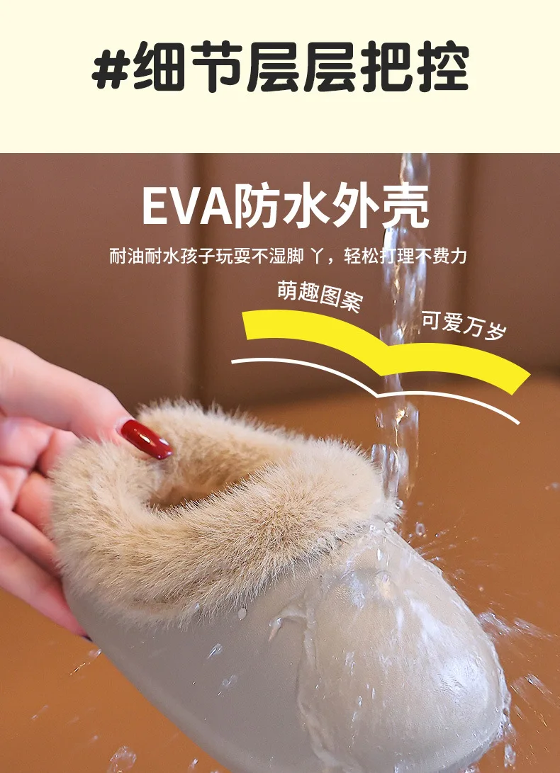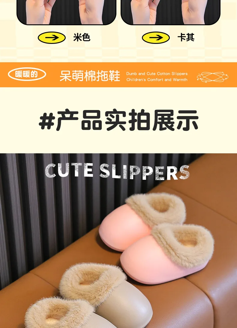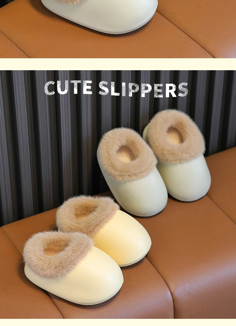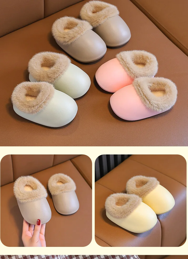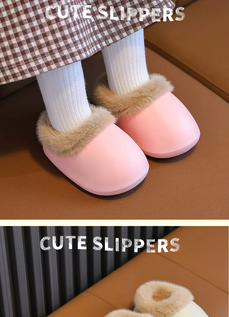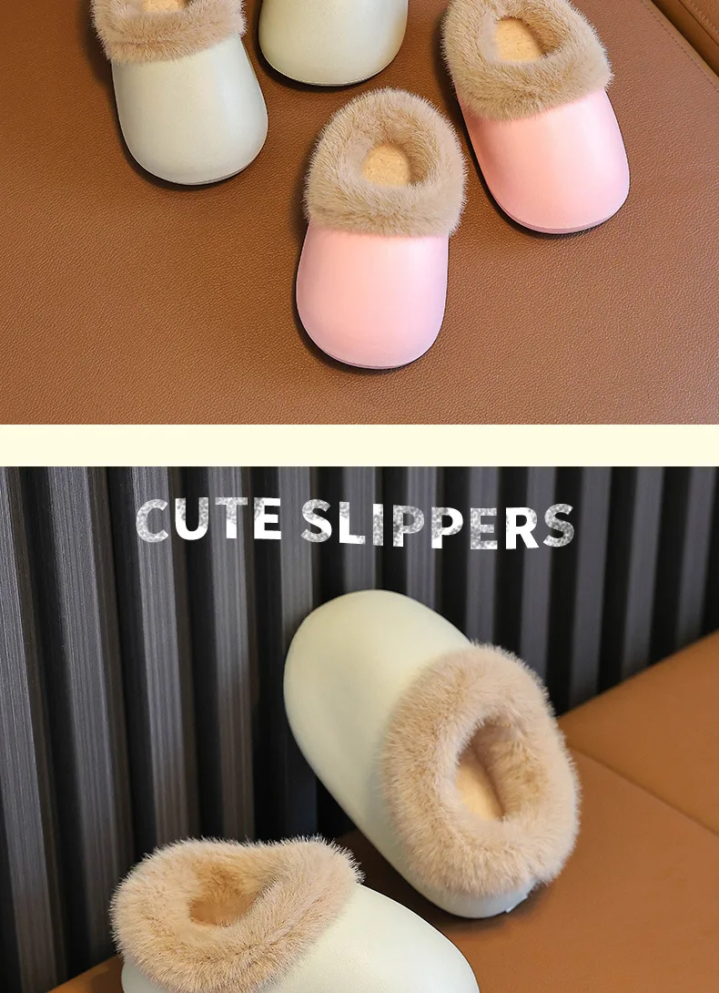 2024 Winter Smooth Bread Plush Slippers Children's Non-slip Soft Indoor Fluffy Shoes For Boys Girls Warm Kids Home Cotton Shoes